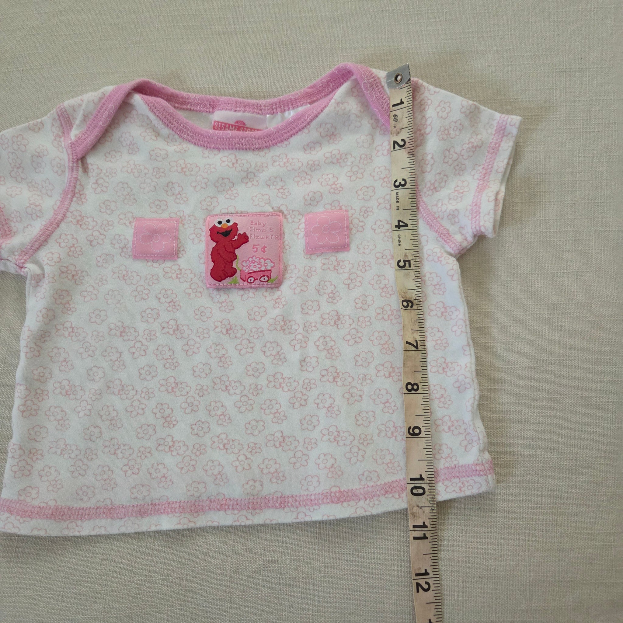 Vintage y2k Sesame Street white and pink floral shirt with Baby Elmo selling flowers on chest! Please see all photos for condition and measurements