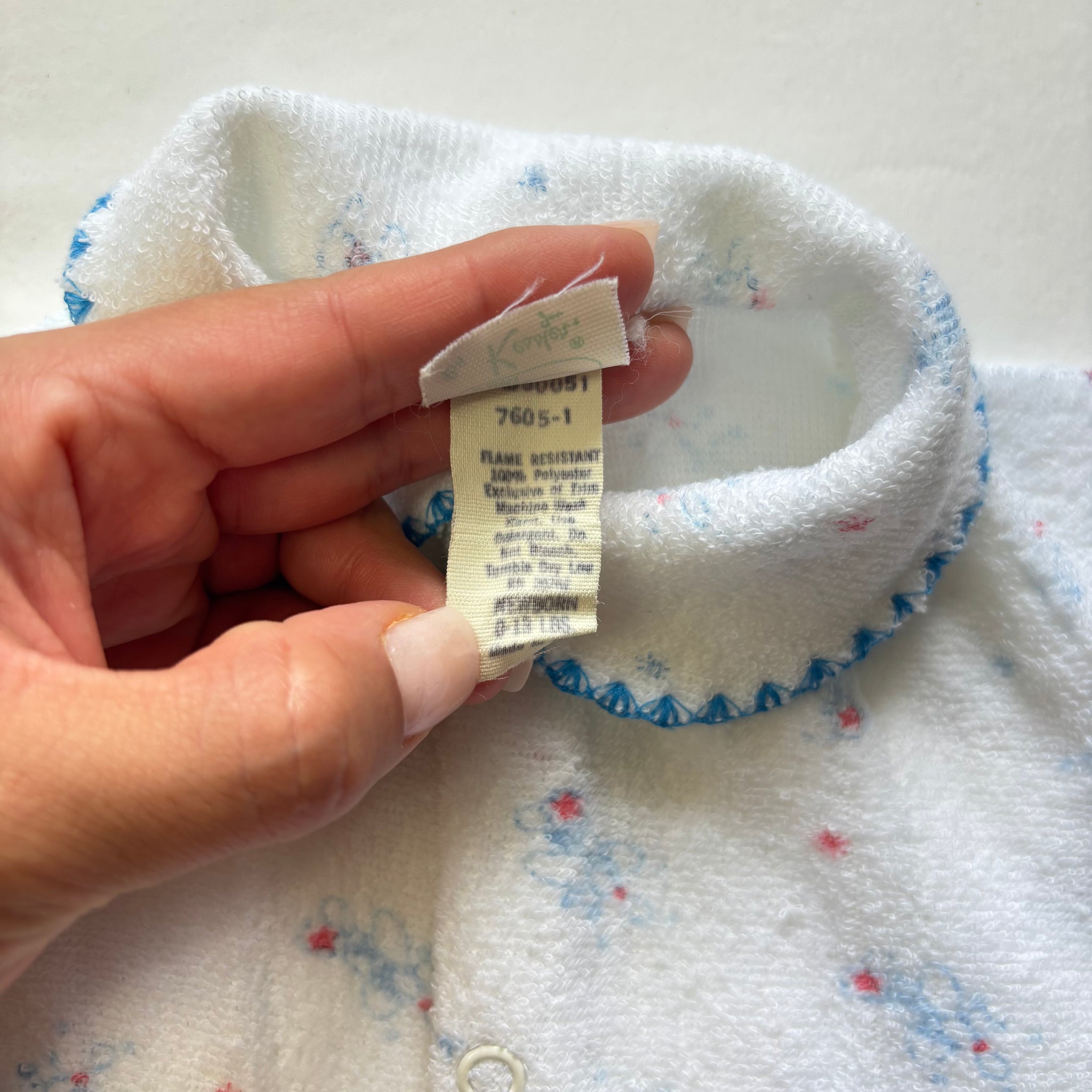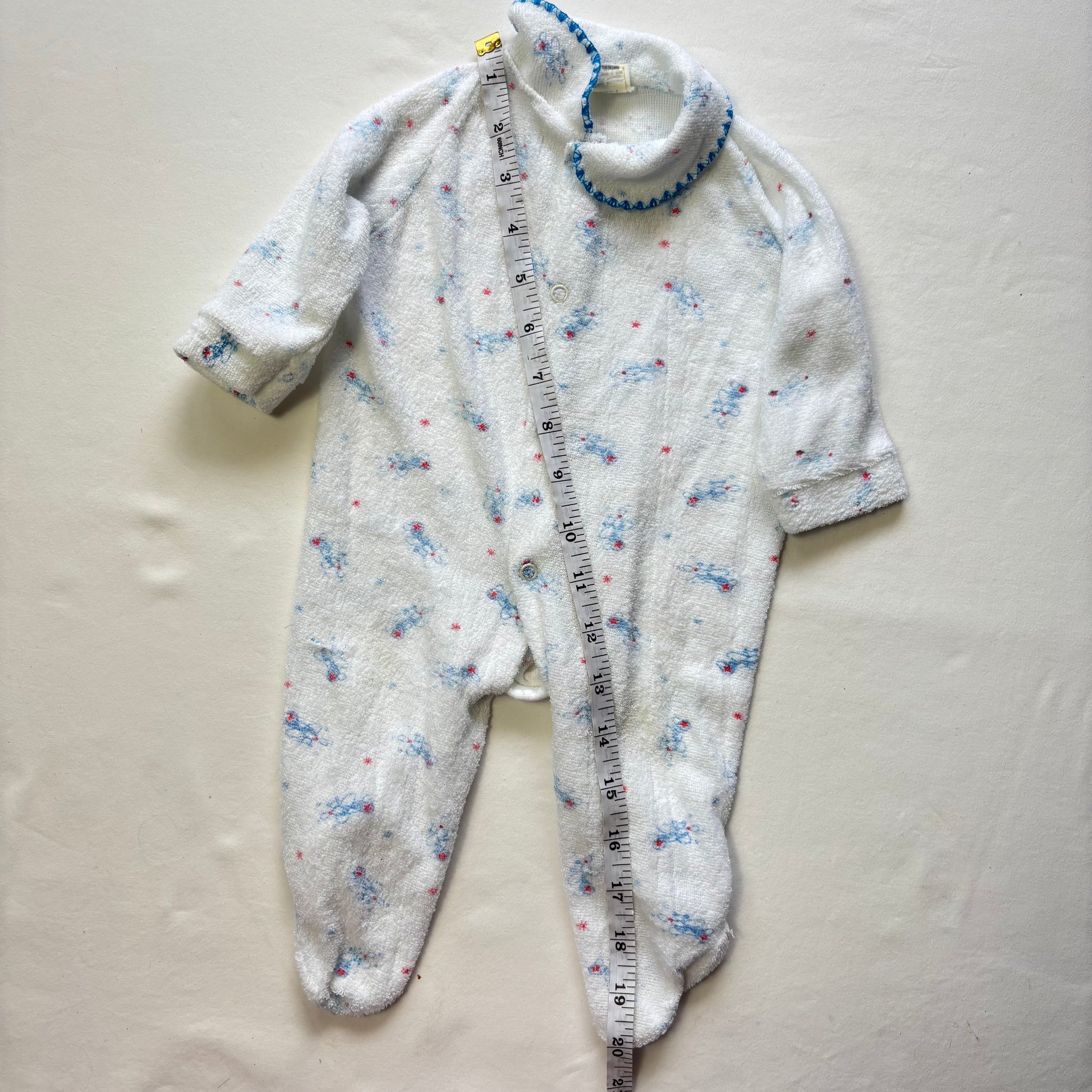 Vintage white and blue airplane pattern terrycloth footed pajamas! Please see all photos for condition and measurements