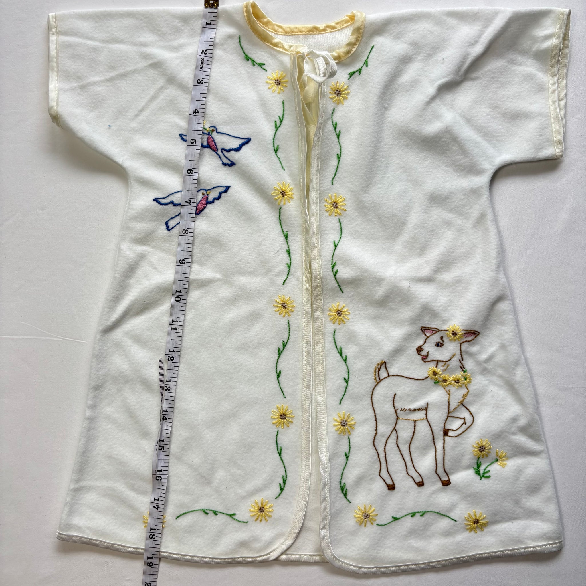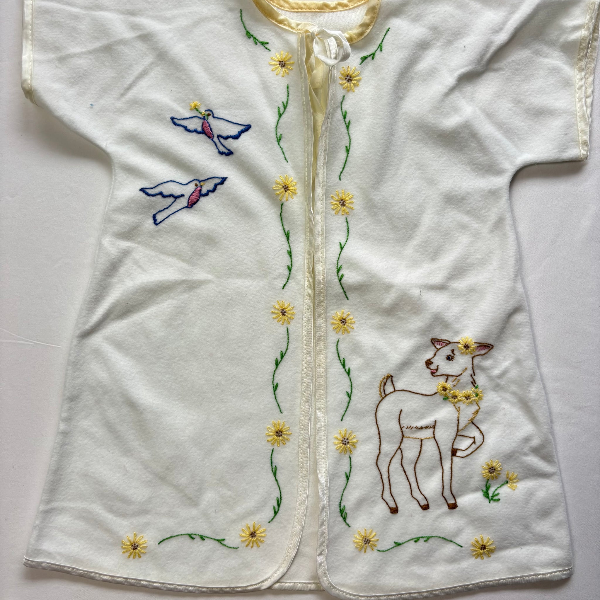 Vintage white open gown with deer, butterfly, and flower embroidery details! Please see all photos for condition and measurements