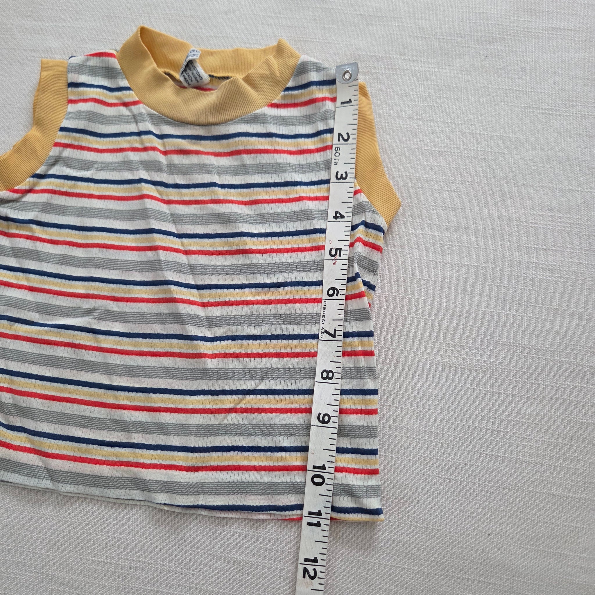 Vintsge K-Mart brand yellow and multicolored striped tank top shirt! Please see all photos for condition and measurements