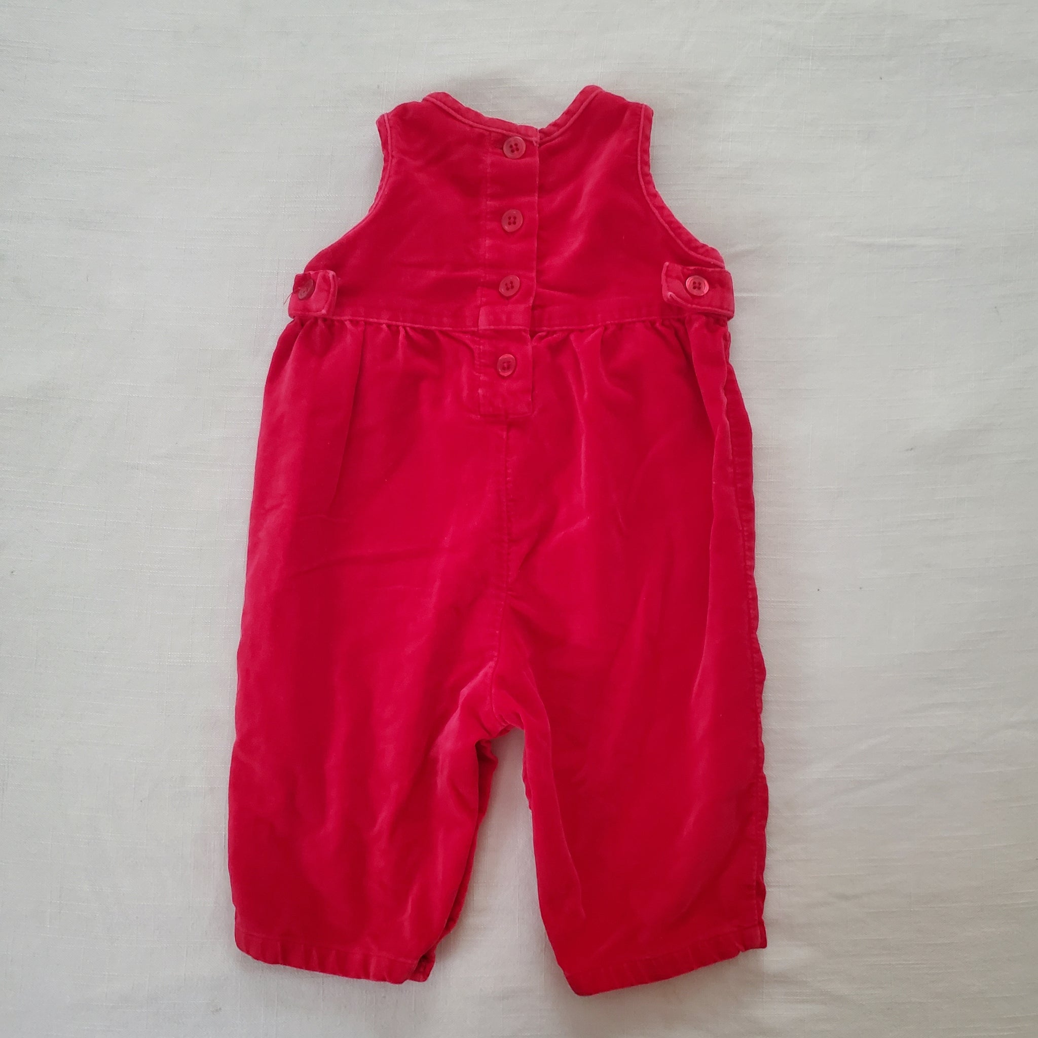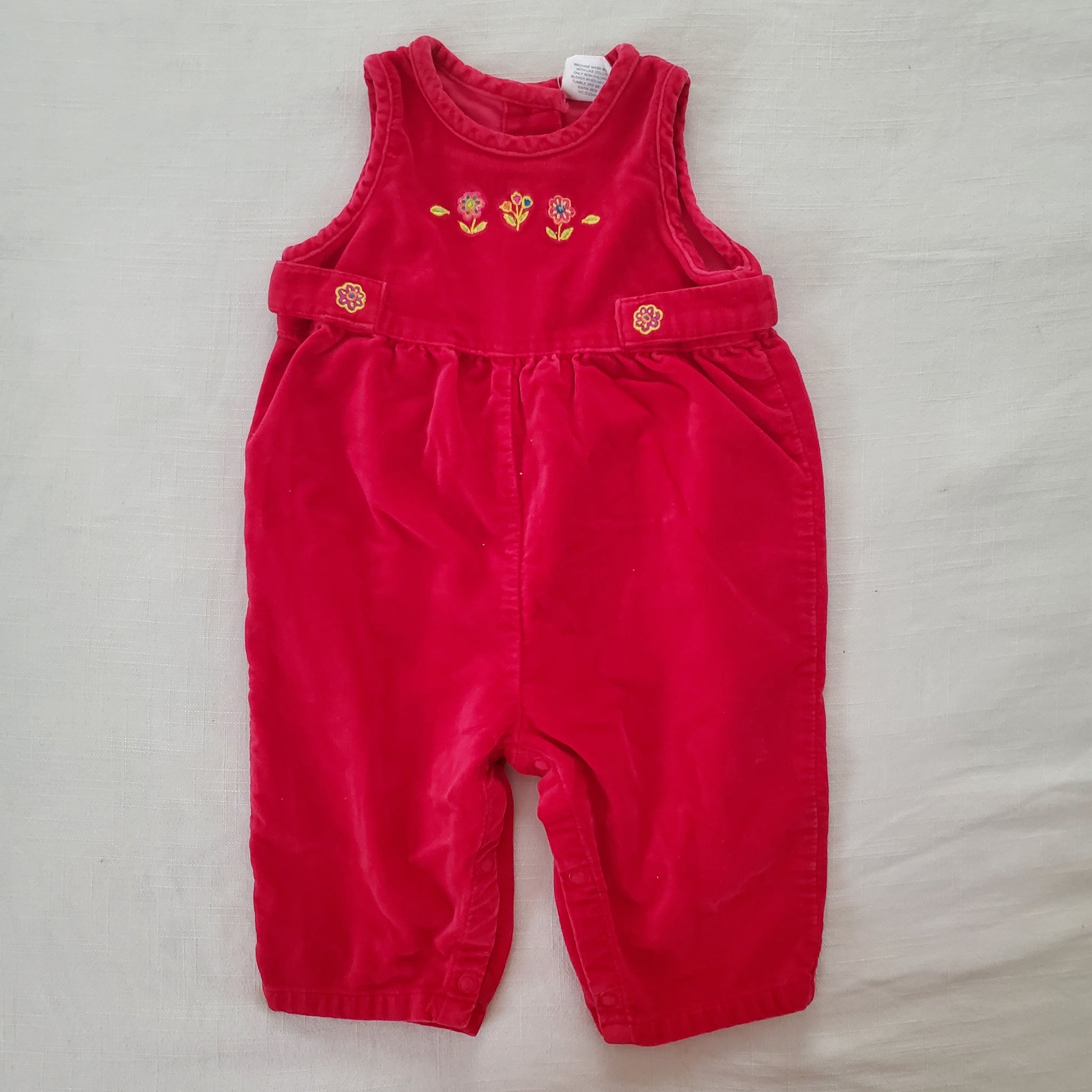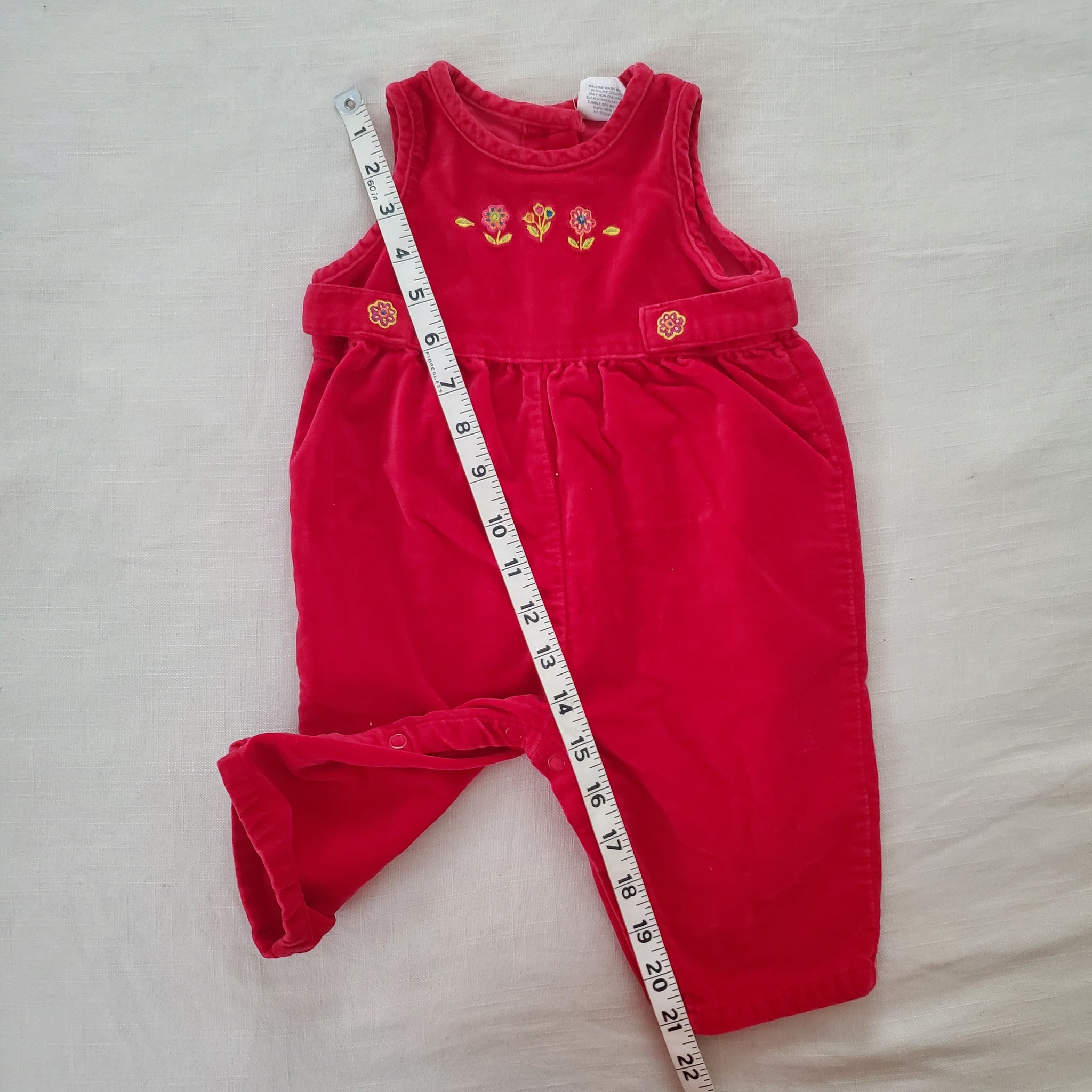 Vintage Old Navy red velvety romper with flower embroidery on chest! Please see all photos for condition and measurements