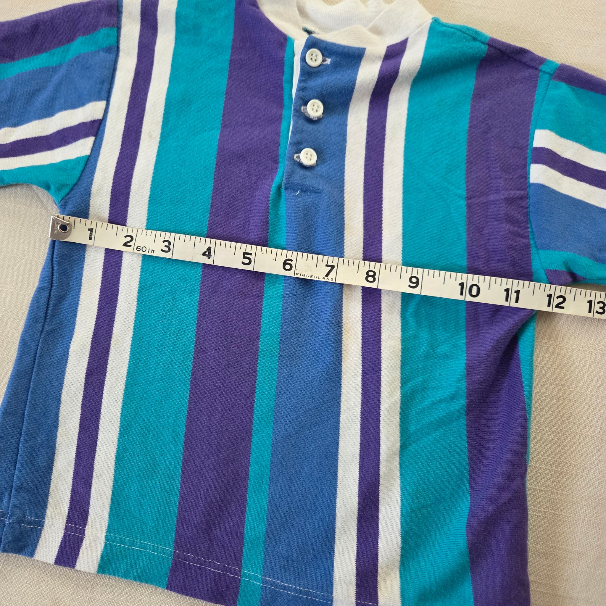 Vintage Jack Tar brand blue, purple, and white striped shirt! Note one very small light spot on side of chest shown. Please see all photos for condition and measurements