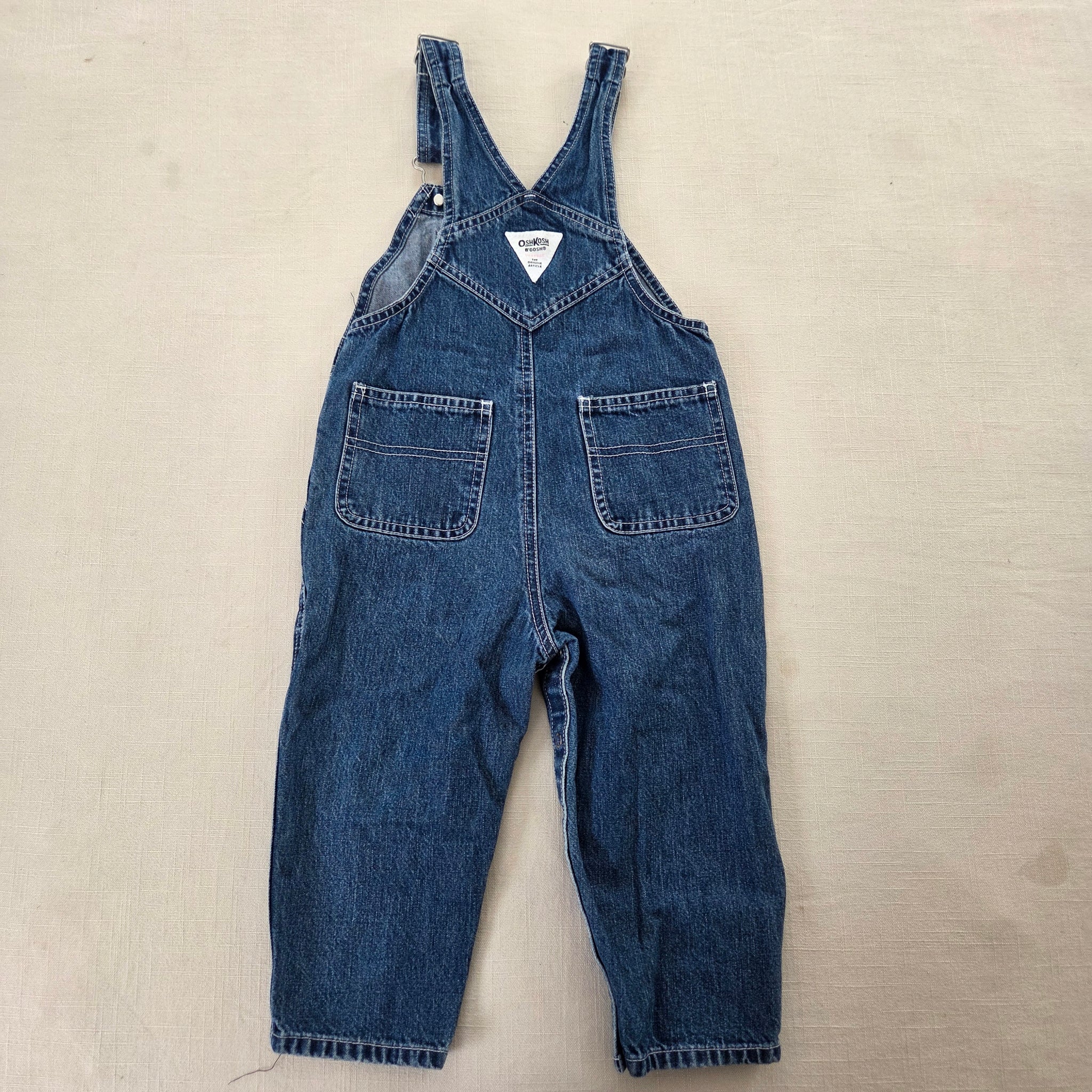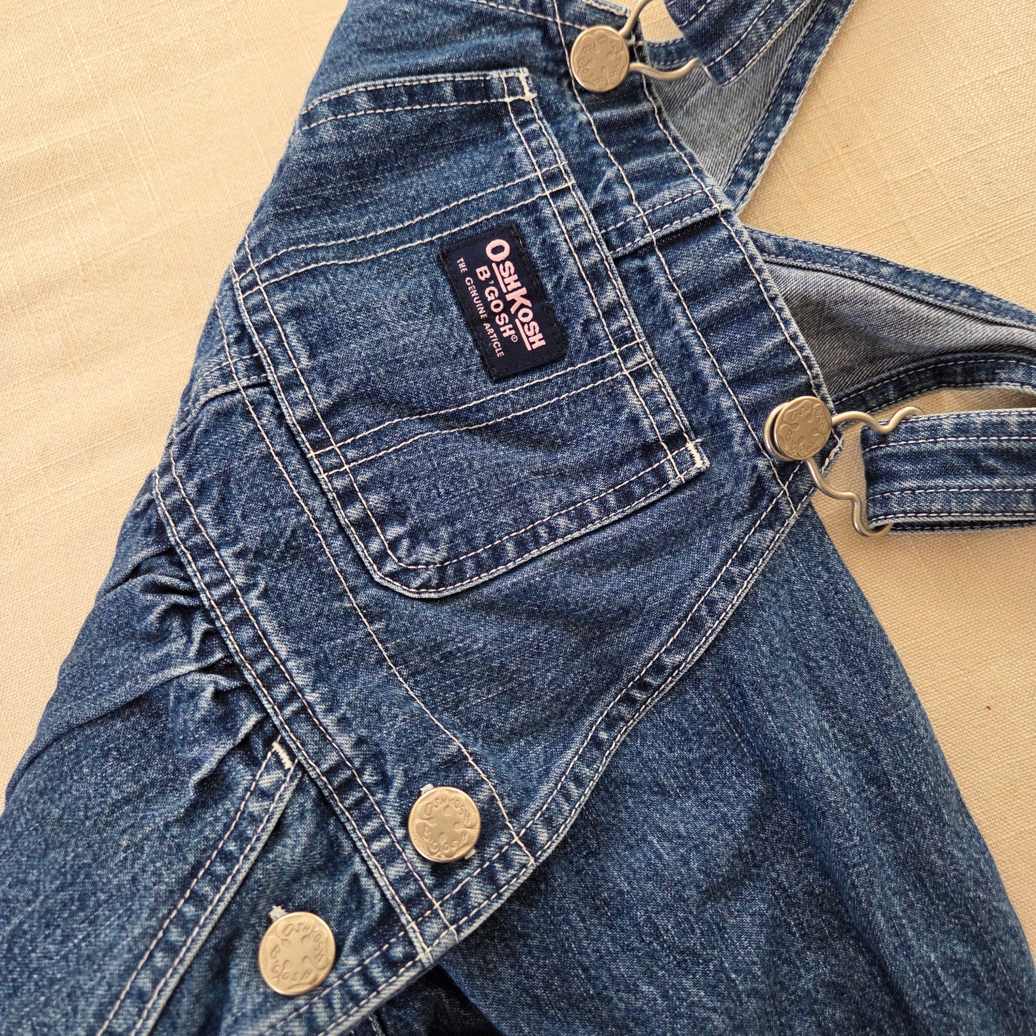 Vintage Oshkosh denim overalls with pink lettered patch on chest! Please see all photos for condition and measurements