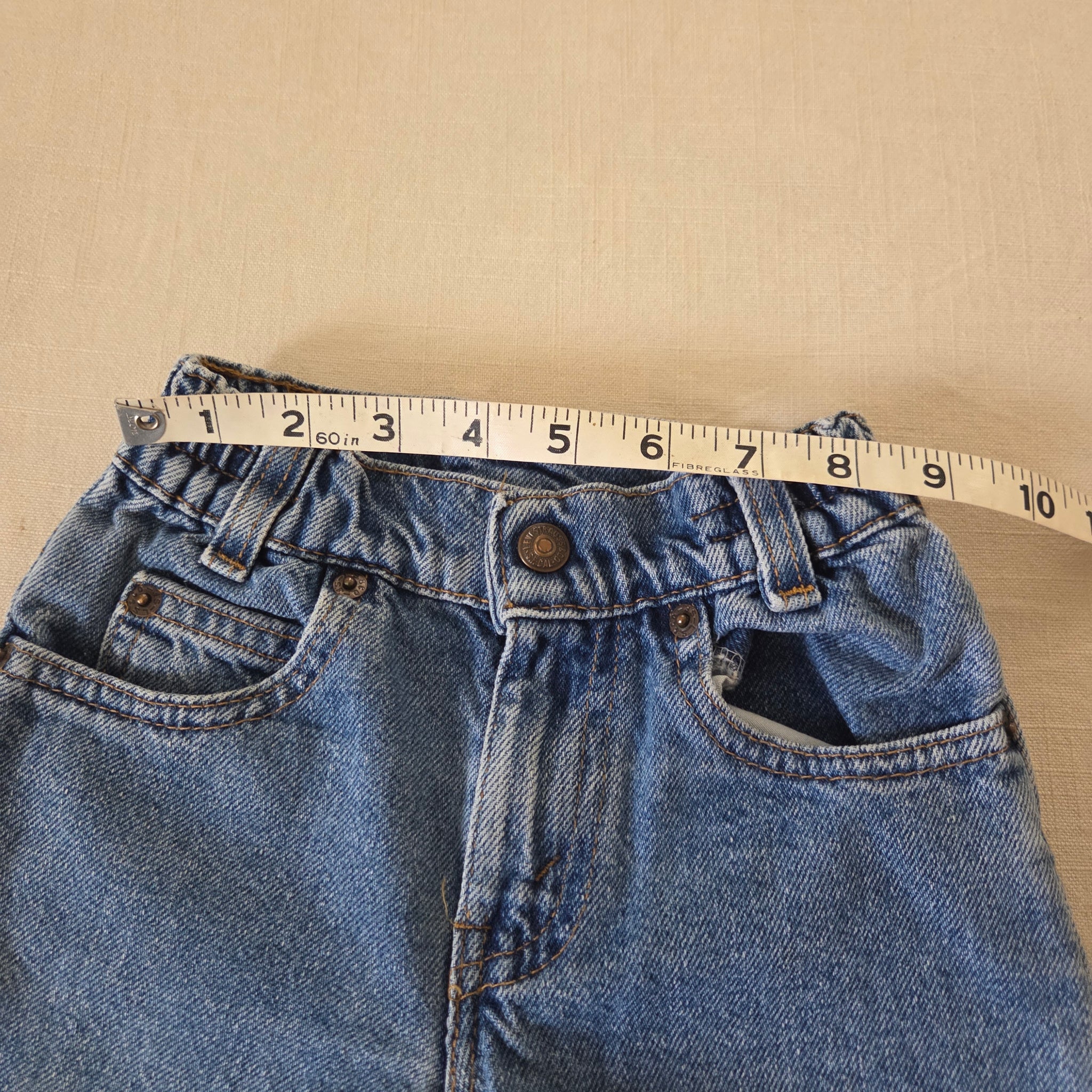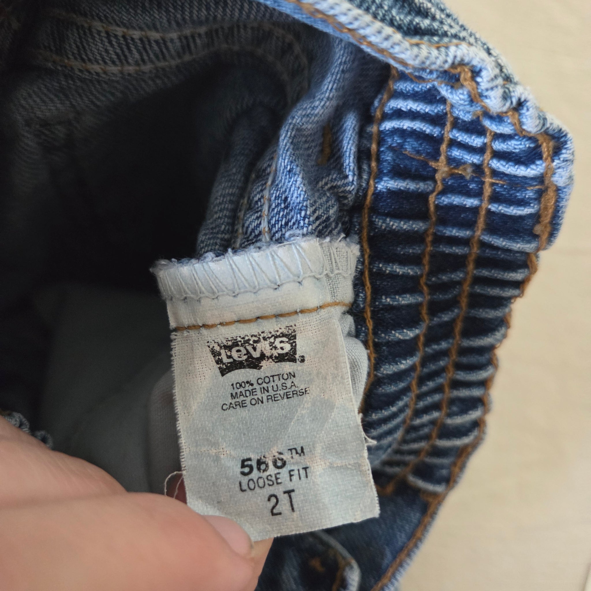 Vintage Levi's 566 fit jeans featuring cinched elastic waist, orange tab, and leather patch! Please see all photos for condition and measurements