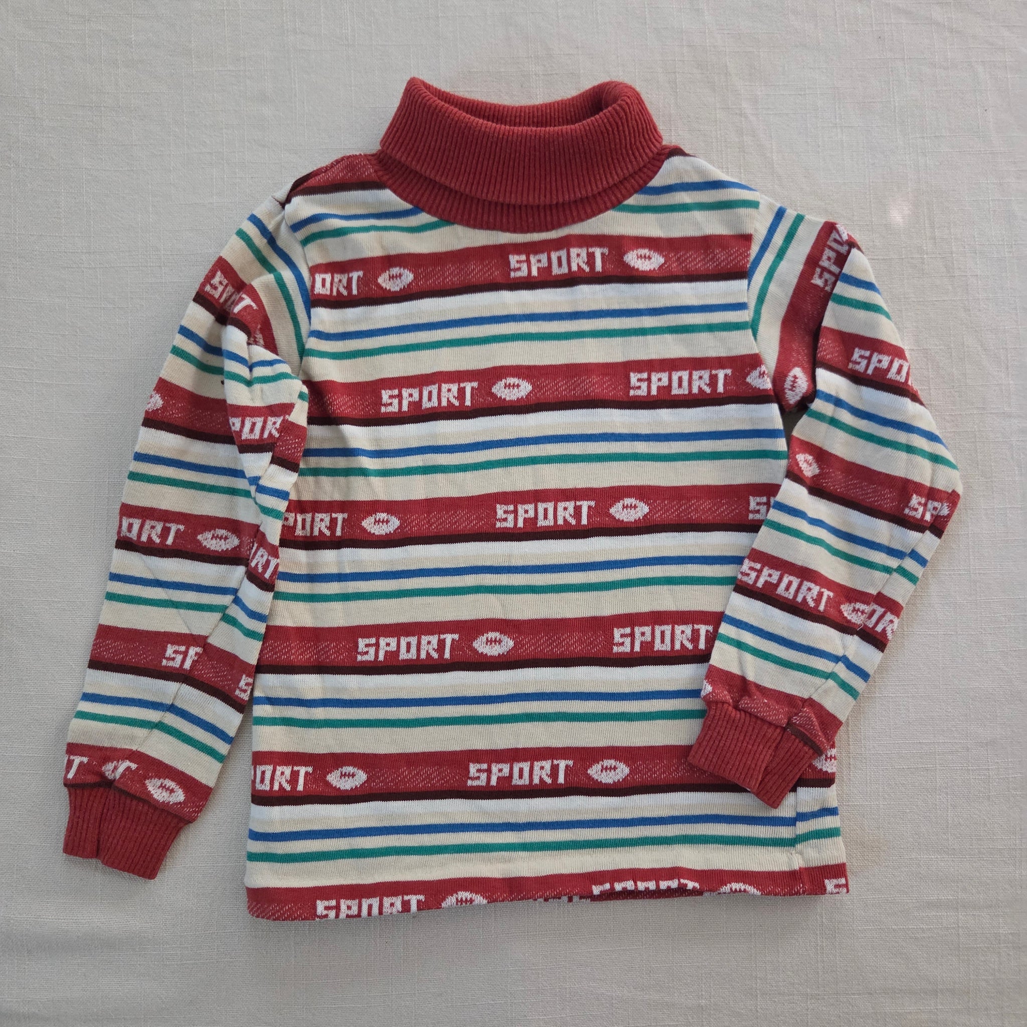 Vintage Carter's brand 70s or 80s era striped turtleneck long sleeve shirt with "sport" spellout and little footballs! Please see all photos for condition and measurements
