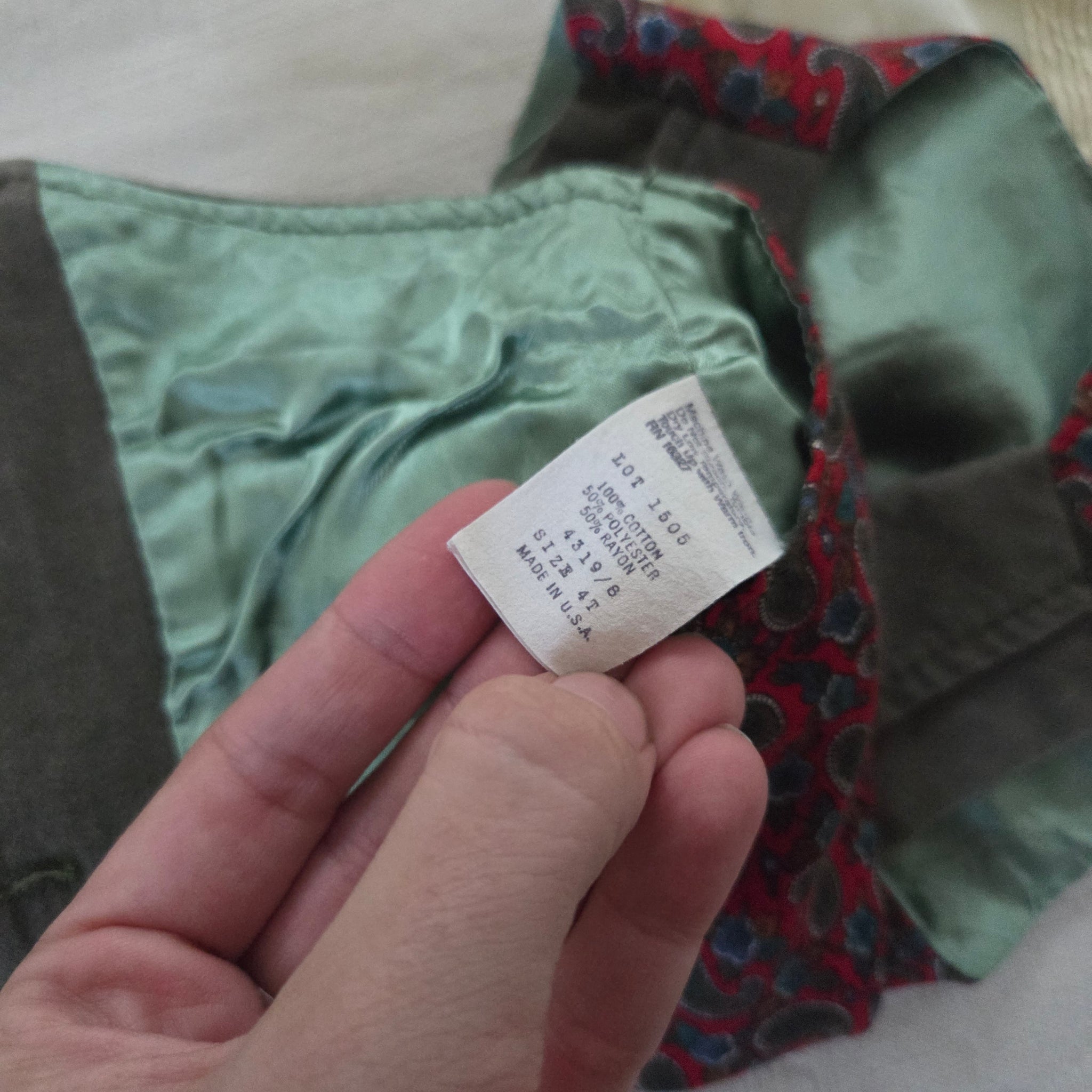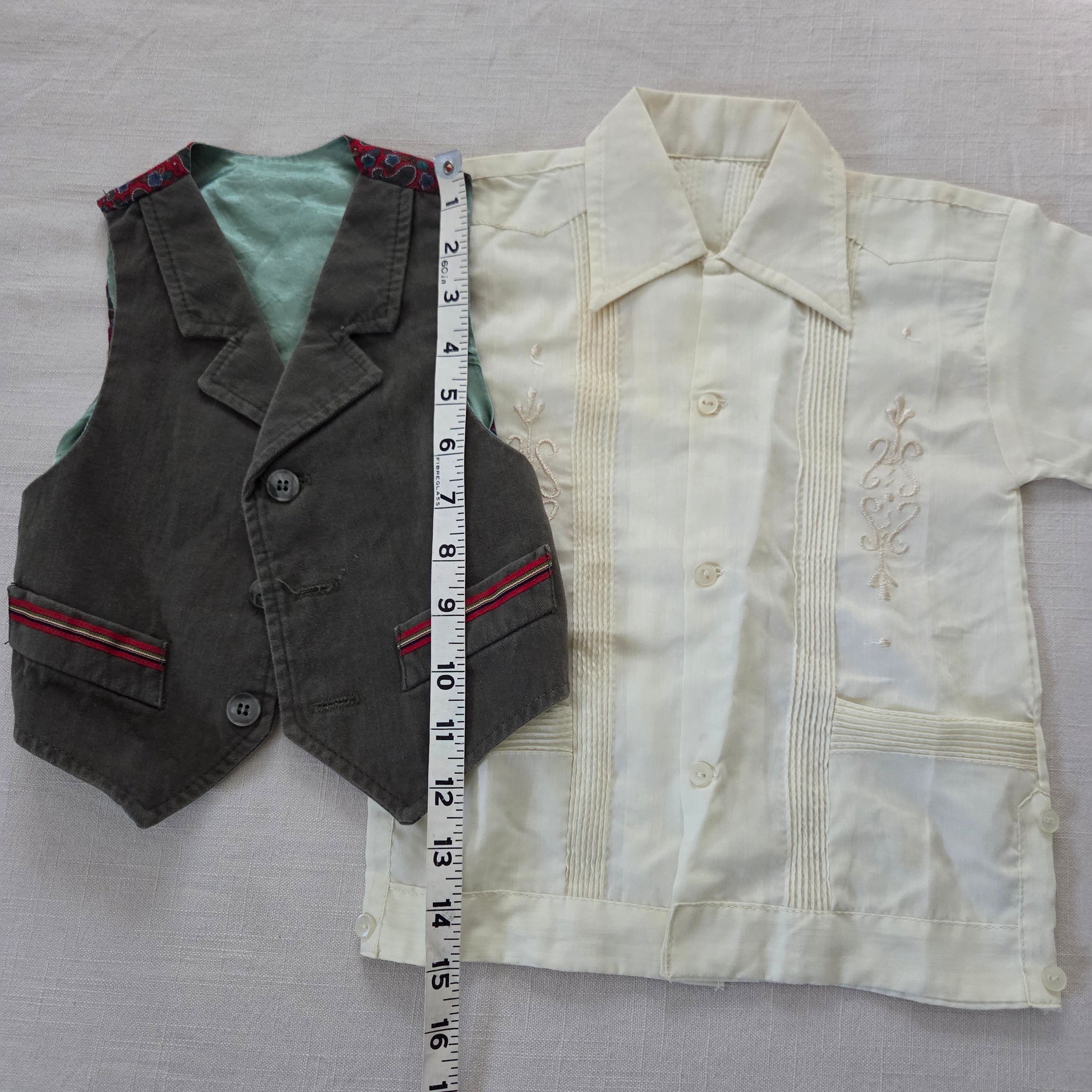 Vintage bundle of cream embroidery beachy style shirt and army green velour vest! Please see all photos for condition and measurements