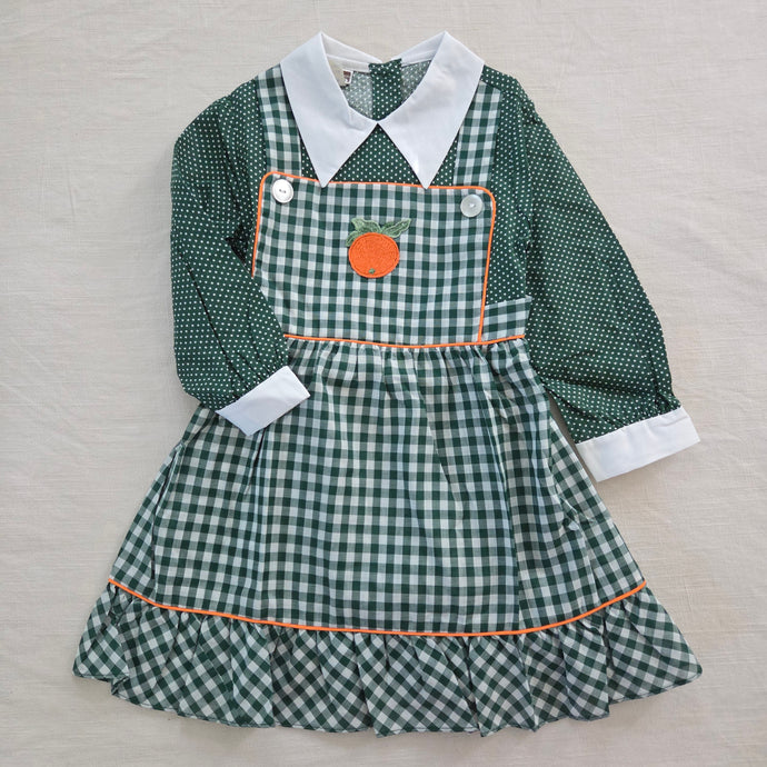 Vintage 70s Orange Green Gingham Dress 4t