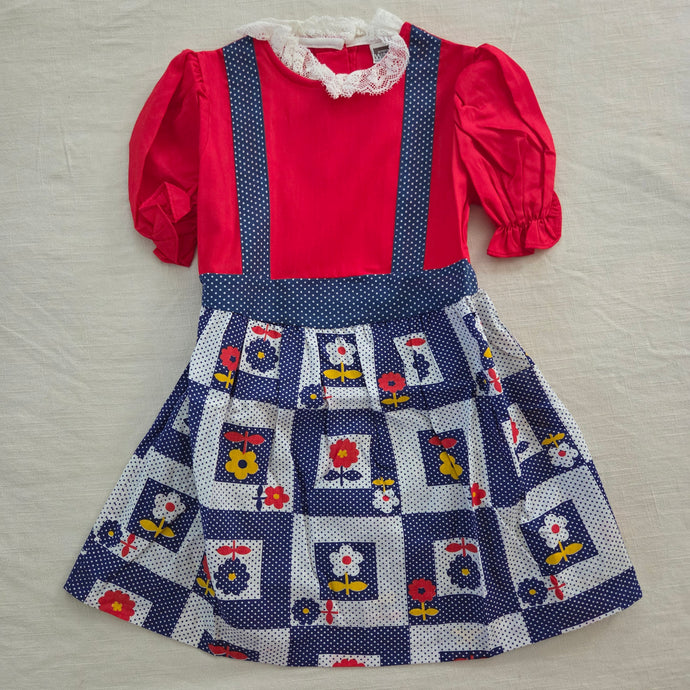 Vintage 70s Flower Red/Blue Dress 4t