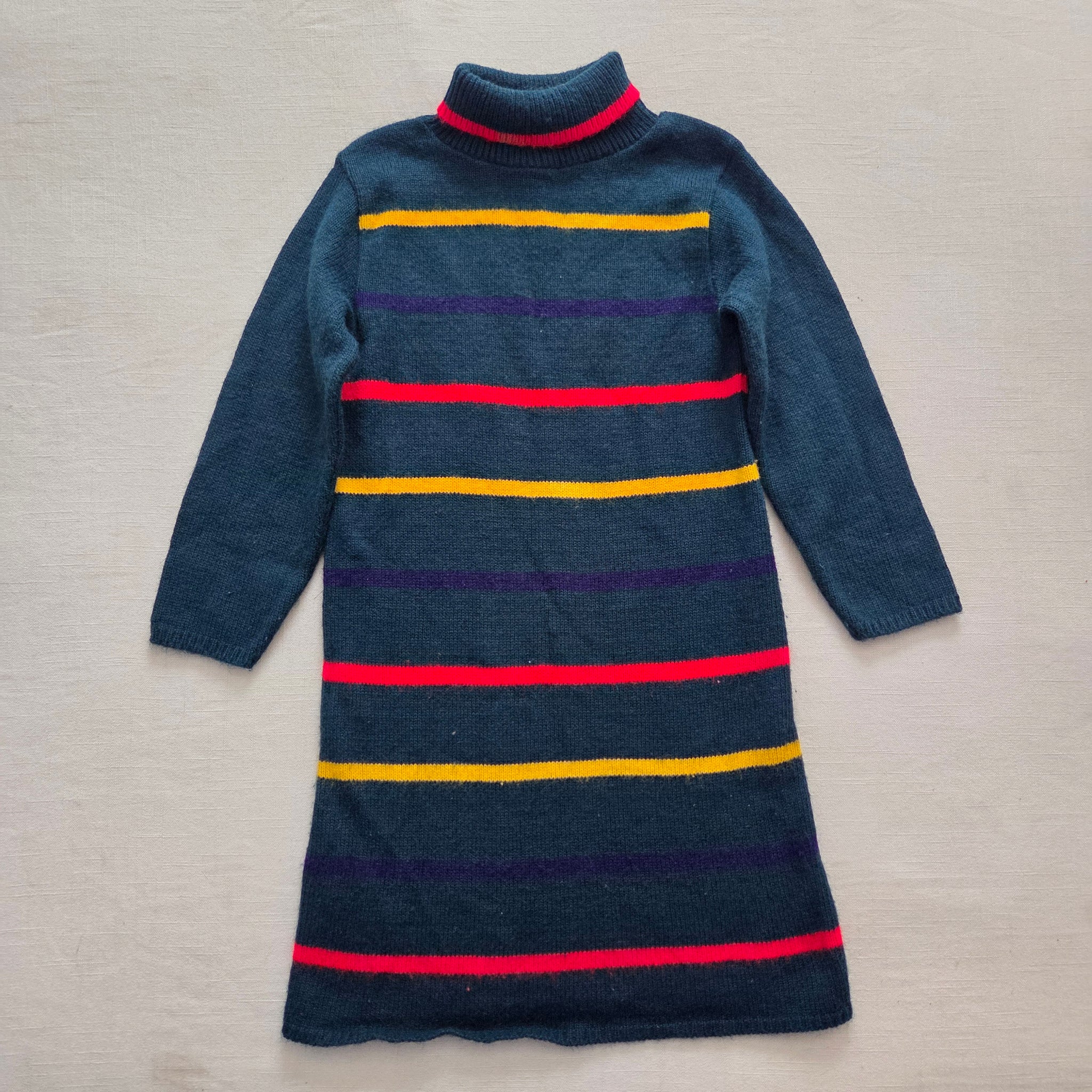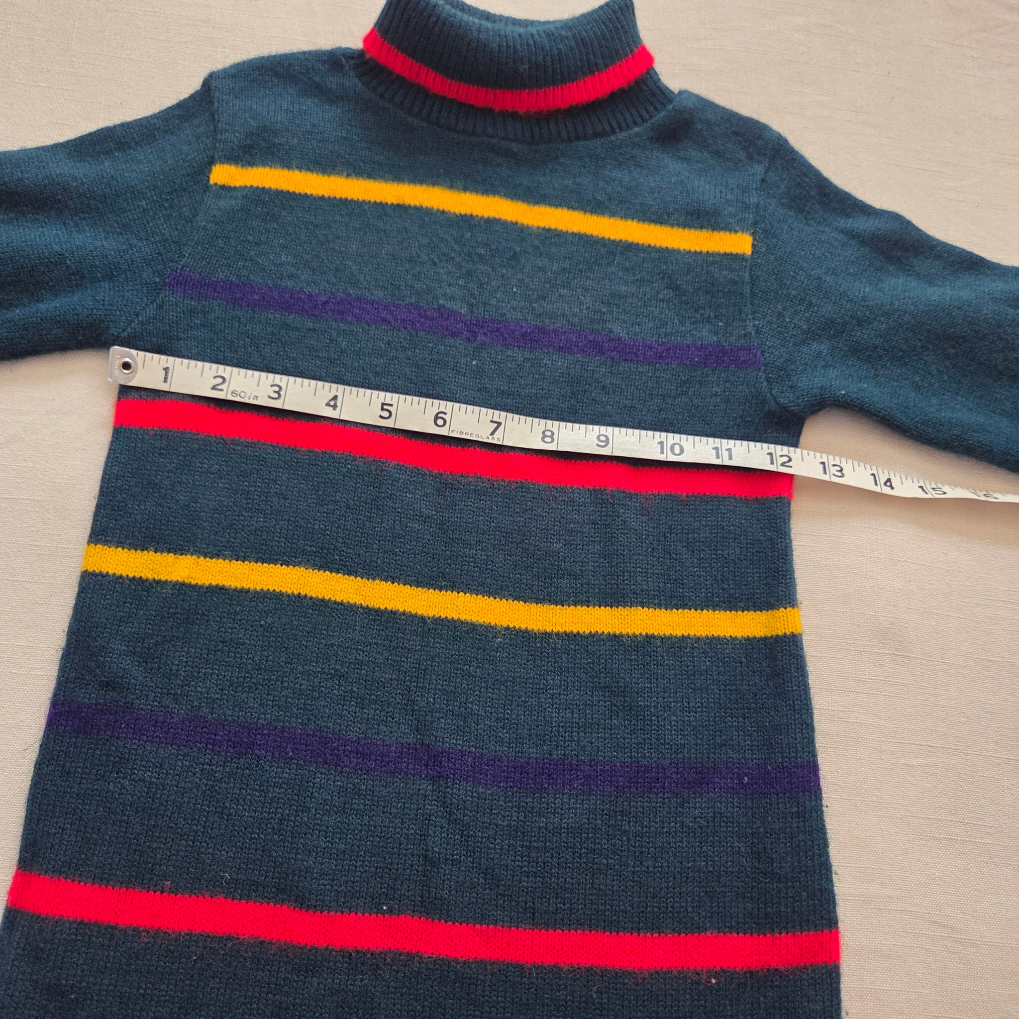 Vintage dark green and primary colored turtleneck long sleeve knit dress! Please see all photos for condition and measurements
