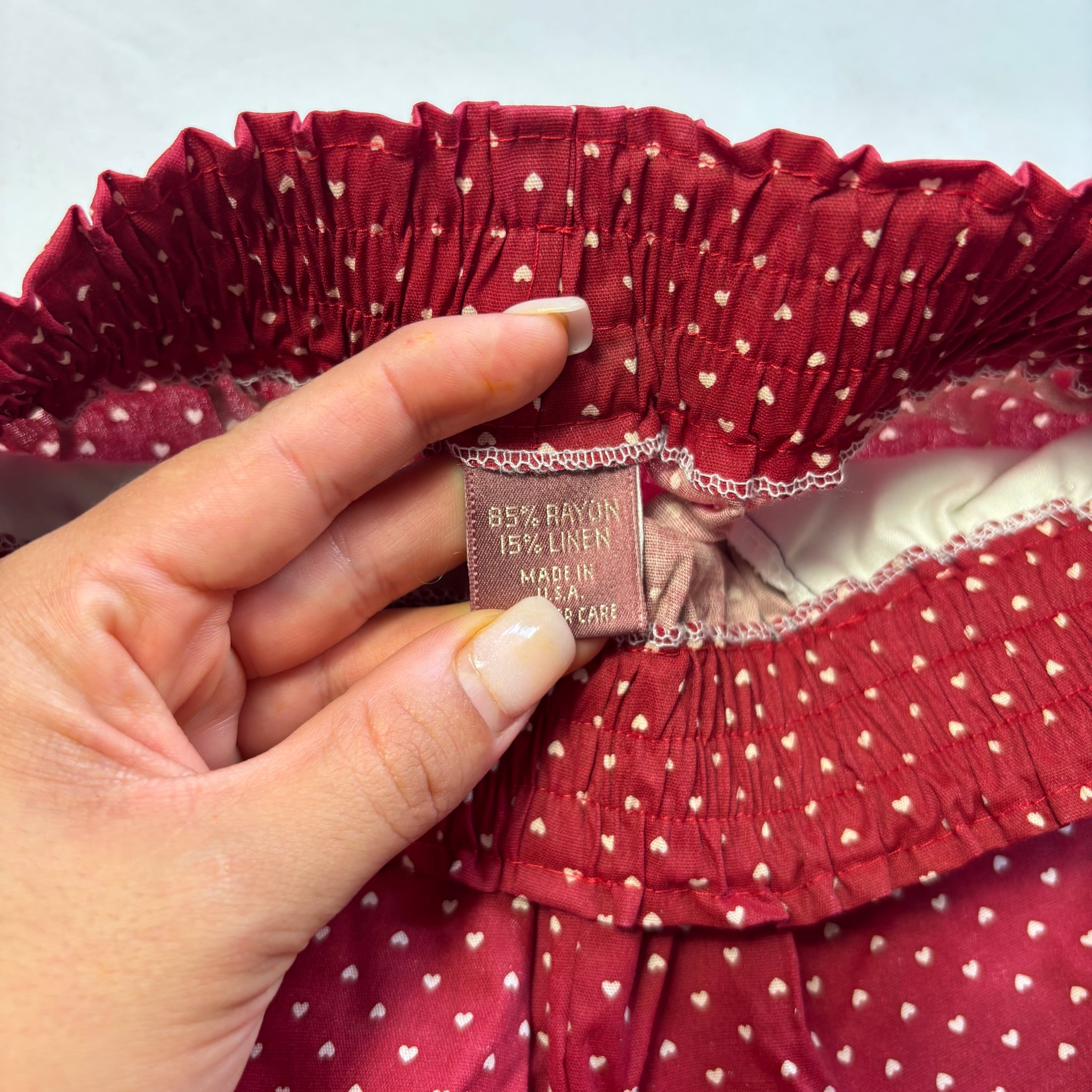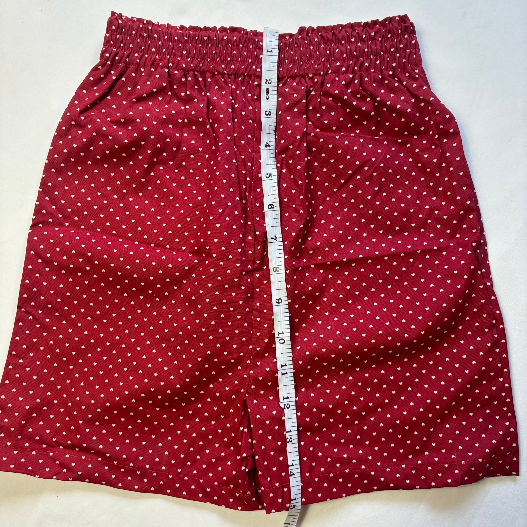 Vintage tiny hearts pattern dark red shorts with stretchy elastic waist! Like new without tags! Please see all photos for condition and measurements