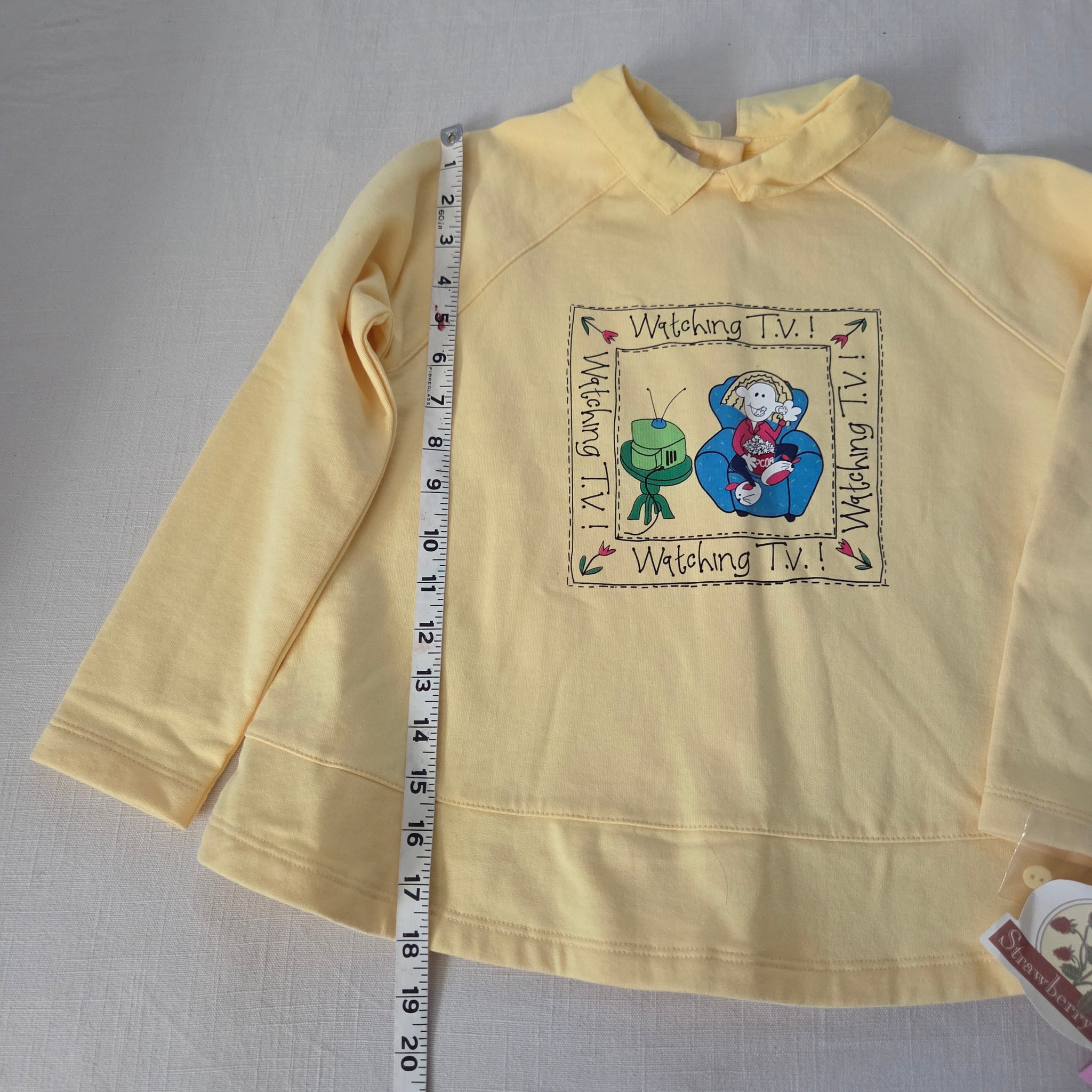 Vintage deadstock with tags Strawberry Fair brand yellow sweater with "watching TV" cute design on chest! Please see all photos for condition and measurements
