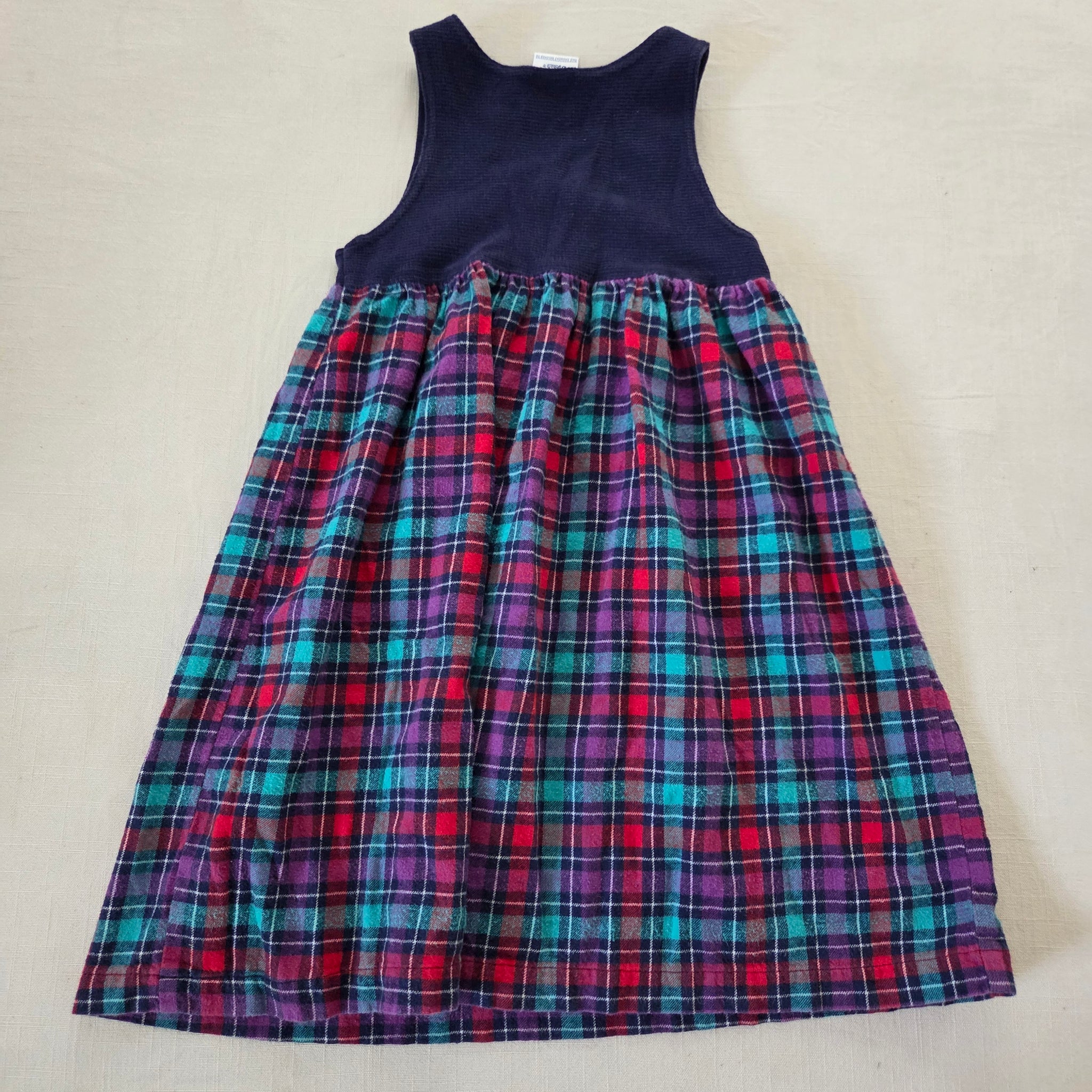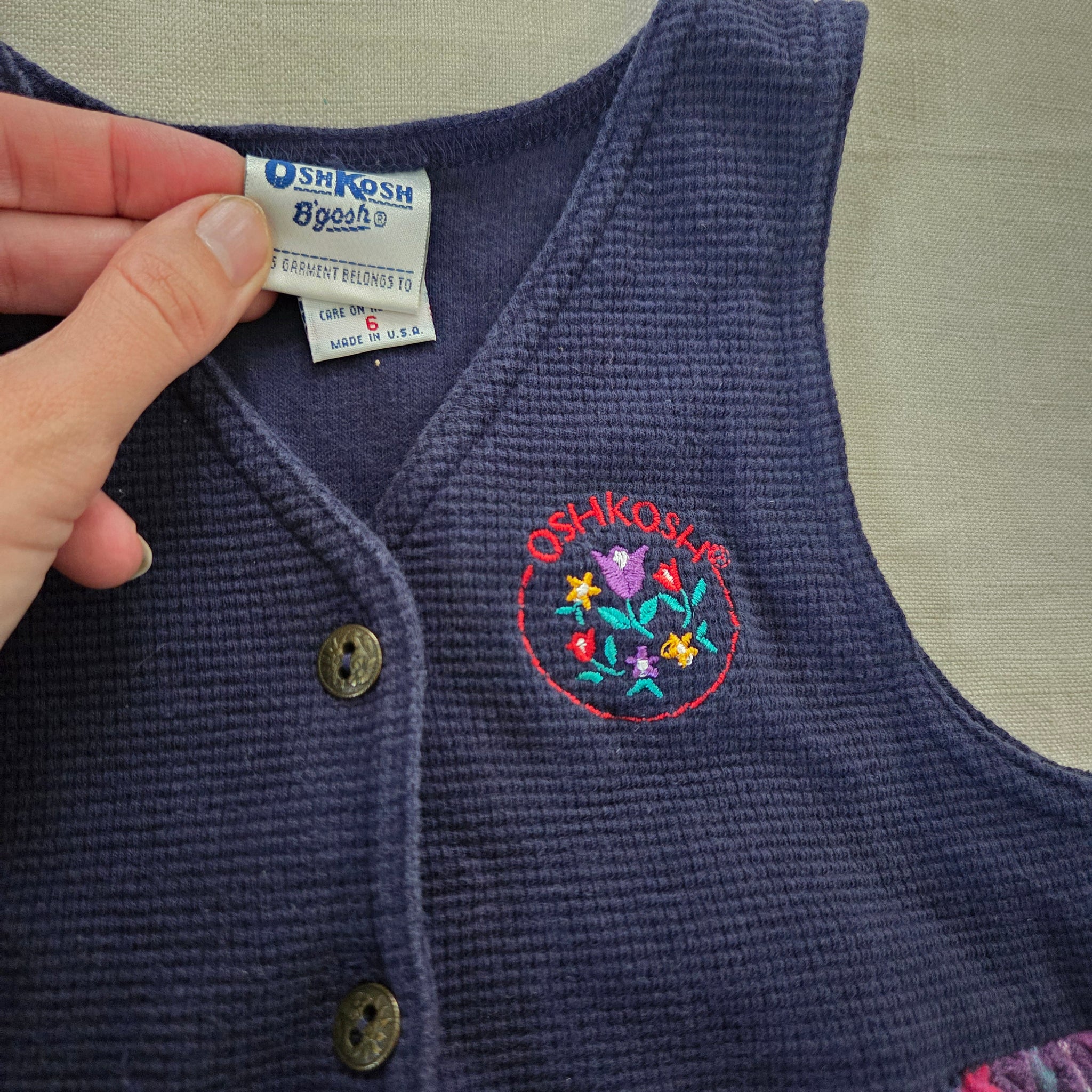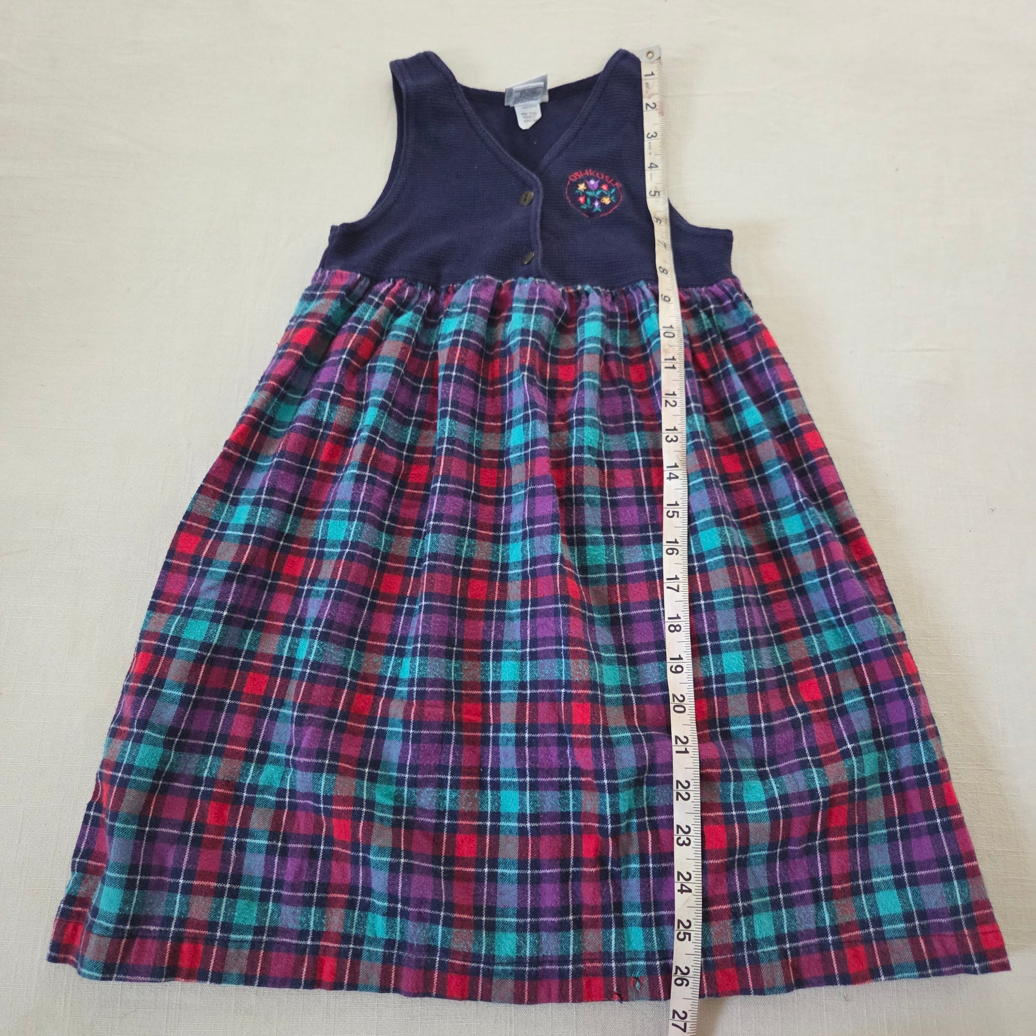 Vintage Oshkosh navy blue plaid dress with flower embroidery on chest! Please see all photos for condition and measurements