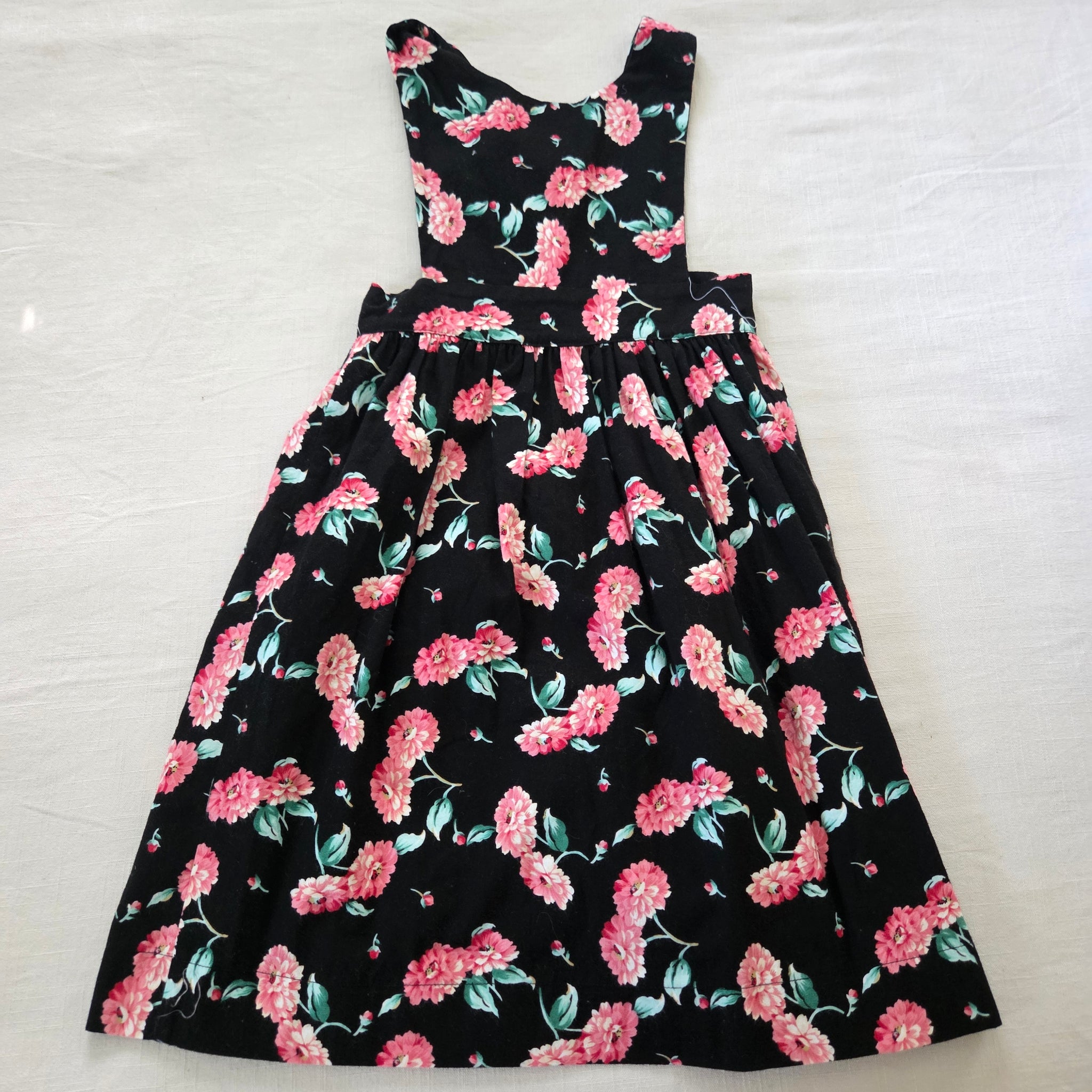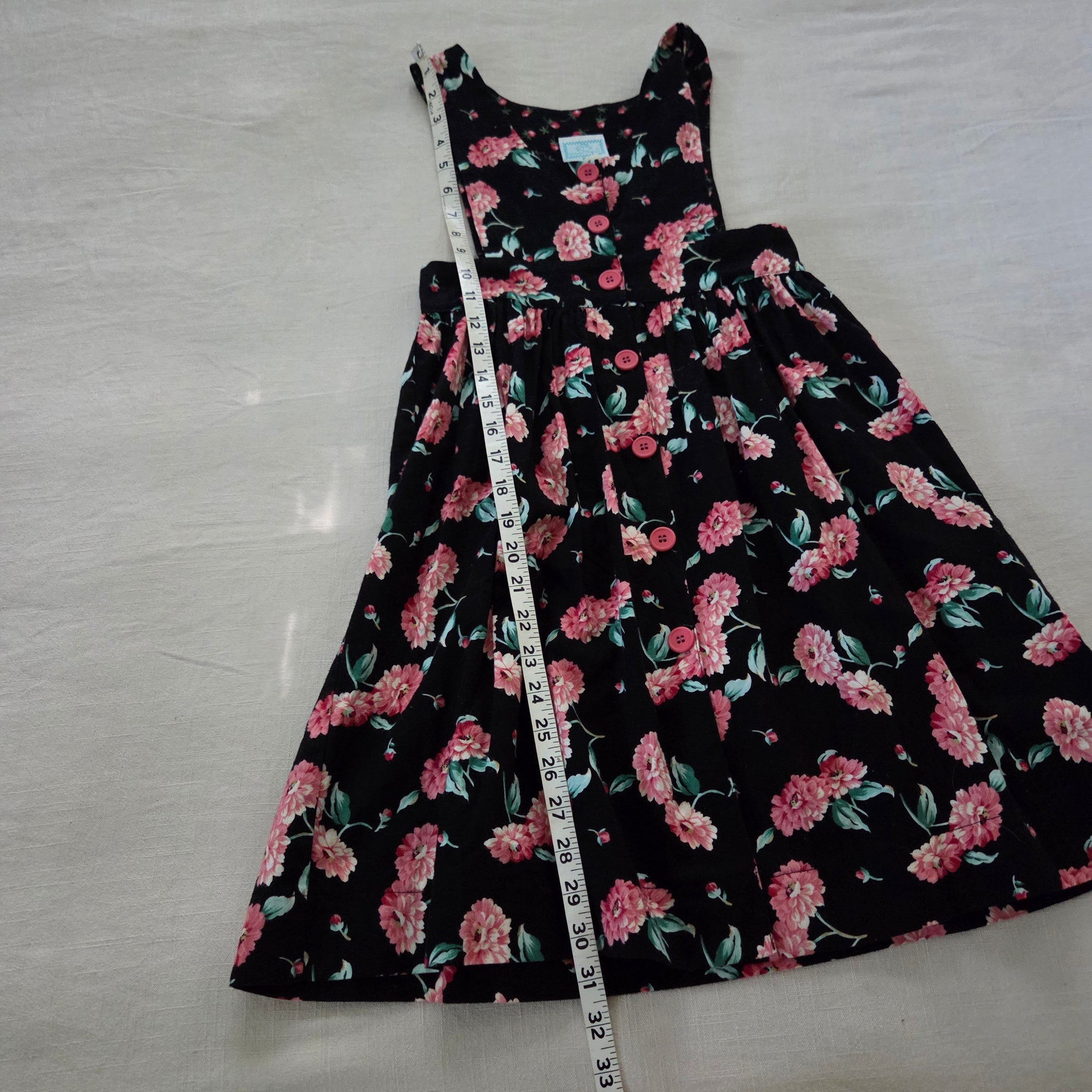 Vintage Cottontail Originals brand black and pink carnation/peony floral sleeveless dress! Note one sleeve is twisted on one side, apparently sewn incorrectly. Please see all photos for condition and measurements