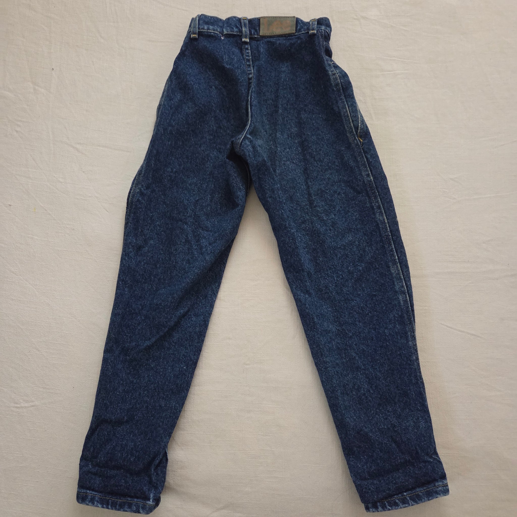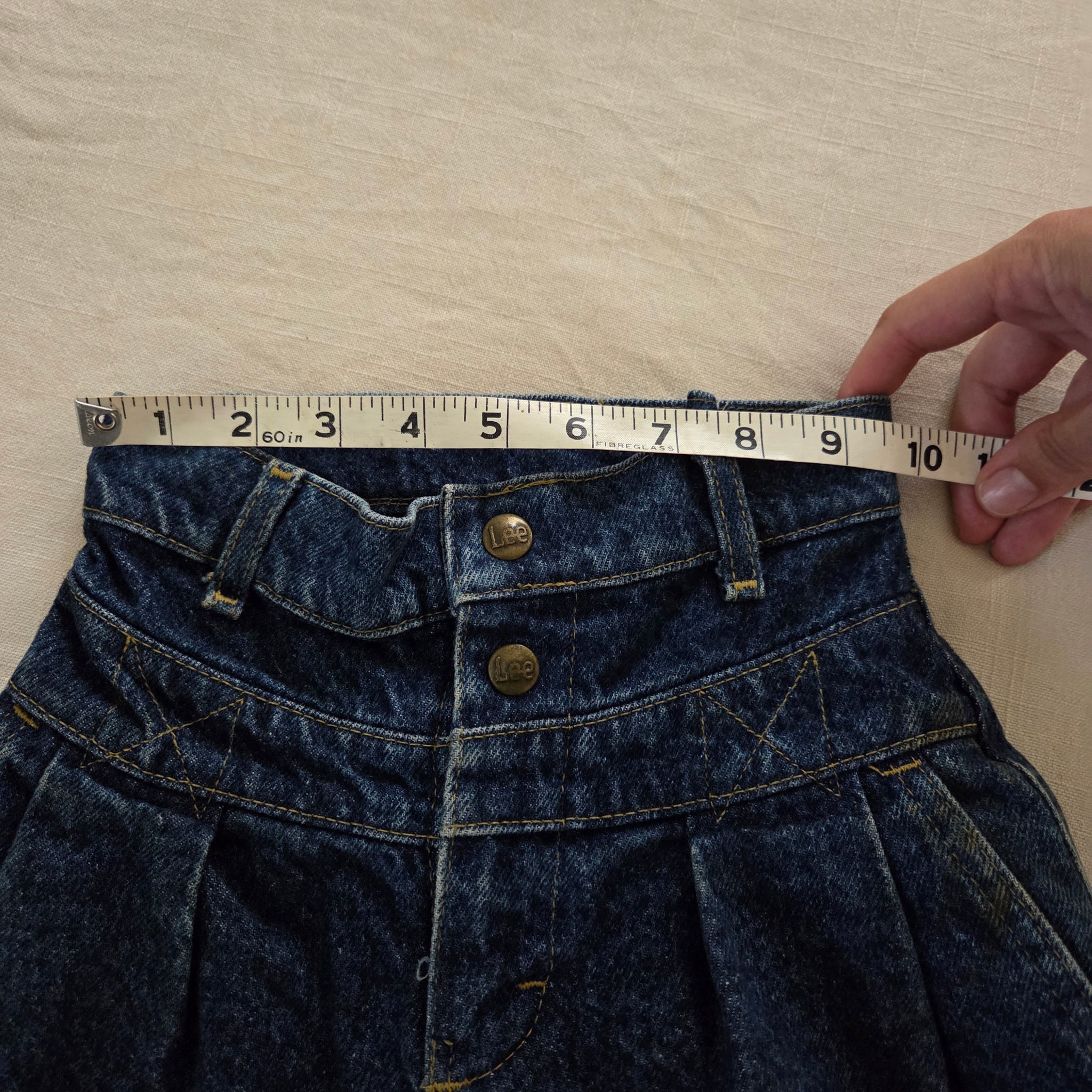 Vintage Lee 80s era high waisted jeans with yoke front waist! Note a light yellow spot on side waist area shown. Please see all photos for condition and measurements