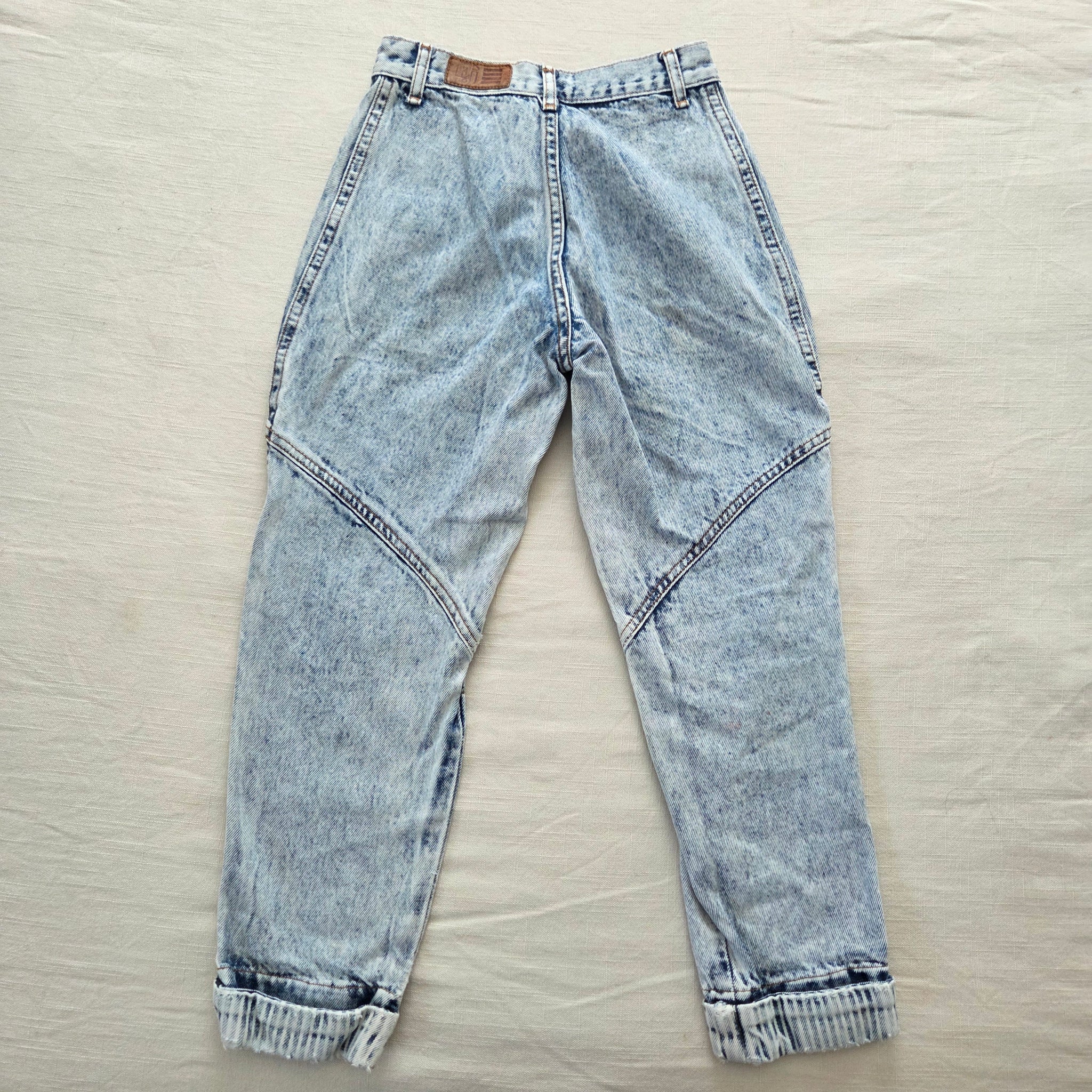 Vintage Gitano brand acid wash jeans with tapered legs/ankles! Note distressed knee on one leg. Please see all photos for condition and measurements
