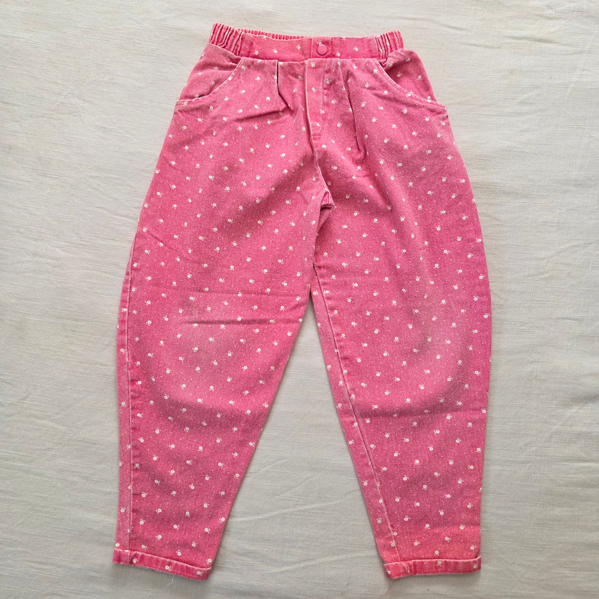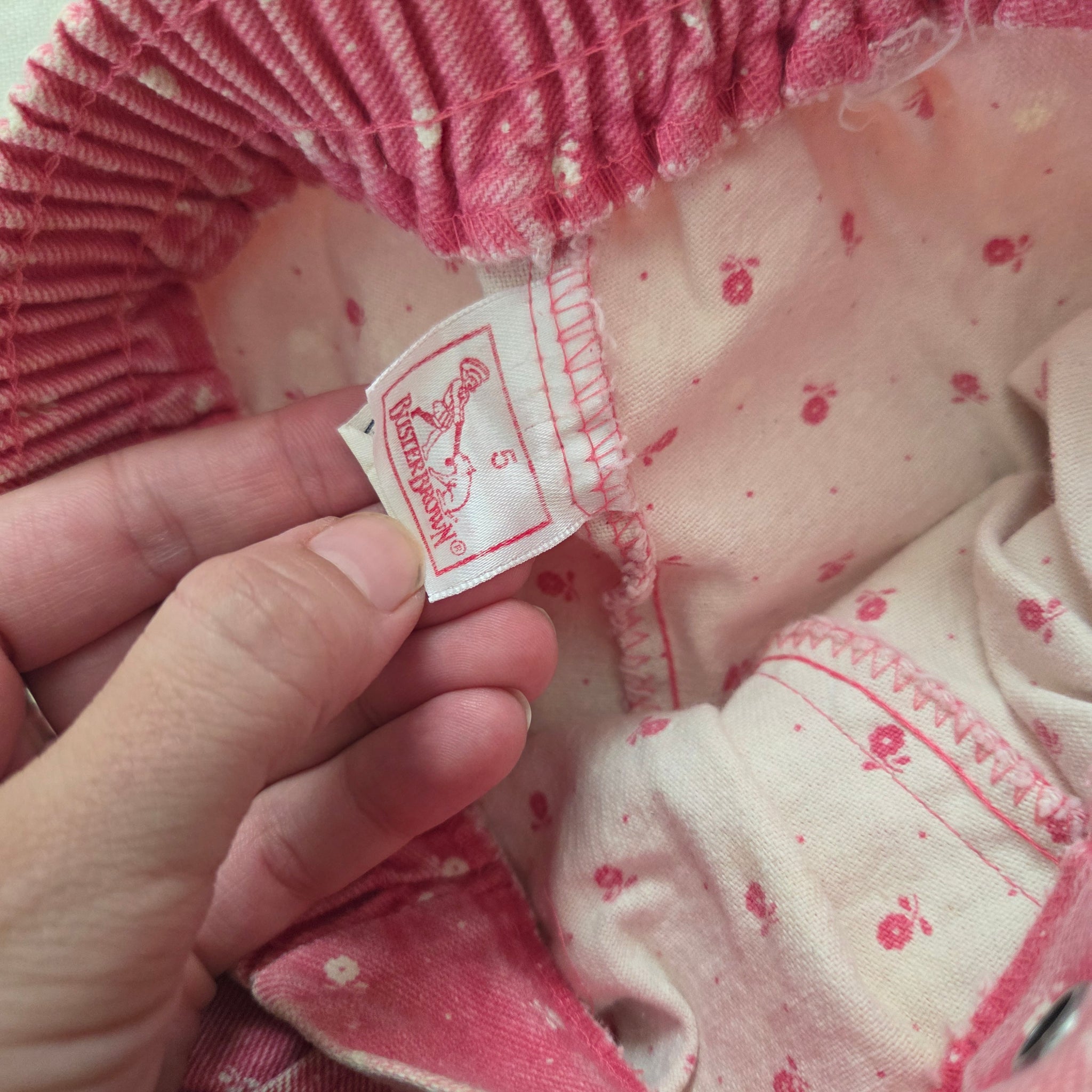 Vintage Buster Brown faded pink floral jeans with stretchy elastic waist! Please see all photos for condition and measurements