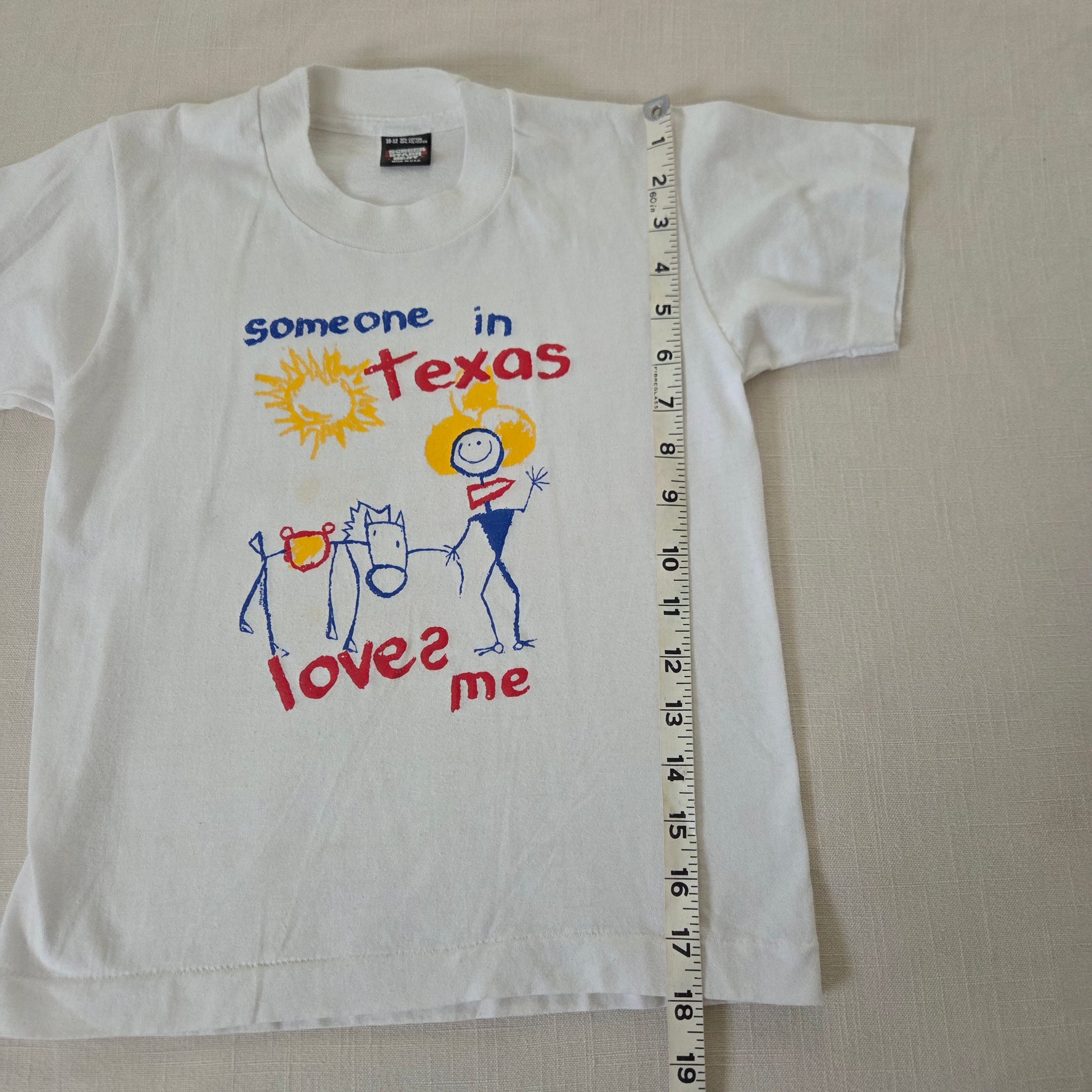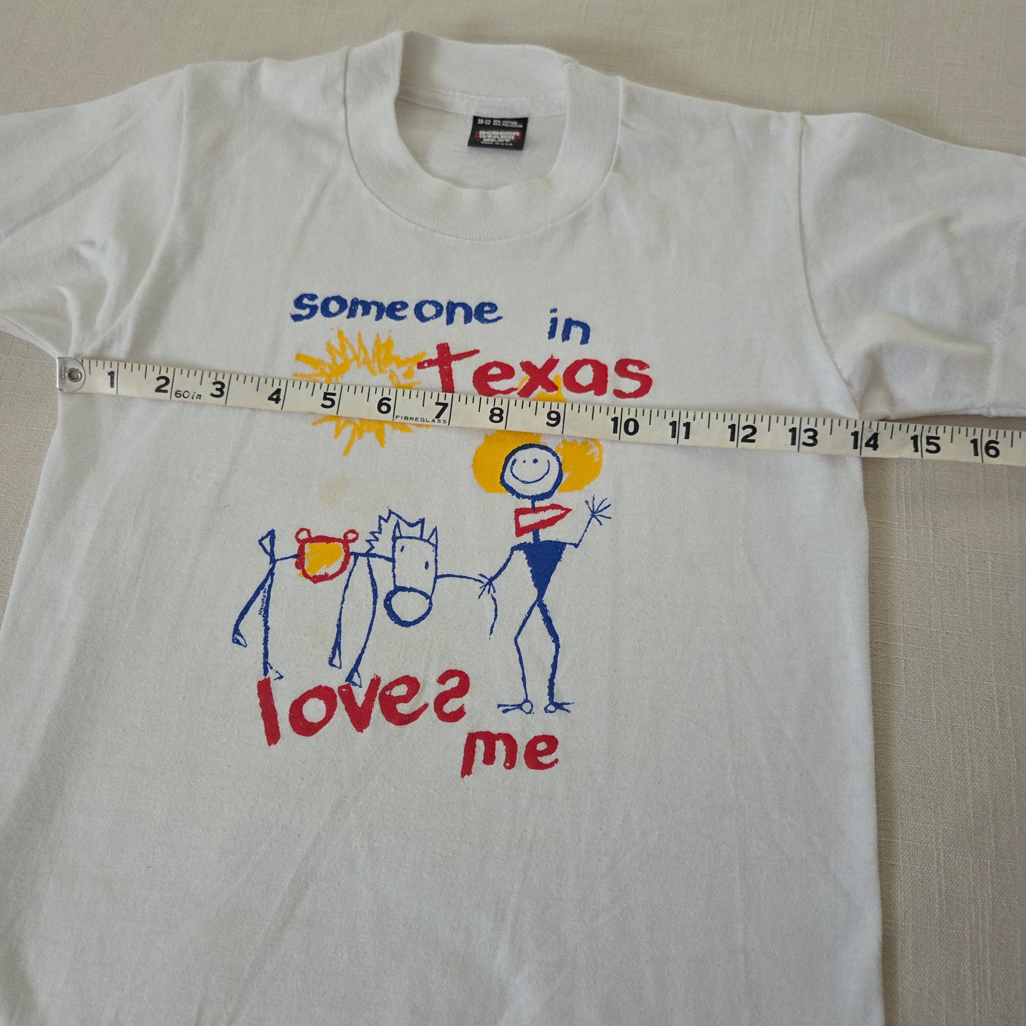 Vintage Screen Stars Best tag "someone loves me in Texas" white travel souvenir tee! Note light spot shown on chest. Please see all photos for condition and measurements