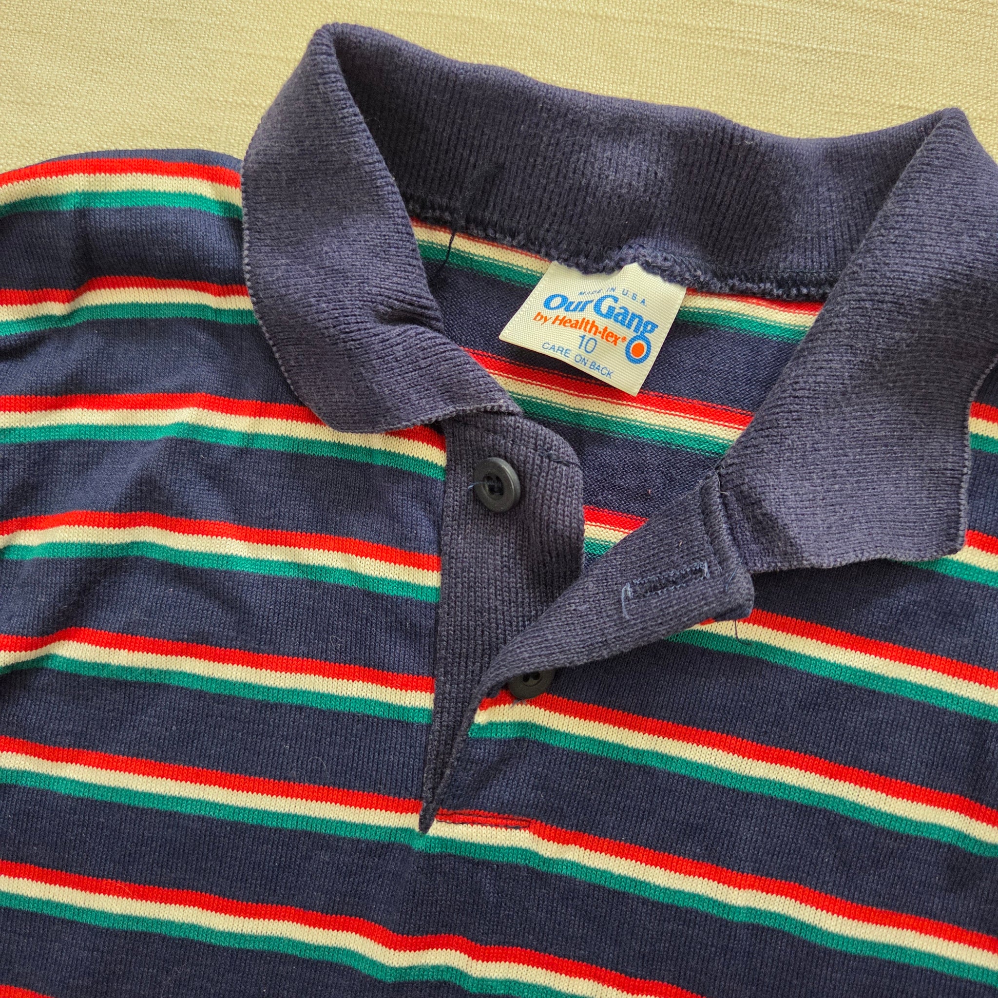 Vintage Our Gang by Healthtex brand navy blue and multicolored striped long sleeve collared shirt! Please see all photos for condition and measurements