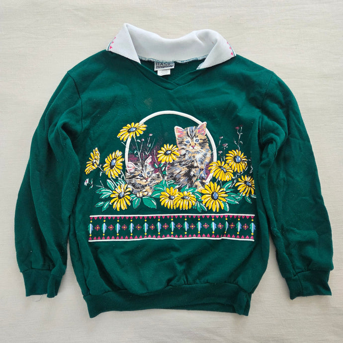 Vintage 90s Basic Editions Sweatshirt Green Kitty 7/8
