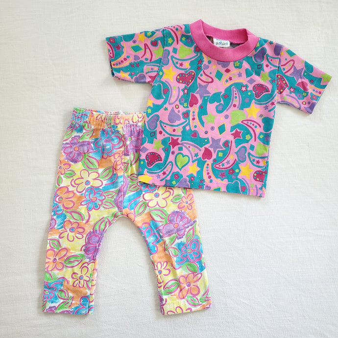 Vintage Bundle Floral Shirt + Pink Pantsuit 3-6 months