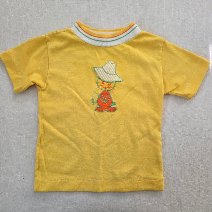 Vintage Healthtex Fishing Cat Yellow Tee 2t