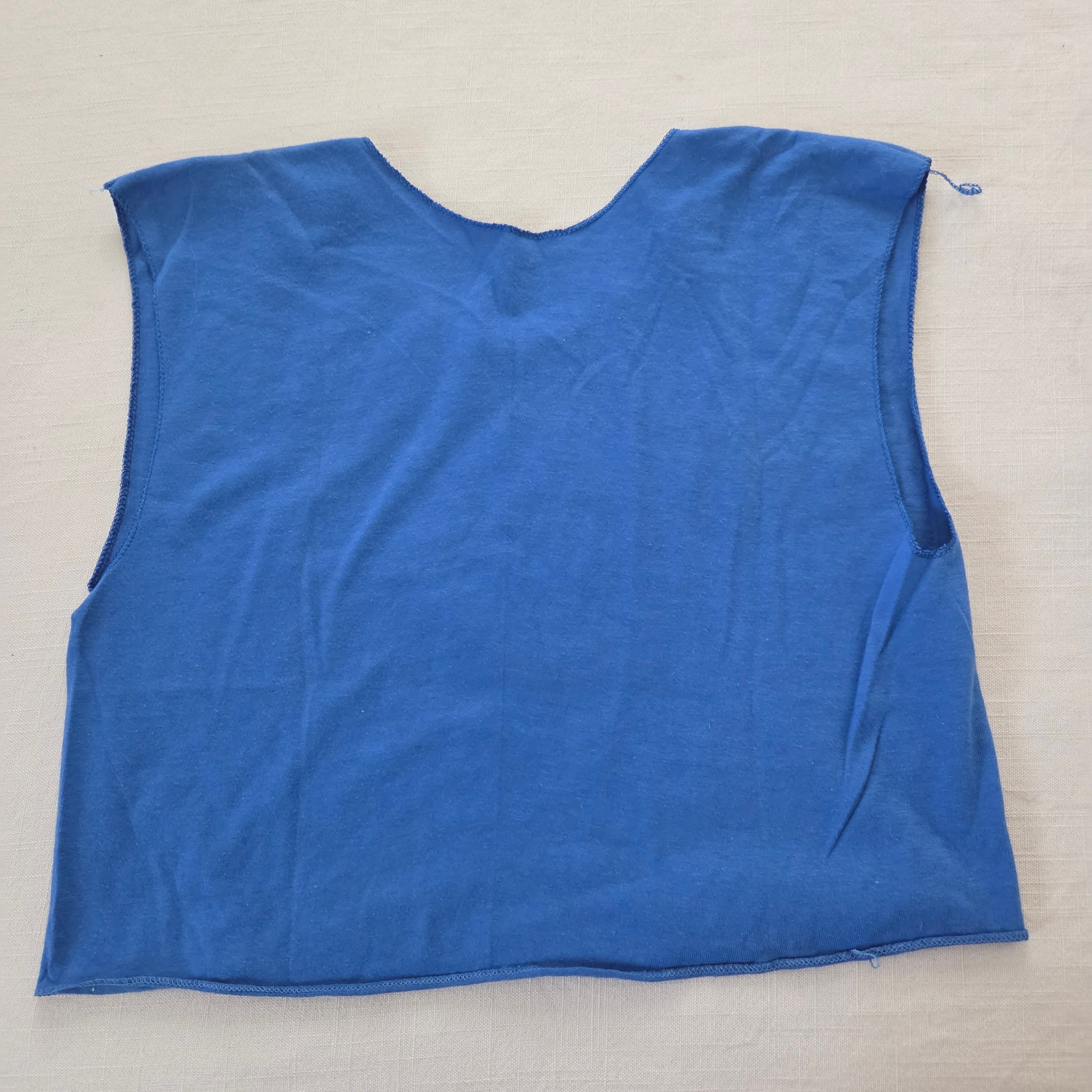 Vintage Michael Jackson Thriller blue slouchy sleeveless cropped shirt! Note faint spot shown over name but seems noticeable only in photo. Please see all photos for condition and measurements
