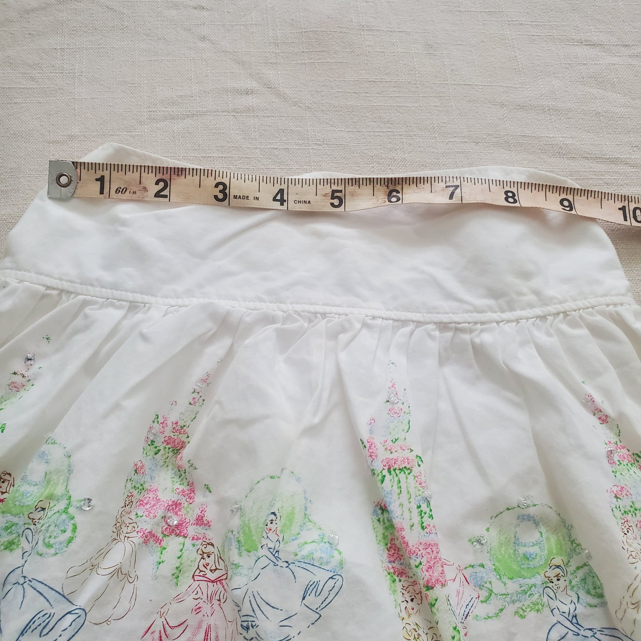 Cute Disney Princess skirt with flowers and rhinestones on it! Please see all photos for condition and measurements.