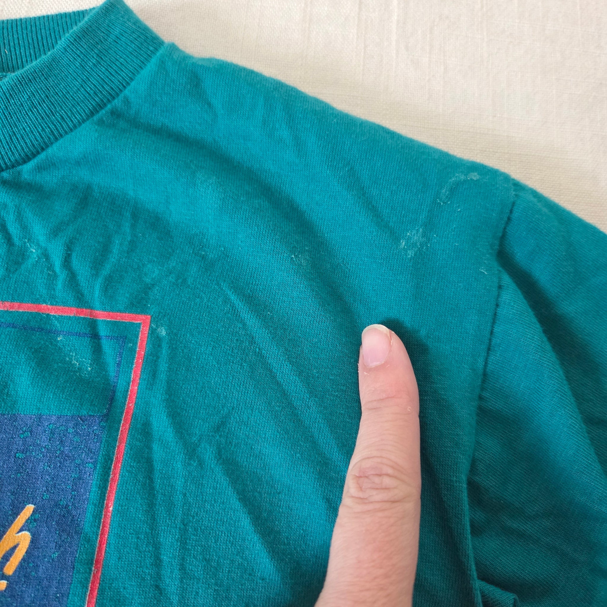 Vintage Oshkosh teal long sleeve shirt with branding on chest! Note a couple light spots shown that may wash out. Please see all photos for condition and measurements