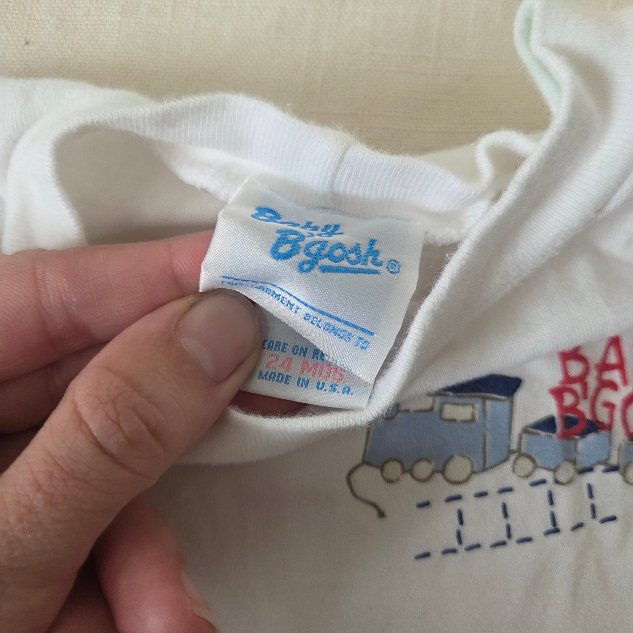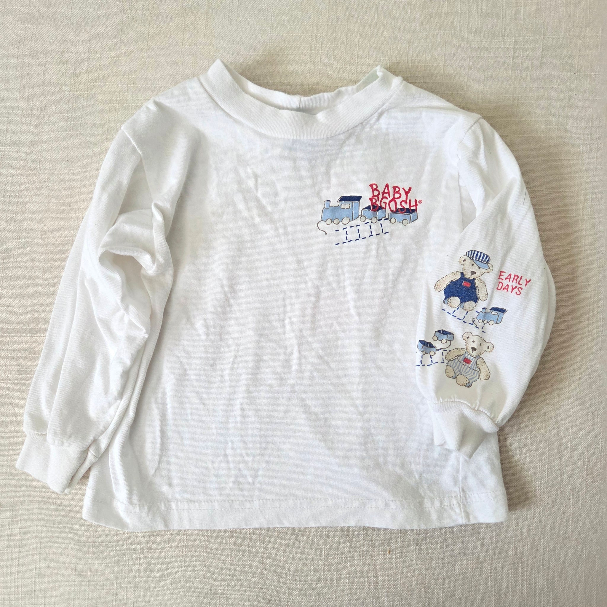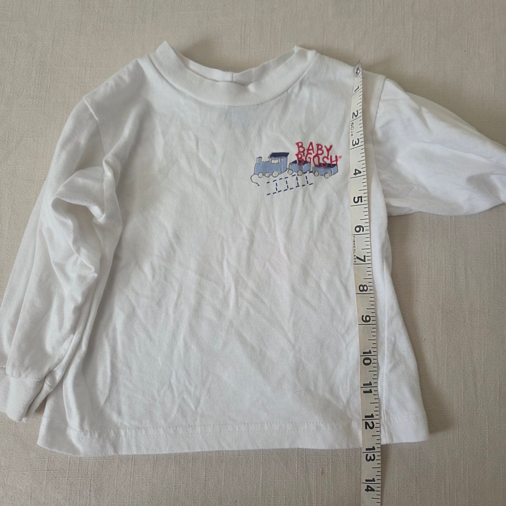 Vintage Oshkosh white long sleeve shirt with trains on chest and bears on sleeve! Please see all photos for condition and measurements