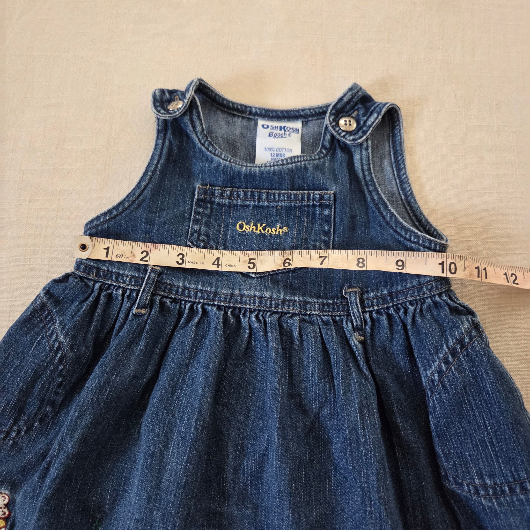 Vintage Oshkosh denim dress with pockets on front! Cute for layering over a shirt or on its own! Please see all photos for condition and measurements