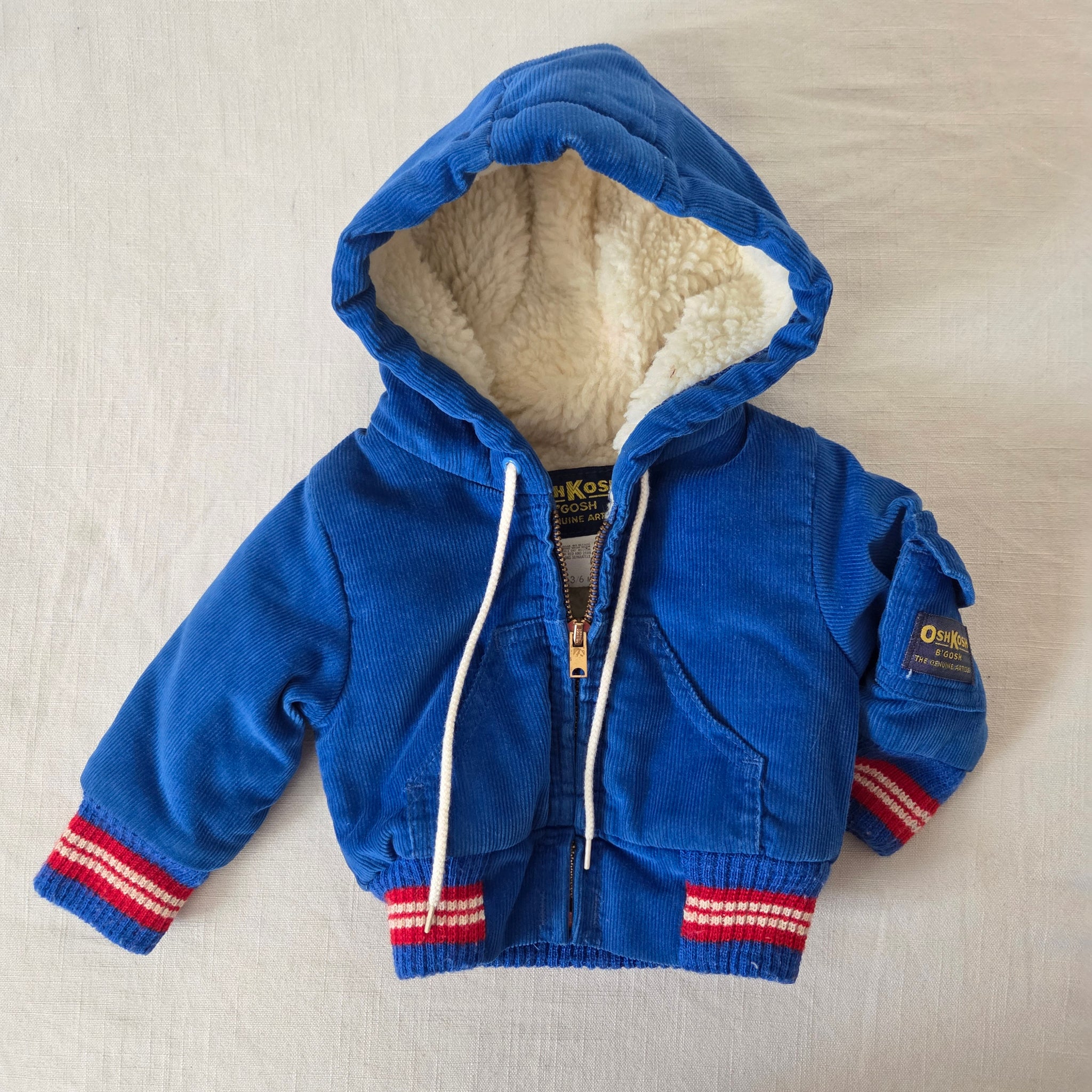 Vintage Oshkosh blue corduroy hooded coat with sherpa lining! Please see all photos for condition and measurements