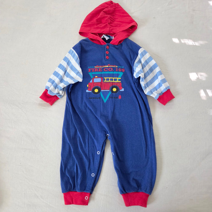 Vintage Firetruck Hooded Bodysuit 24 months