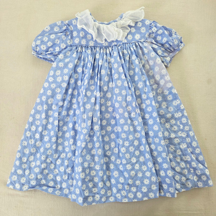 Vintage Daisy Floral Blue Dress 2t *flaw