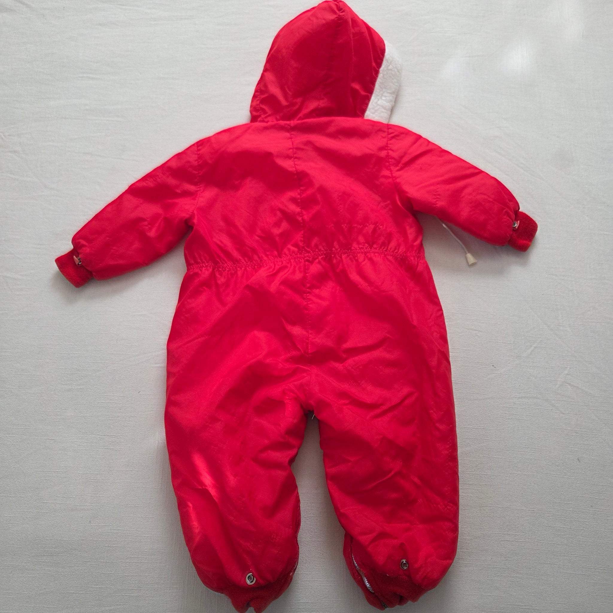 Vintage Convert-a-babe brand 50s or 60s era red hooded snowsuit with deer embroidered on chest! Please see all photos for condition and measurements