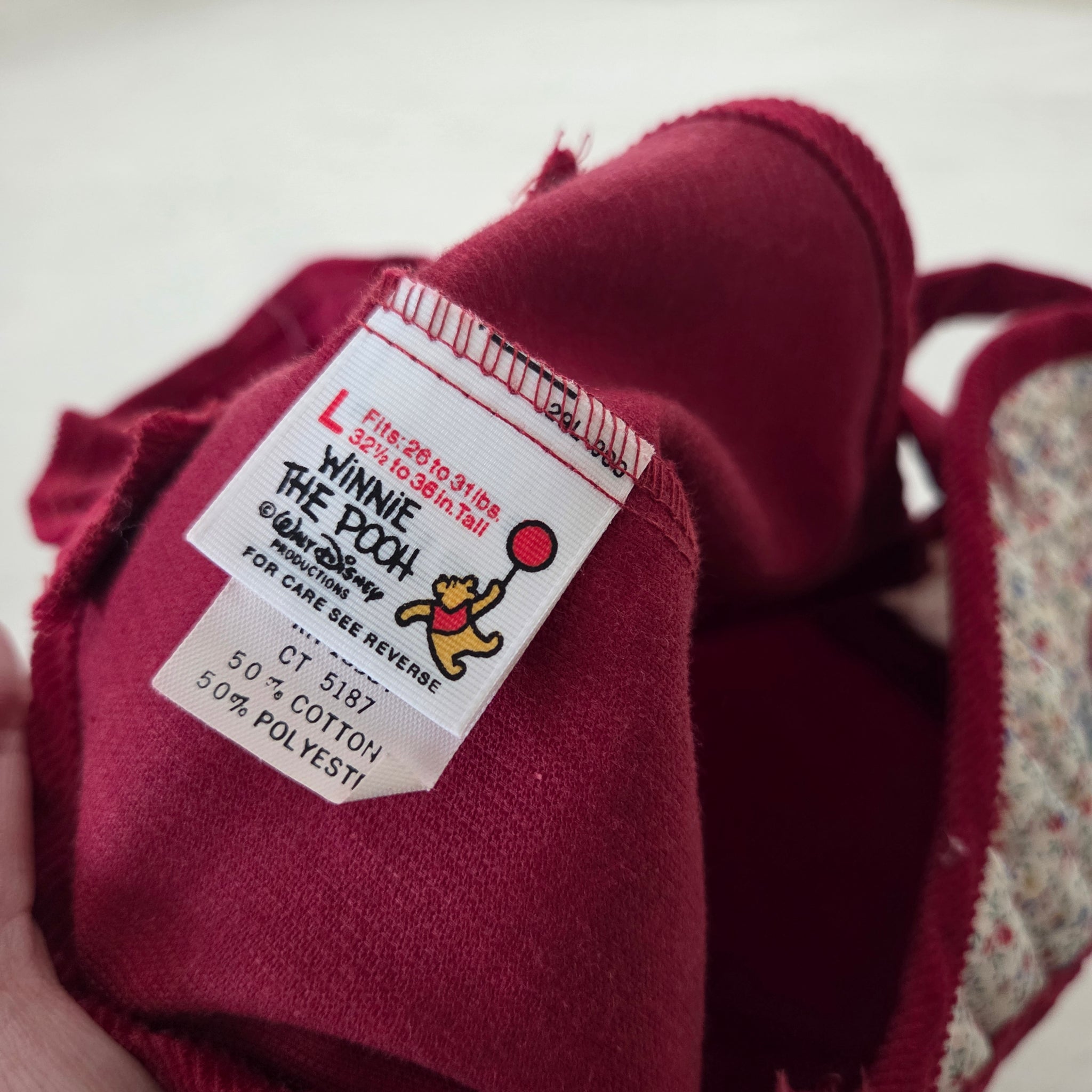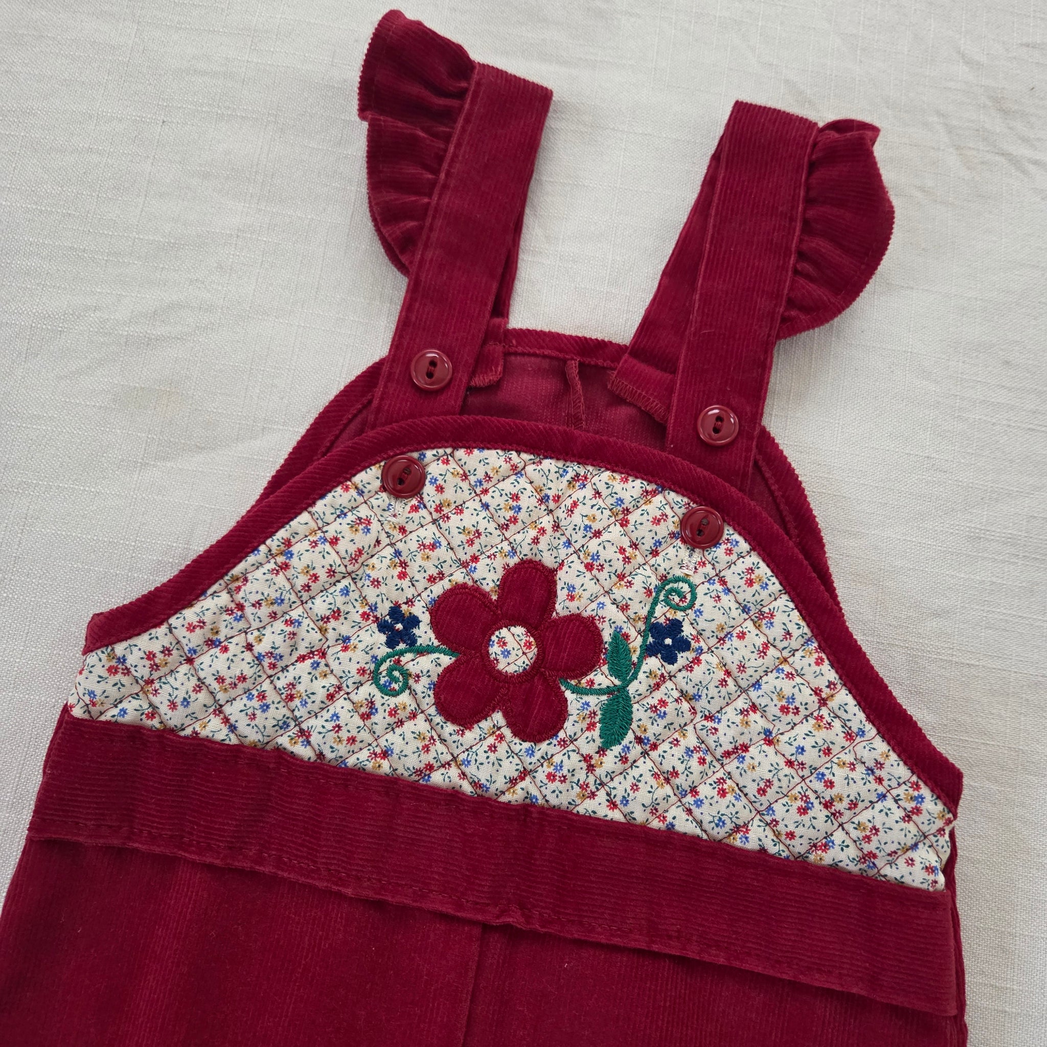 Vintage Winnie the Pooh brand 70s maroon corduroy overalls with floral details on chest! Please see all photos for condition and measurements