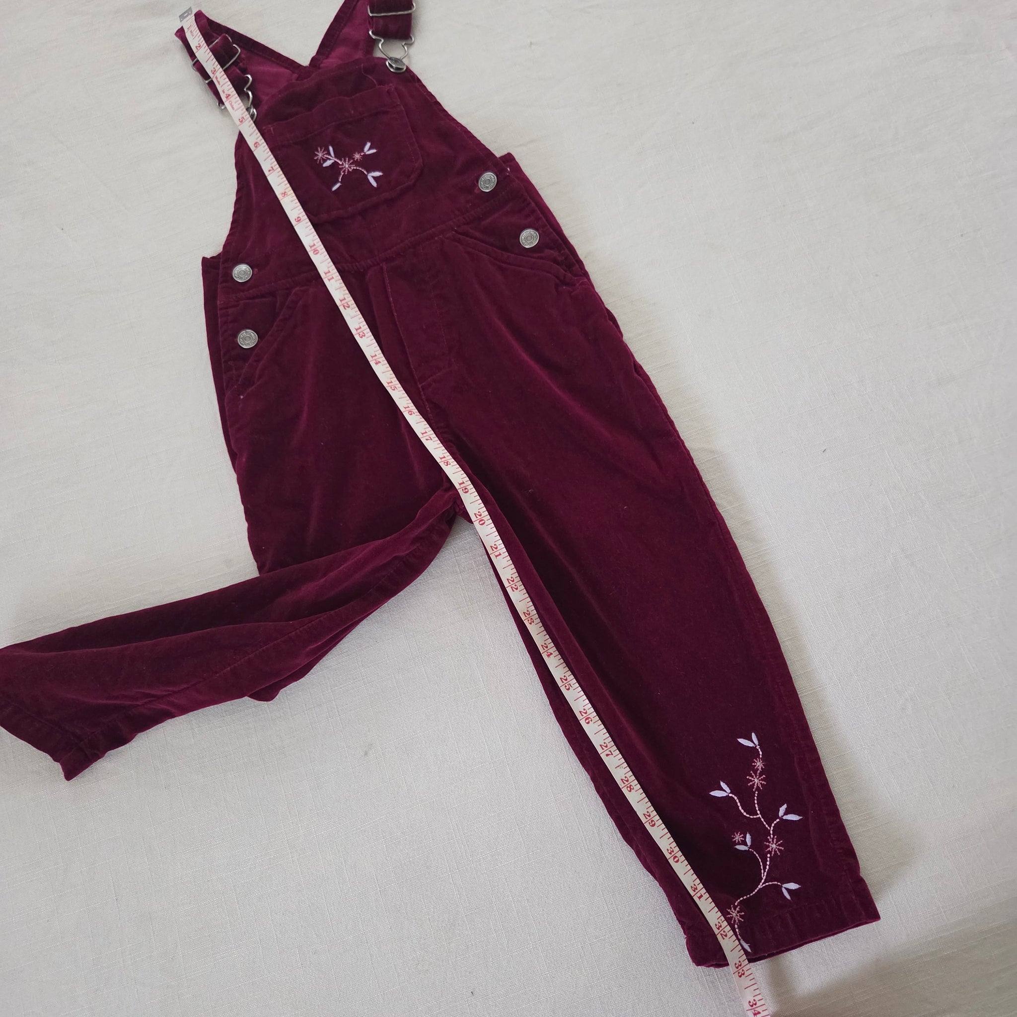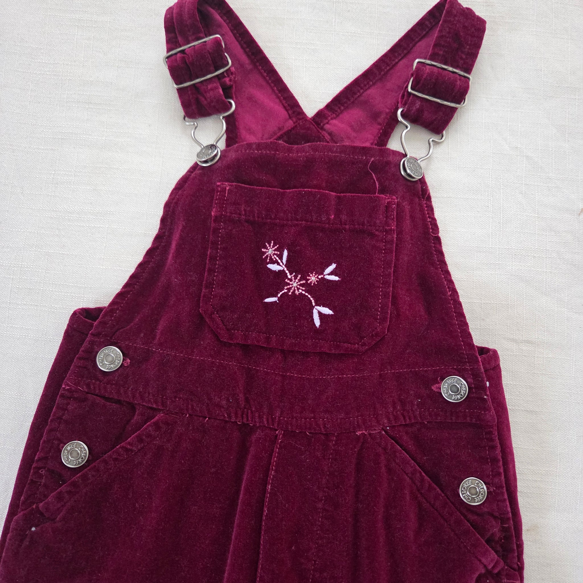 Vintage Maroon Velvet Embroidered Overalls 3t