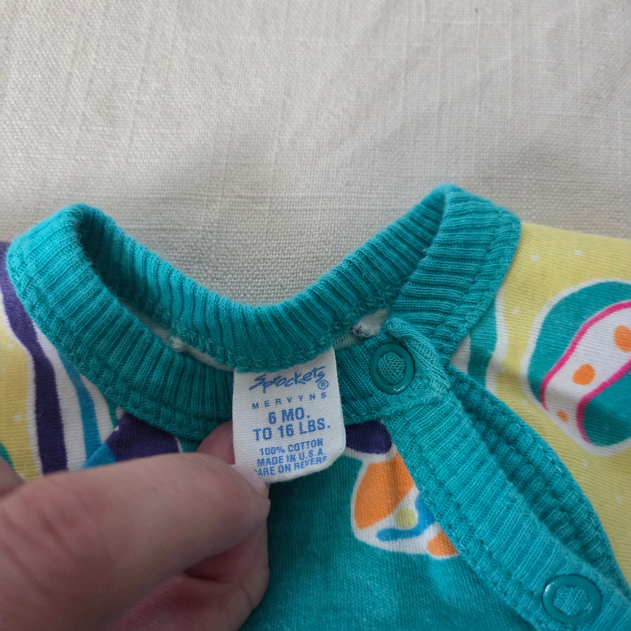 Vintage Sprockets brand colorful toys pattern pantsuit! Note yellow spot on back shown, not treated by me. Please see all photos for condition and measurements
