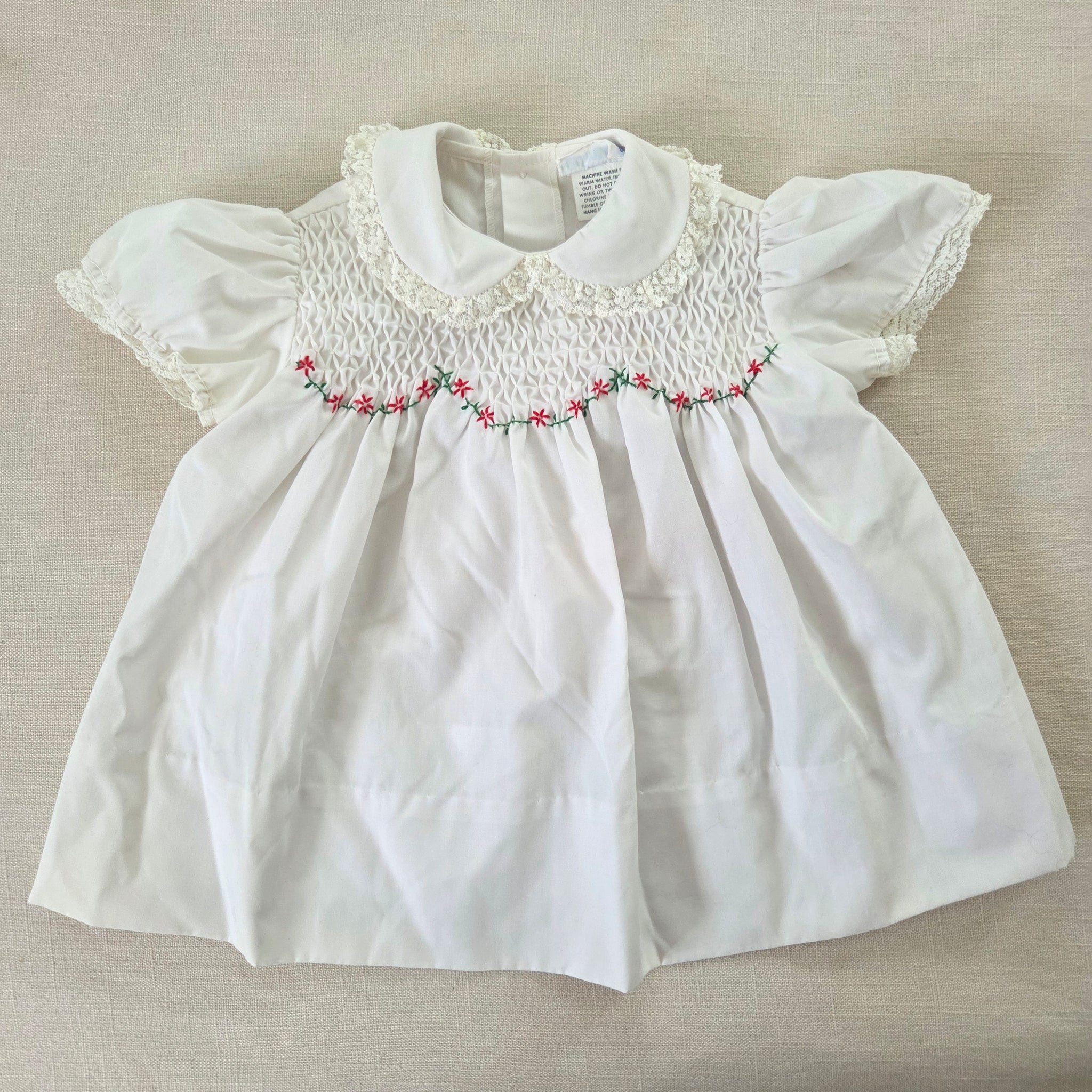 • Load image into Gallery viewer, Vintage Smocked Floral Embroidered Dress 6 months