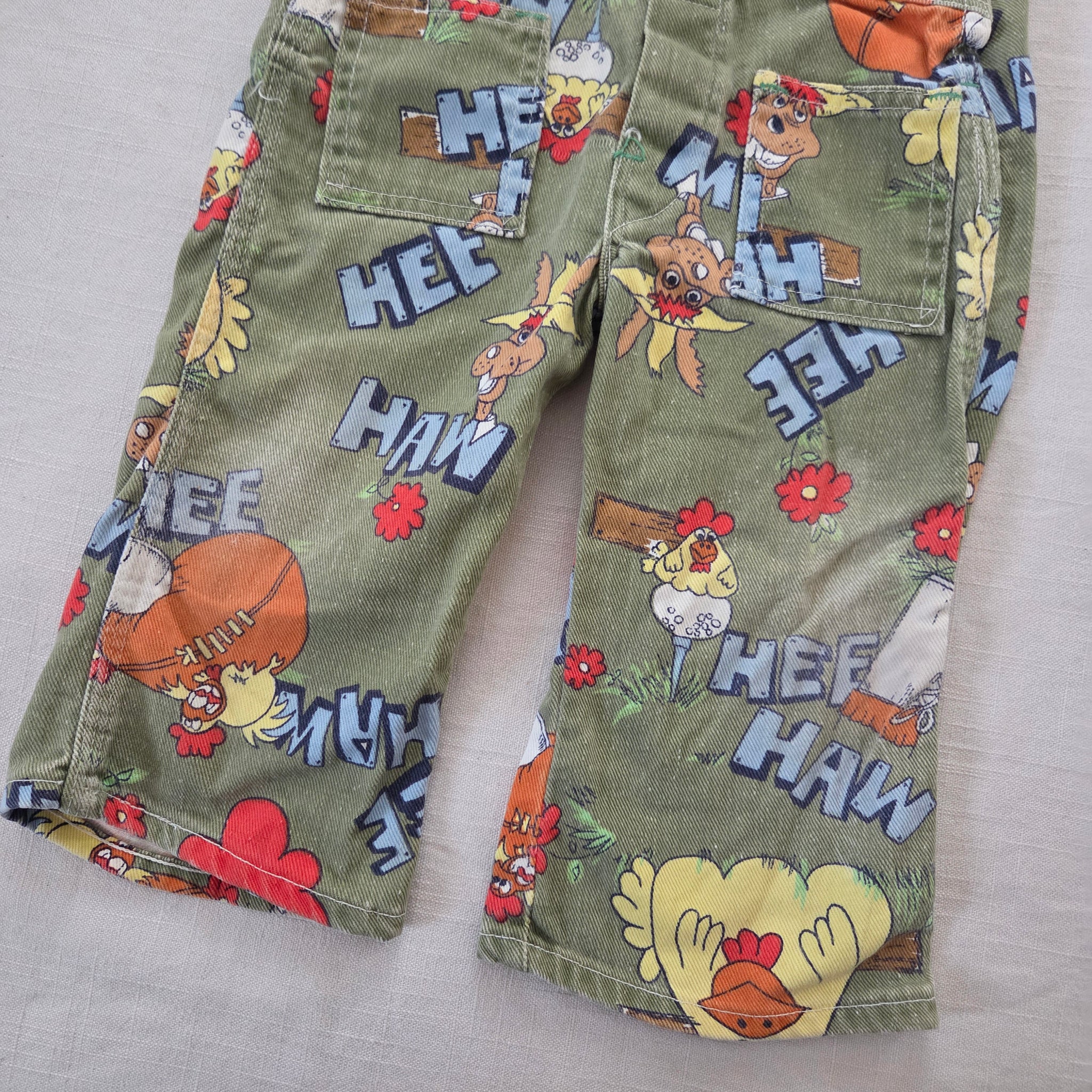 Vintage Liberty rare green color Hee Haw chicken and rooster denim overalls! Please see all photos for condition and measurements