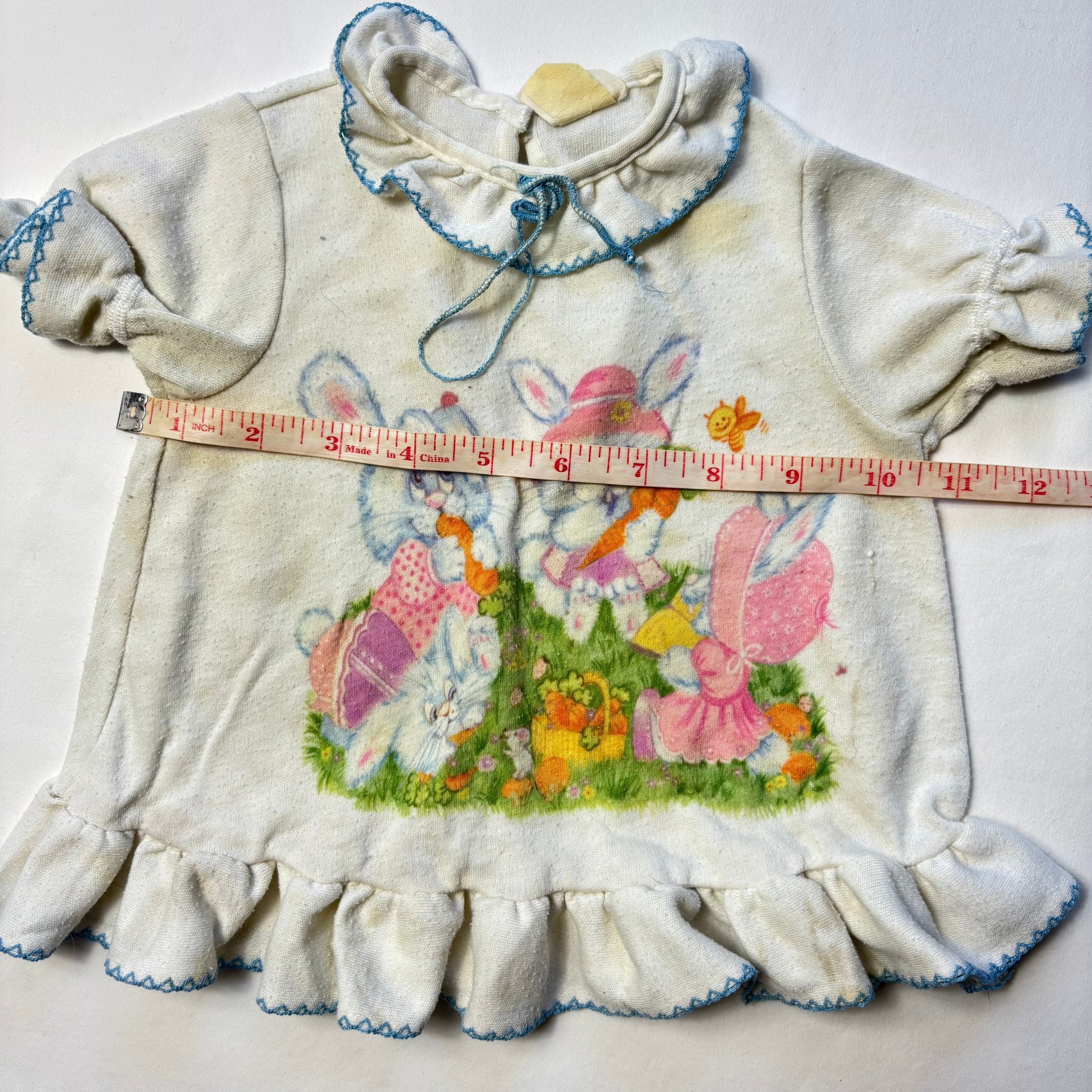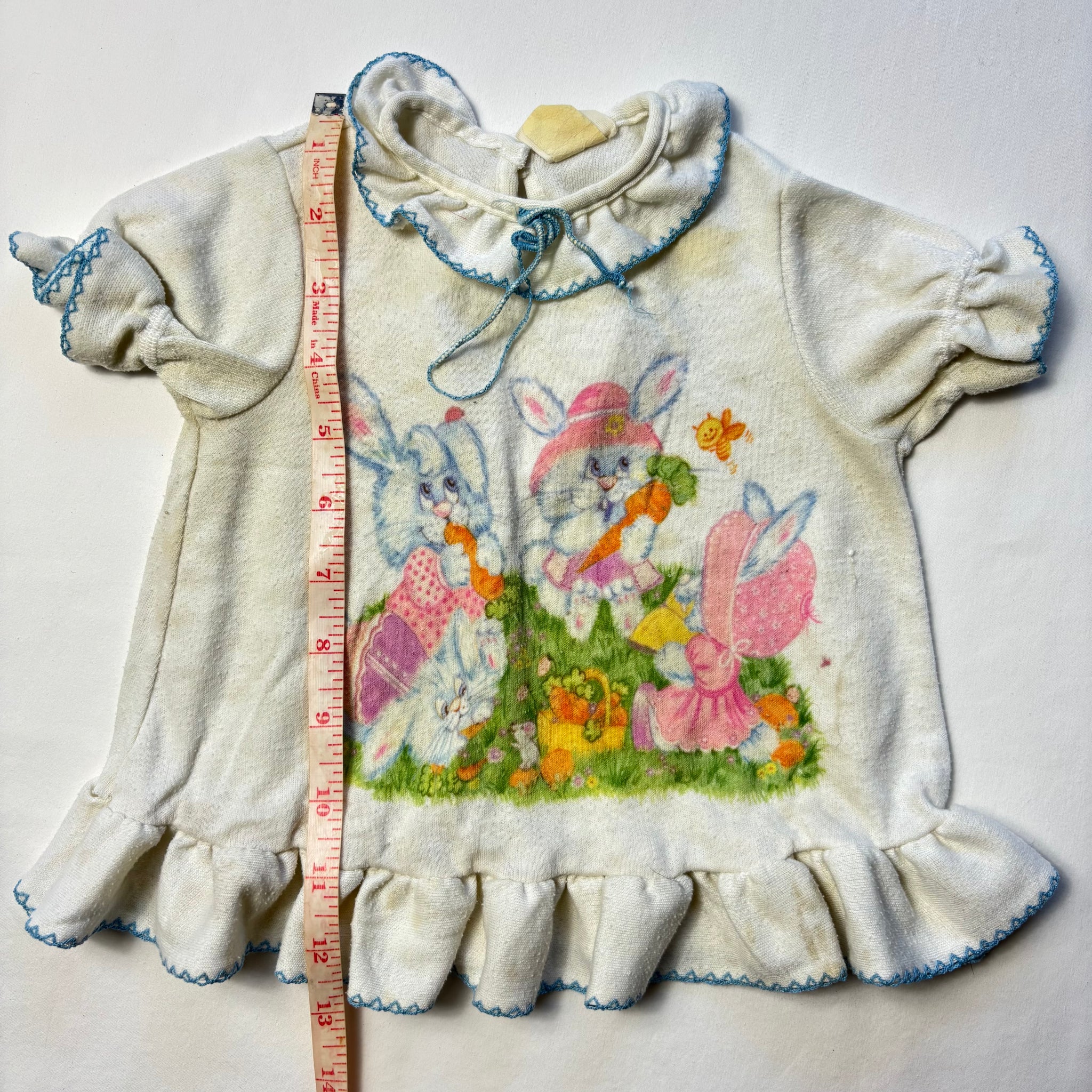 Vintage 70s era Carters flowy top with bunnies on front! Note some piling and isn't super white. Please see all photos for condition and measurements