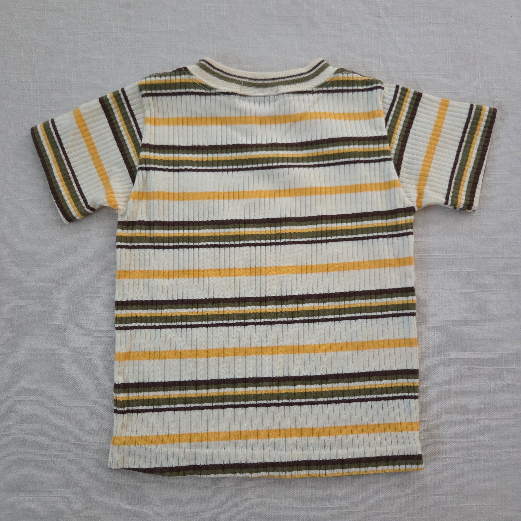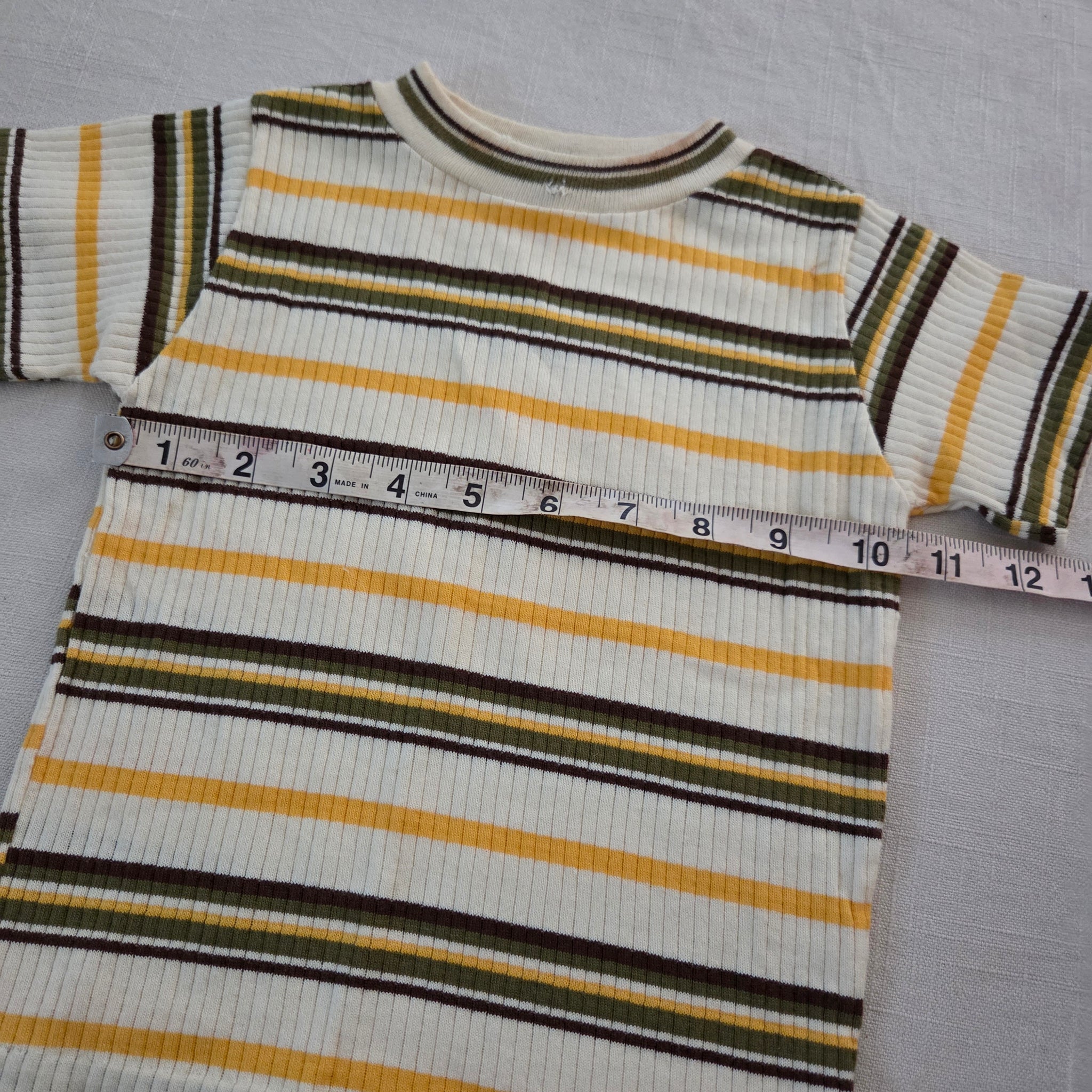 Vintage 60s Healthtex cream shirt with yellow and brown stripes! Note some little spots near neck shown. Please see all photos for condition and measurements