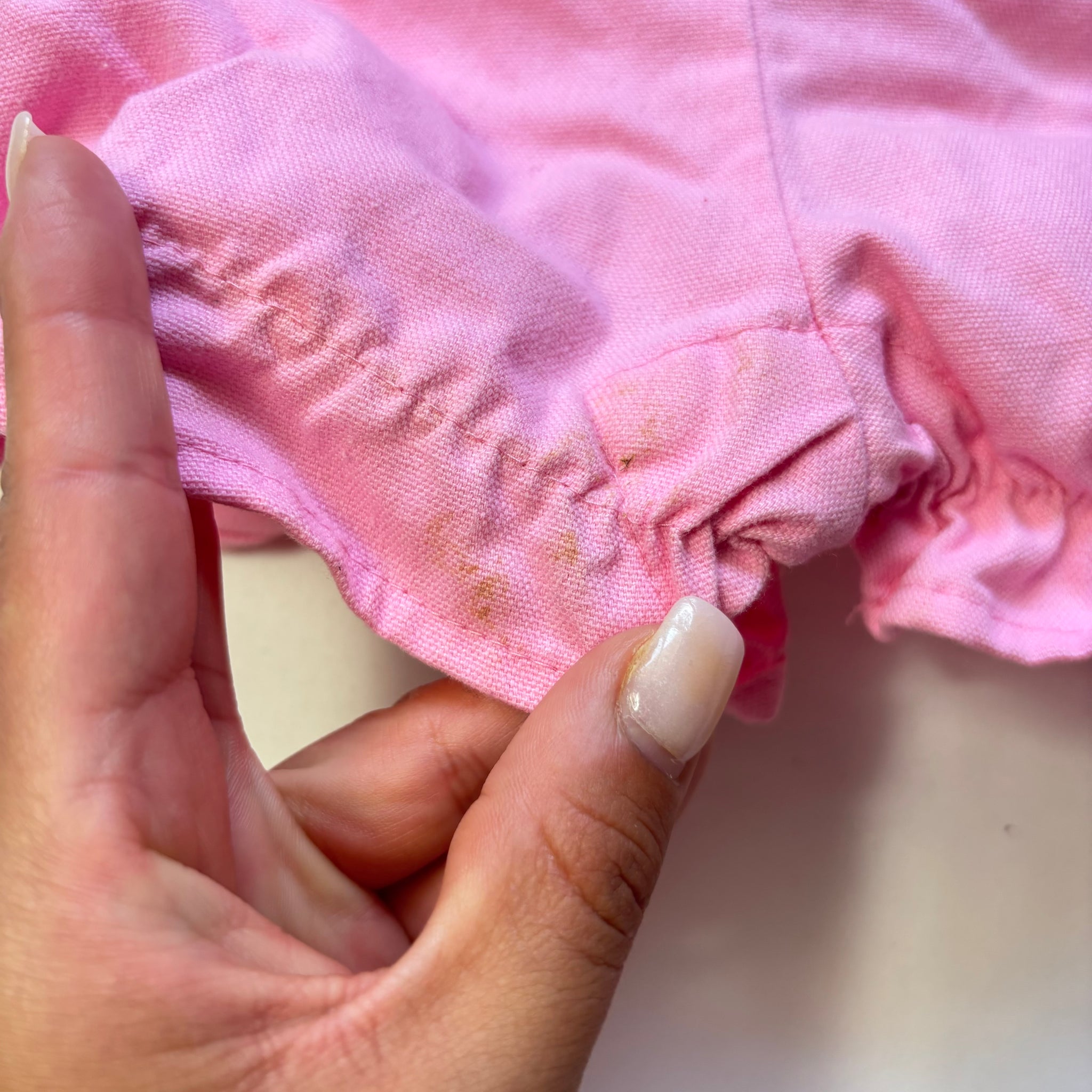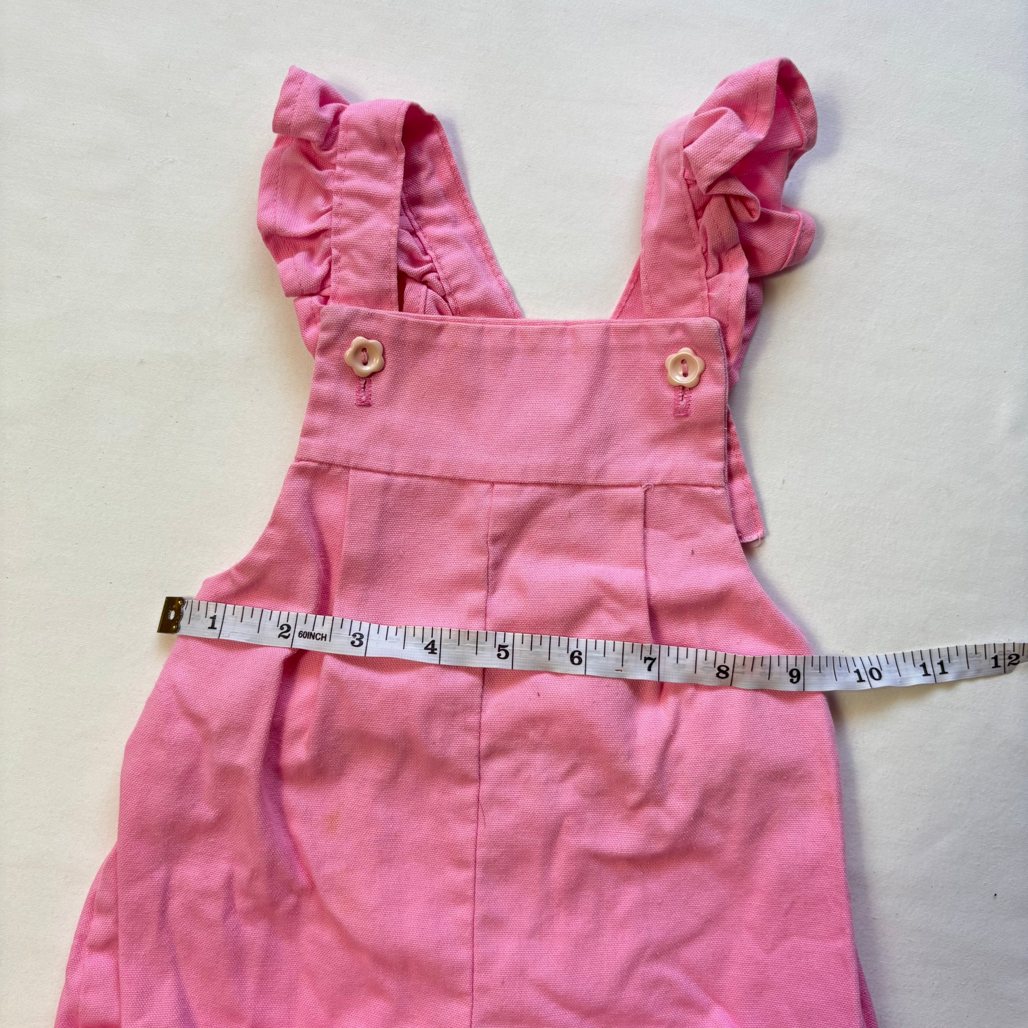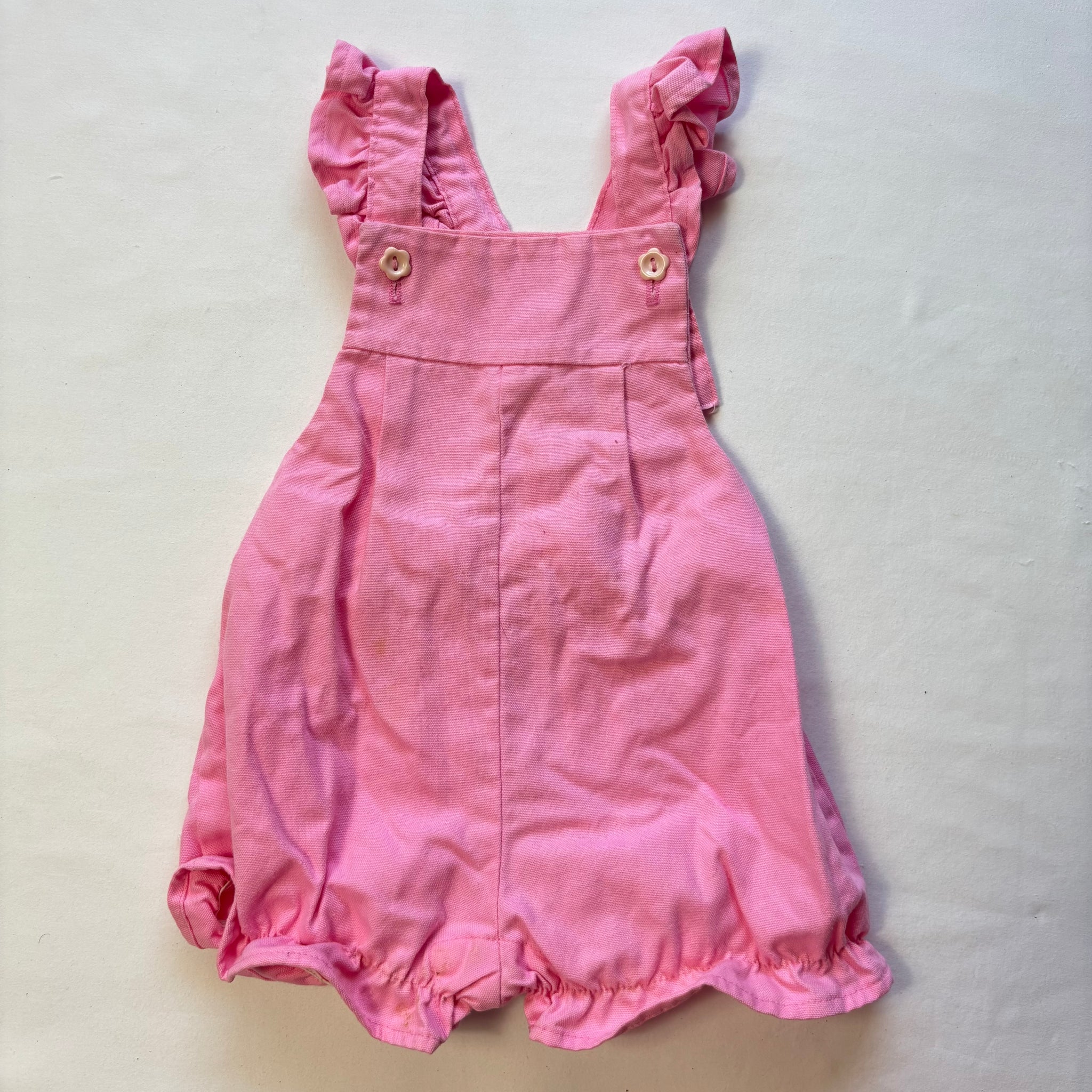 Vintage pink sunsuit romper! Note one snap in saddle is broken and elastic is relaxed in legs plus a spot shown. Still functions overall. Please see all photos for condition and measurements