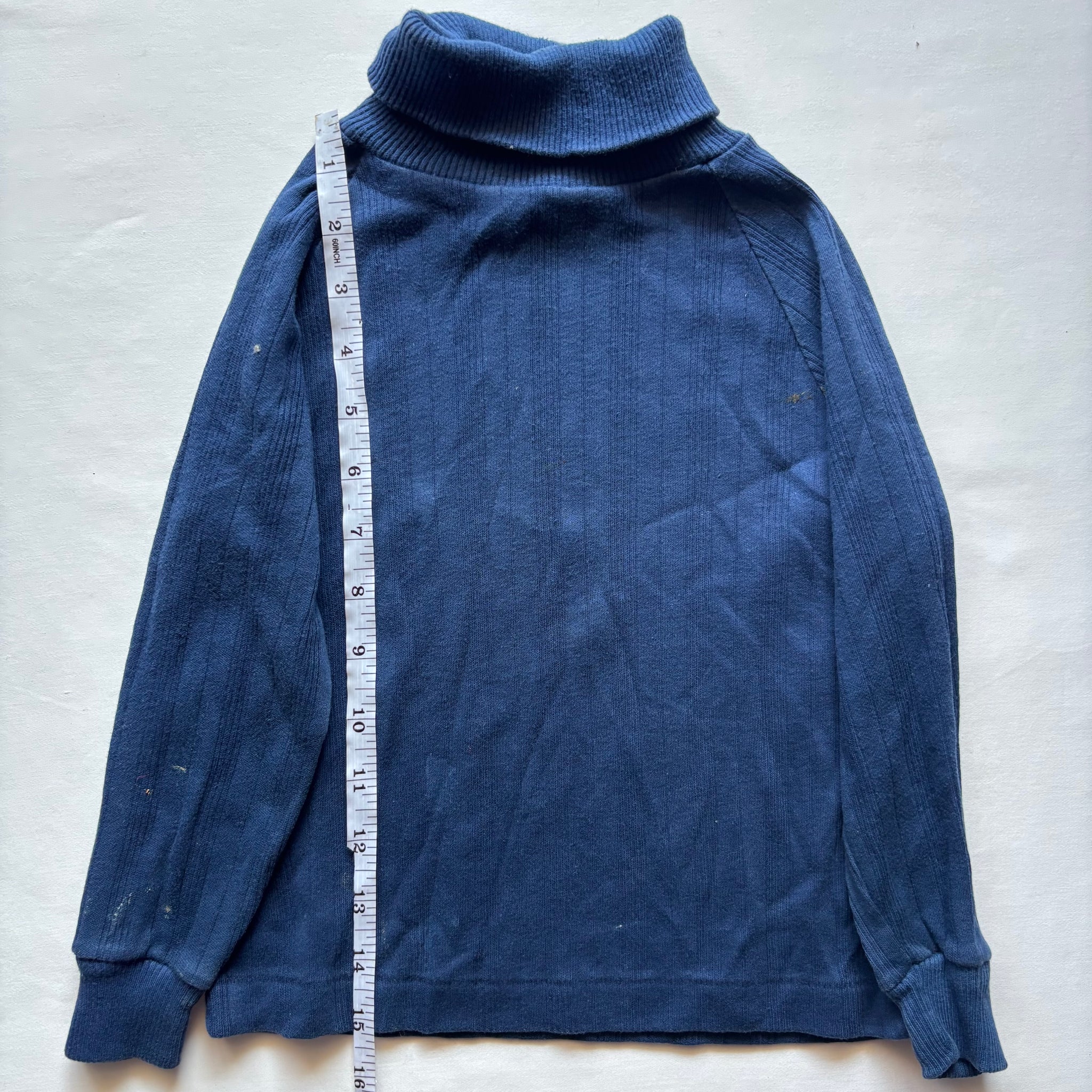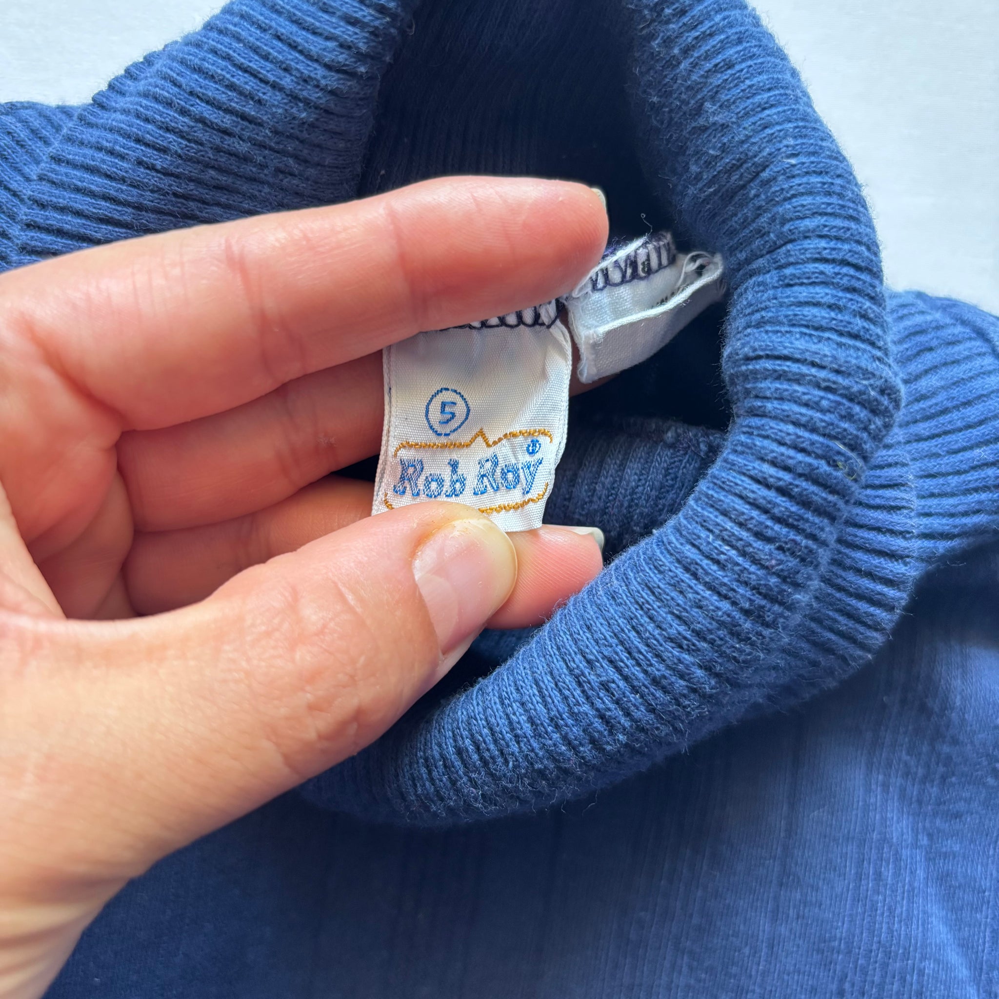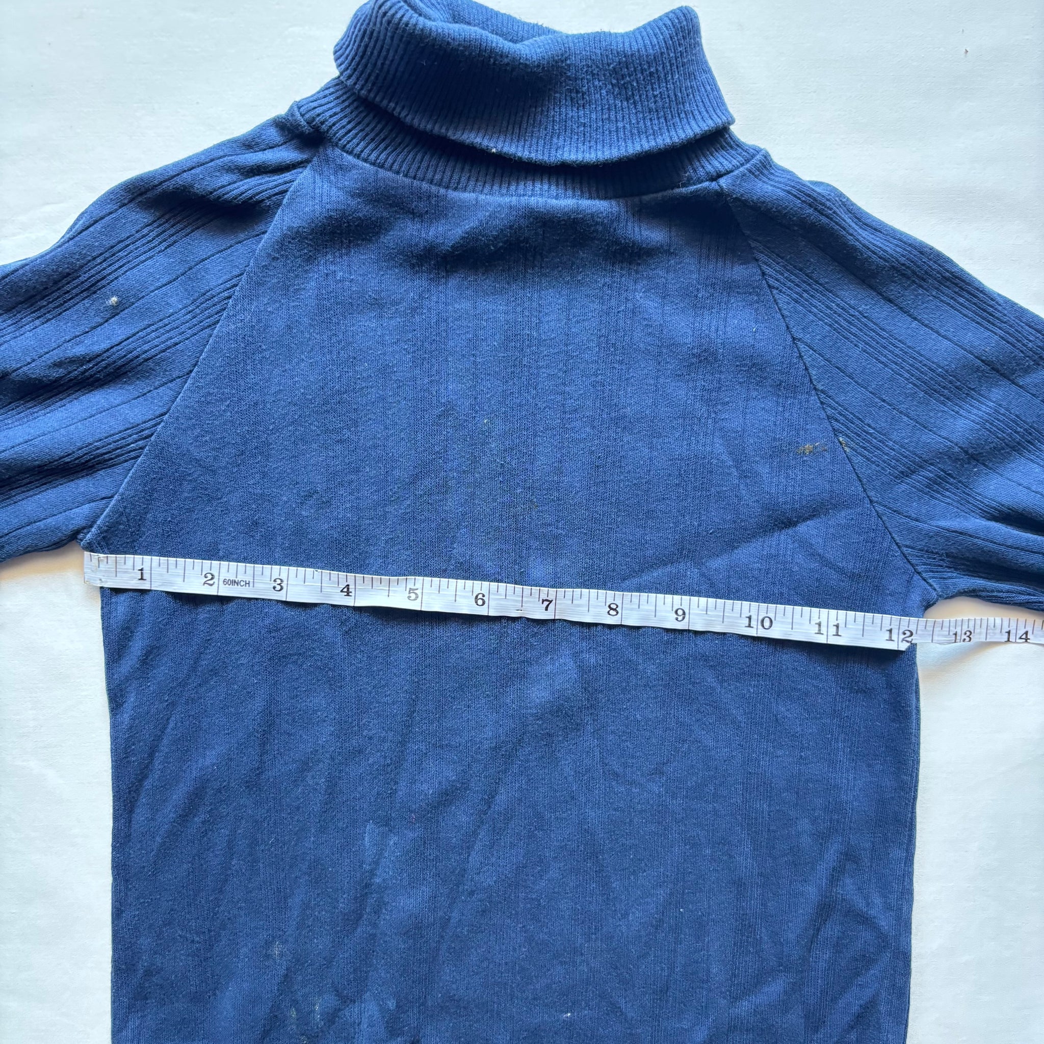 Vintage Rob Roy brand navy blue ribbed long sleeve turtleneck shirt! Note a couple little light spots on wrists and bottom that likely will wash out. Please see all photos for condition and measurements