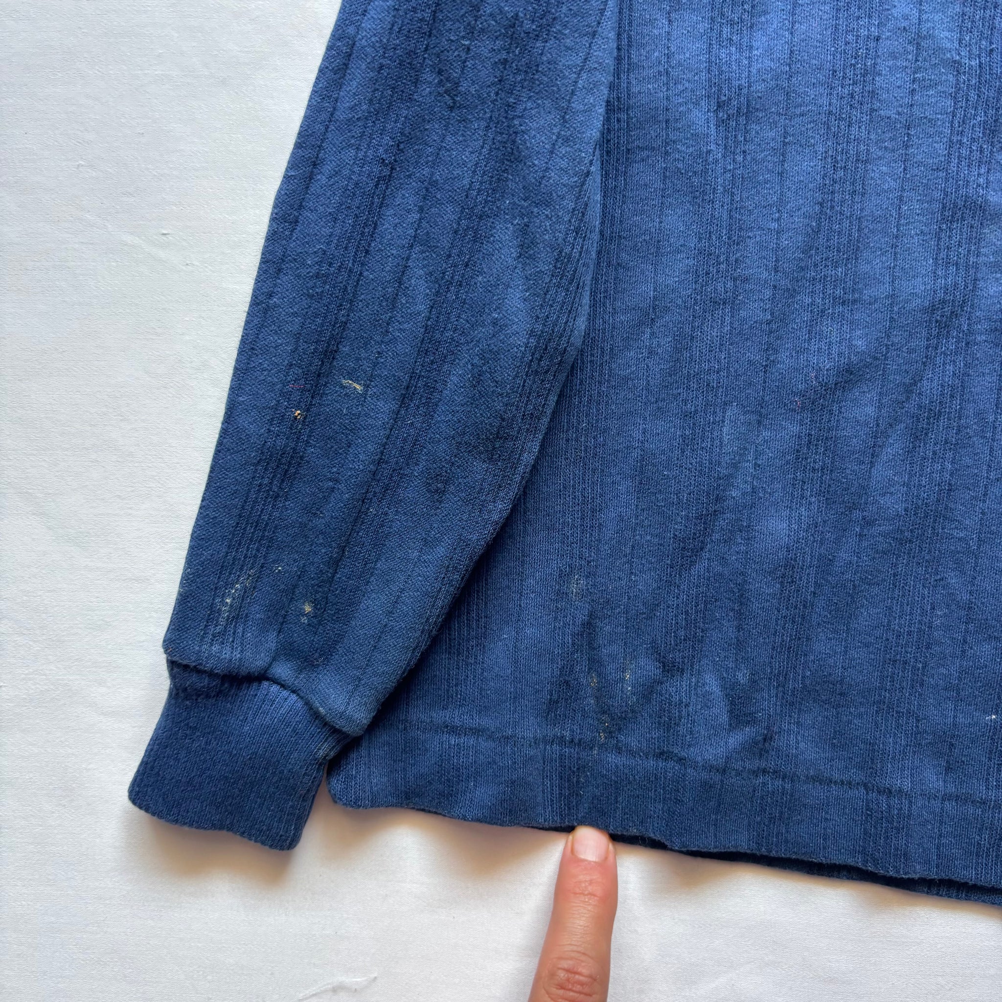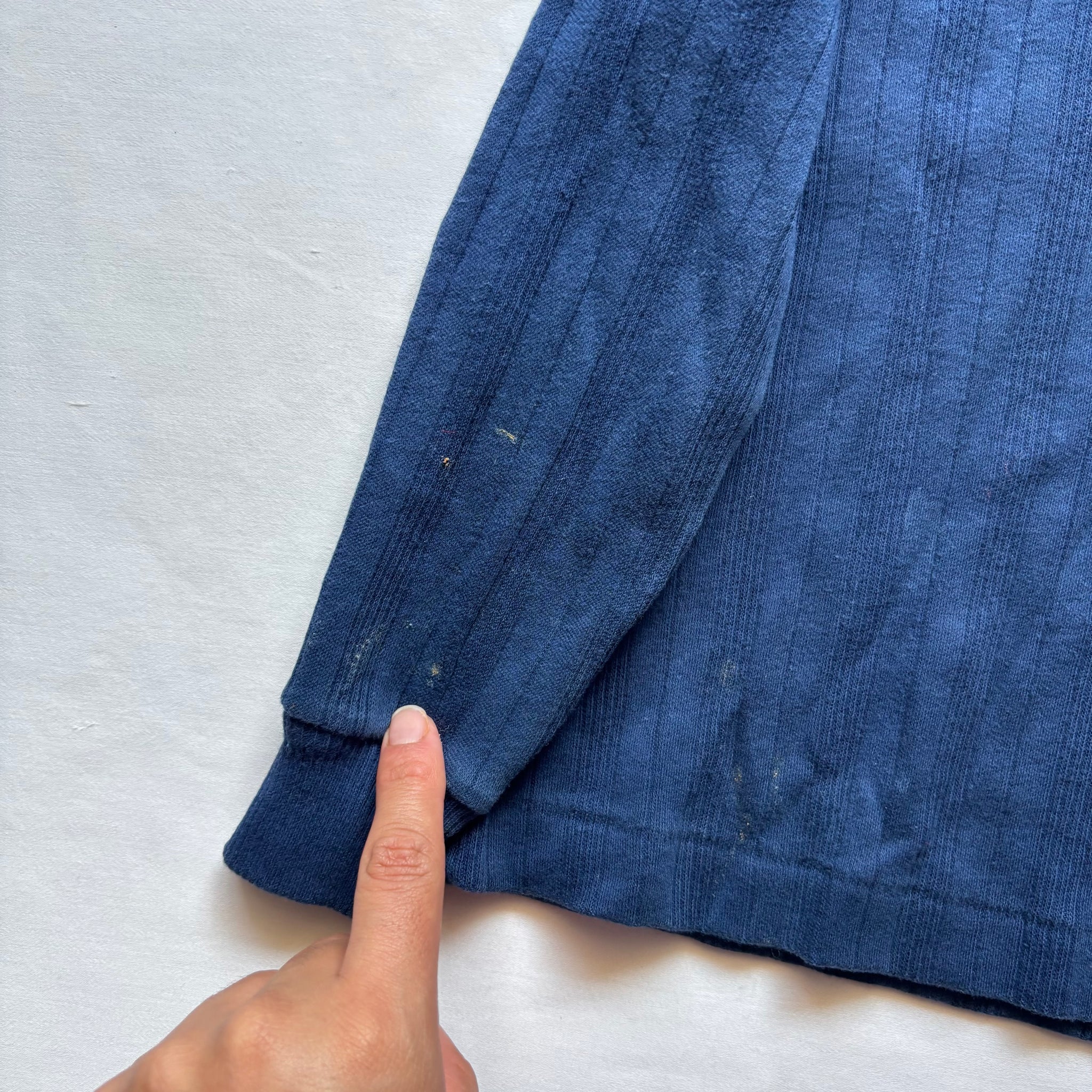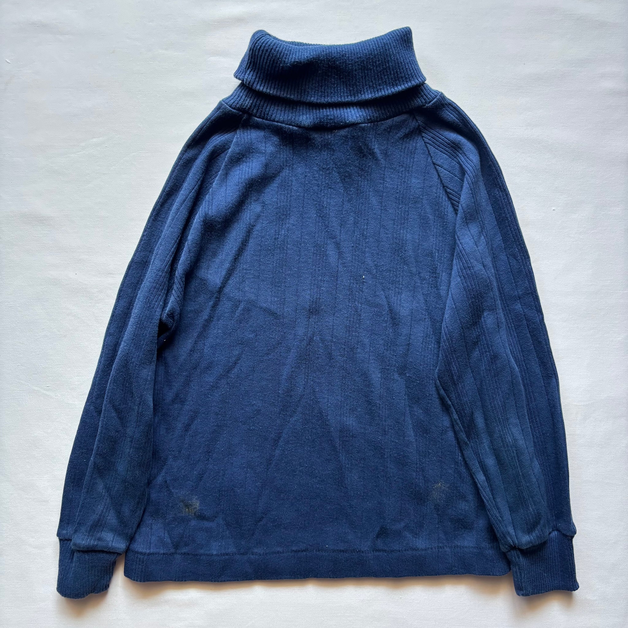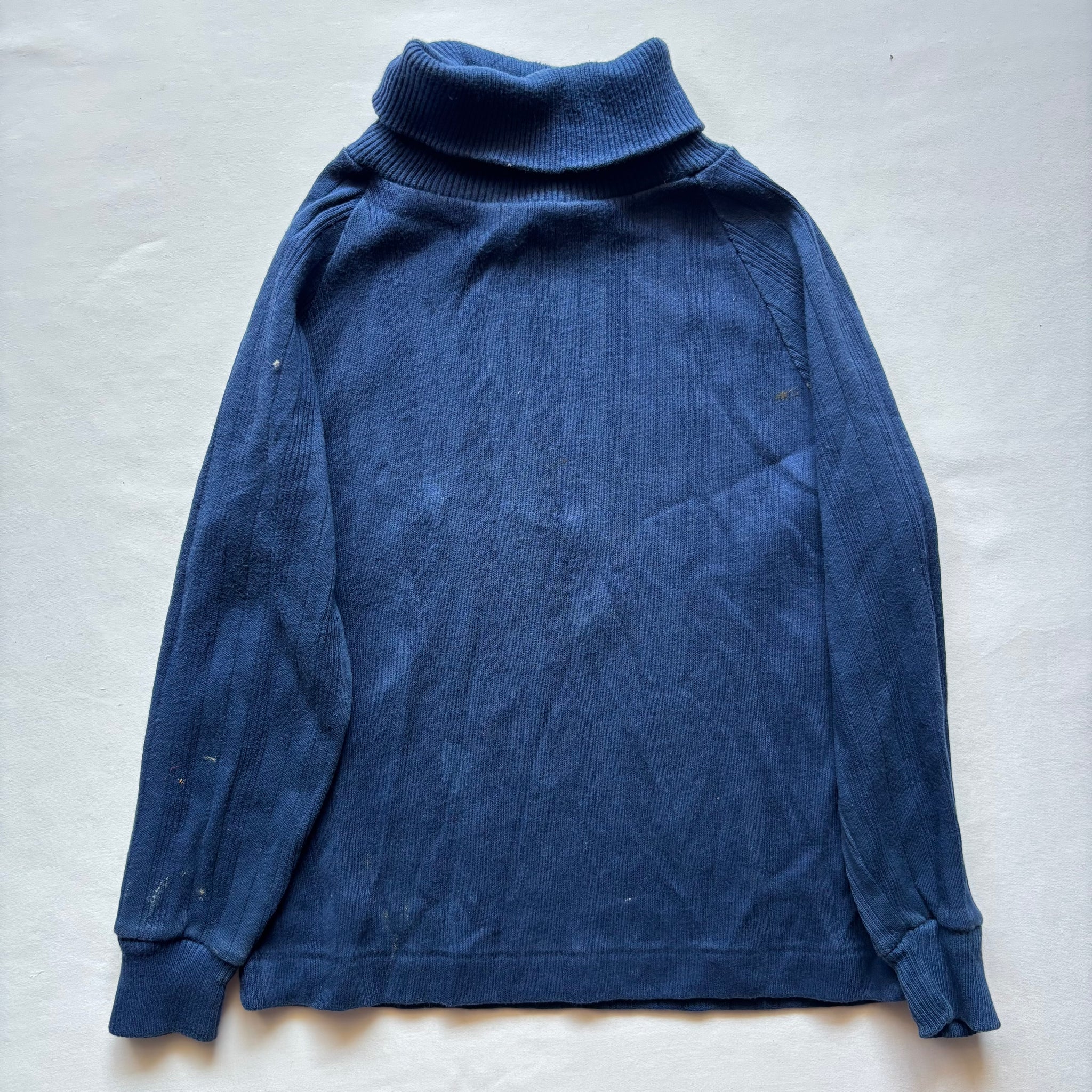 Vintage Rob Roy brand navy blue ribbed long sleeve turtleneck shirt! Note a couple little light spots on wrists and bottom that likely will wash out. Please see all photos for condition and measurements