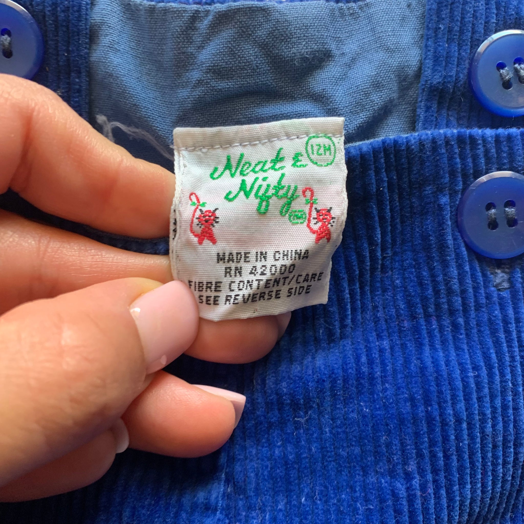 Vintage Neat & Nifty brand solid blue corduroy overalls! Note a very small hole shown on inner leg area. Please see all photos for condition and measurements