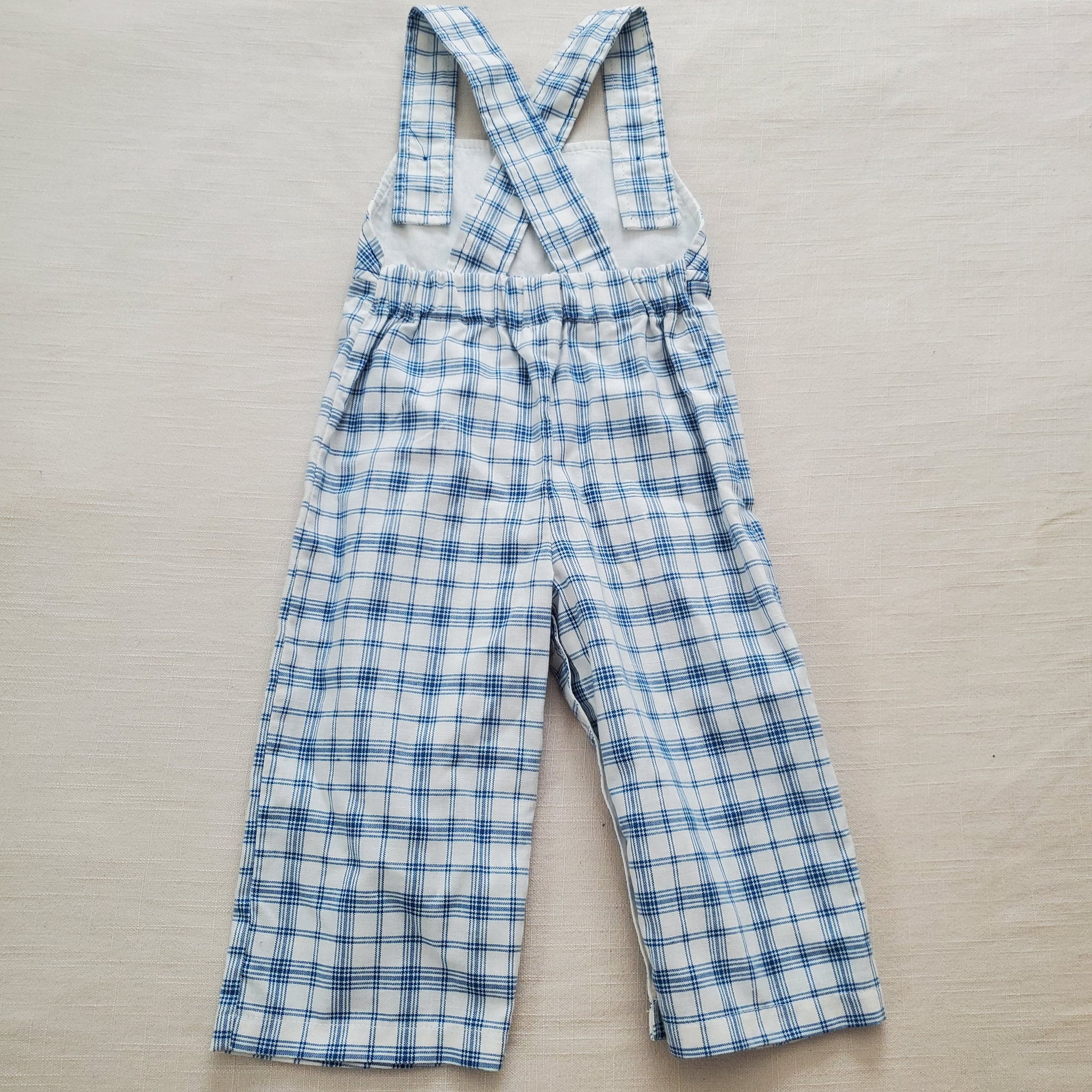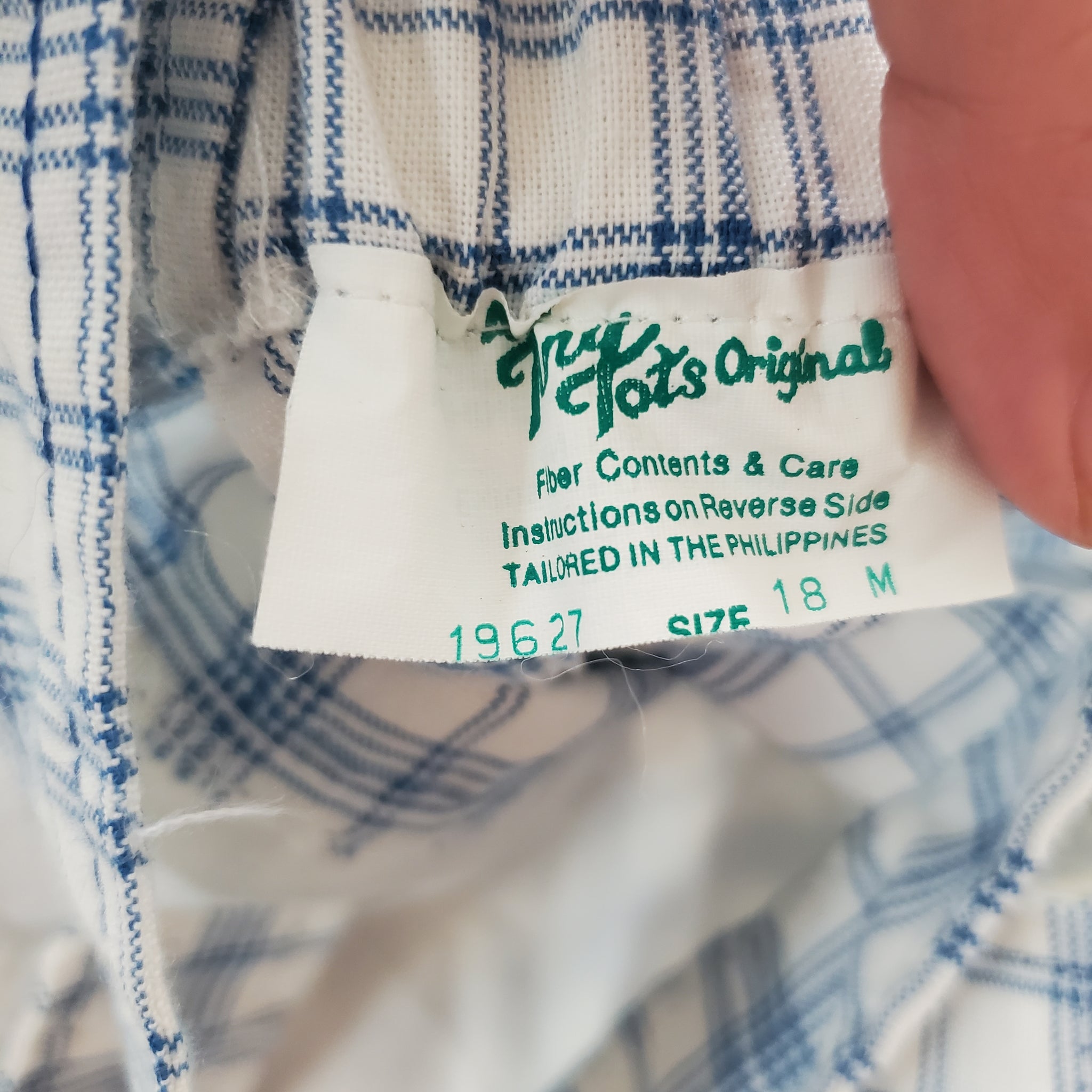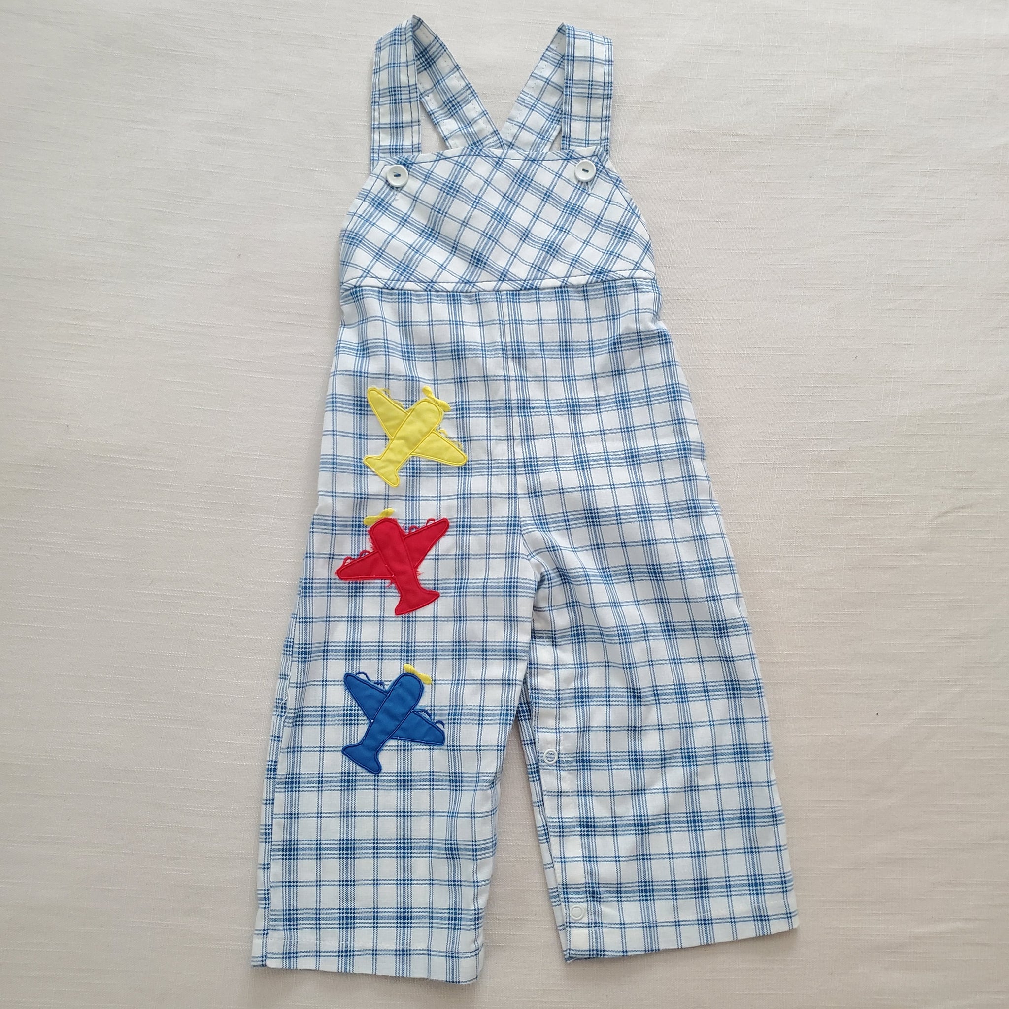 Vintage Tiny Tots Originals brand blue and white plaid overalls with colorful airplane appliques on leg! Please see all photos for condition and measurements