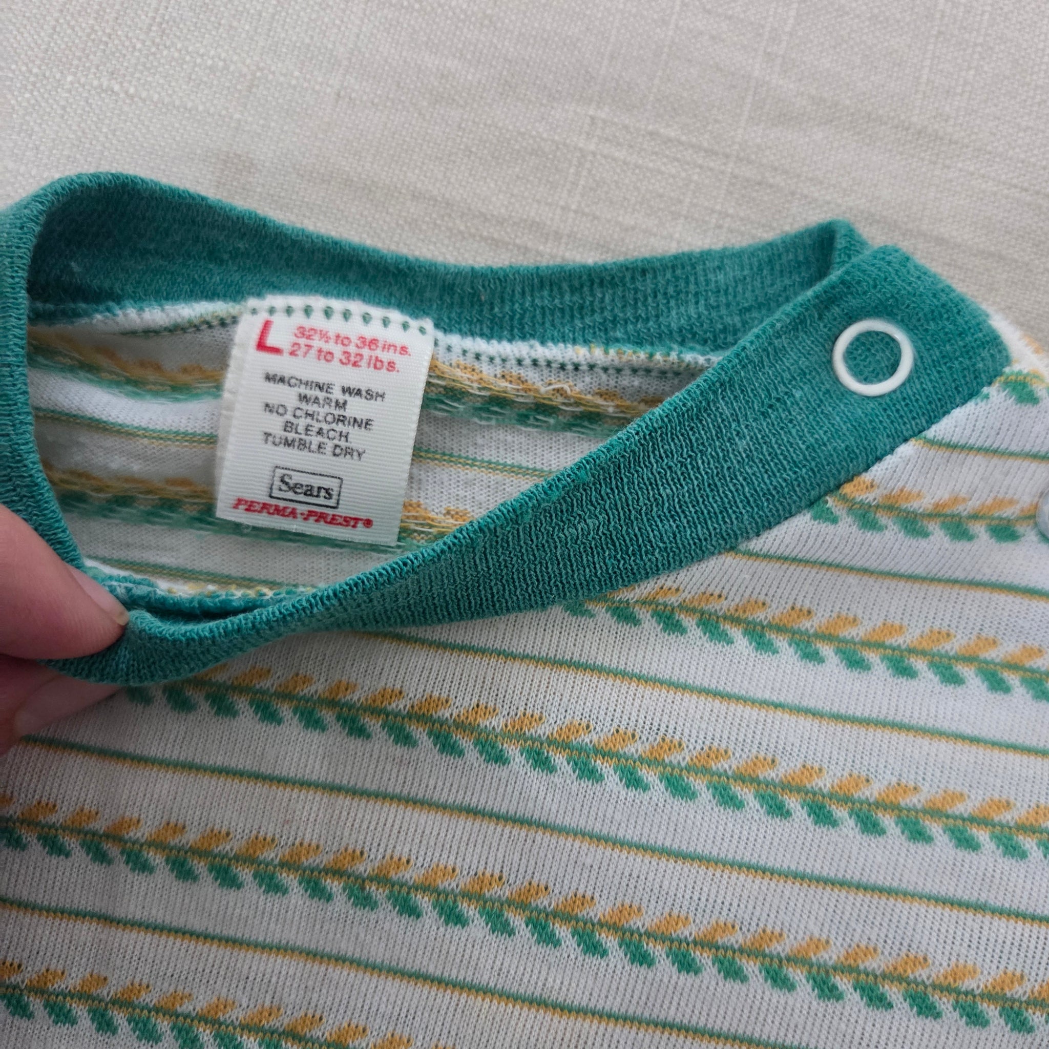 Vimtage Sears brand yellow and green striped pattern long sleeve shirt! Please see all photos for condition and measurements
