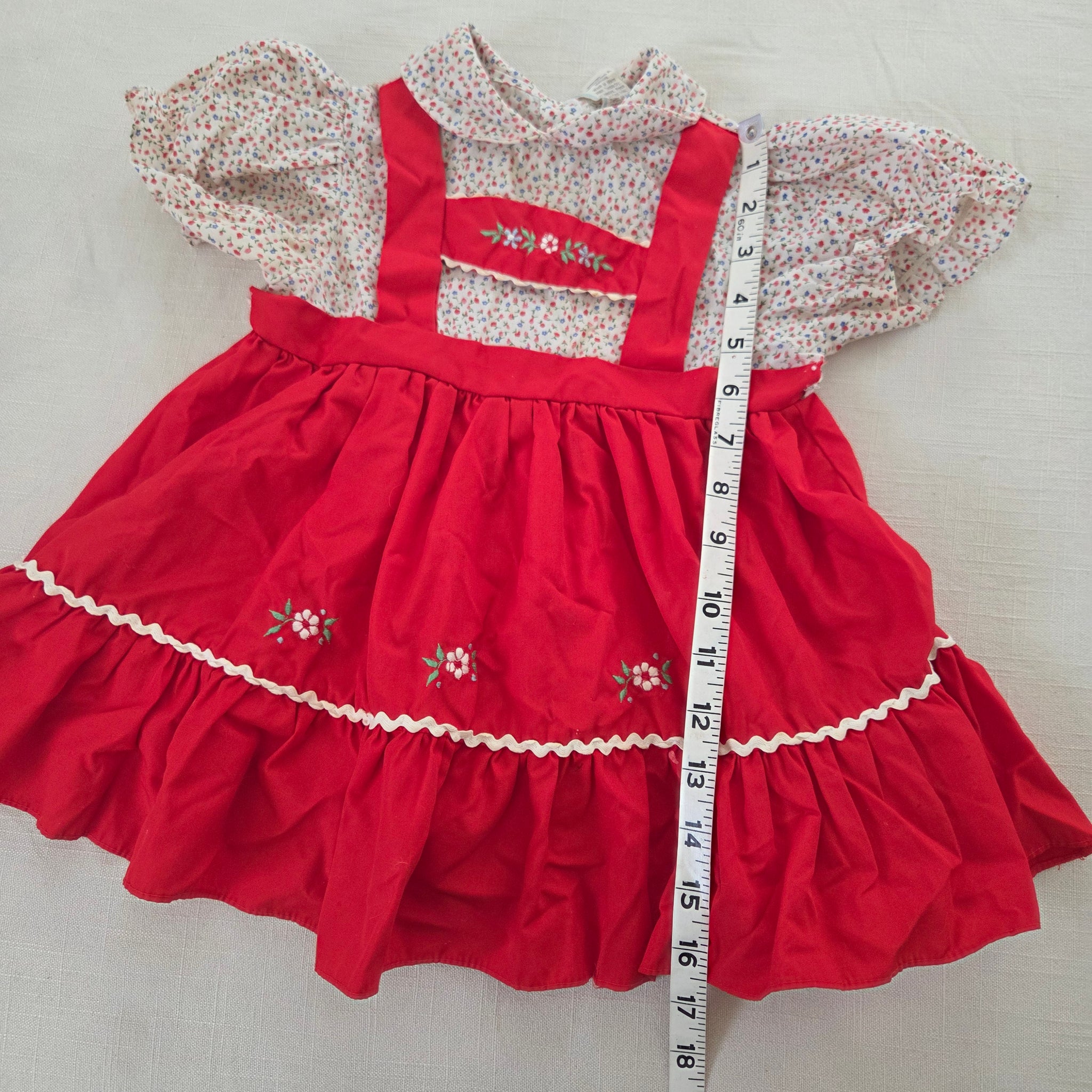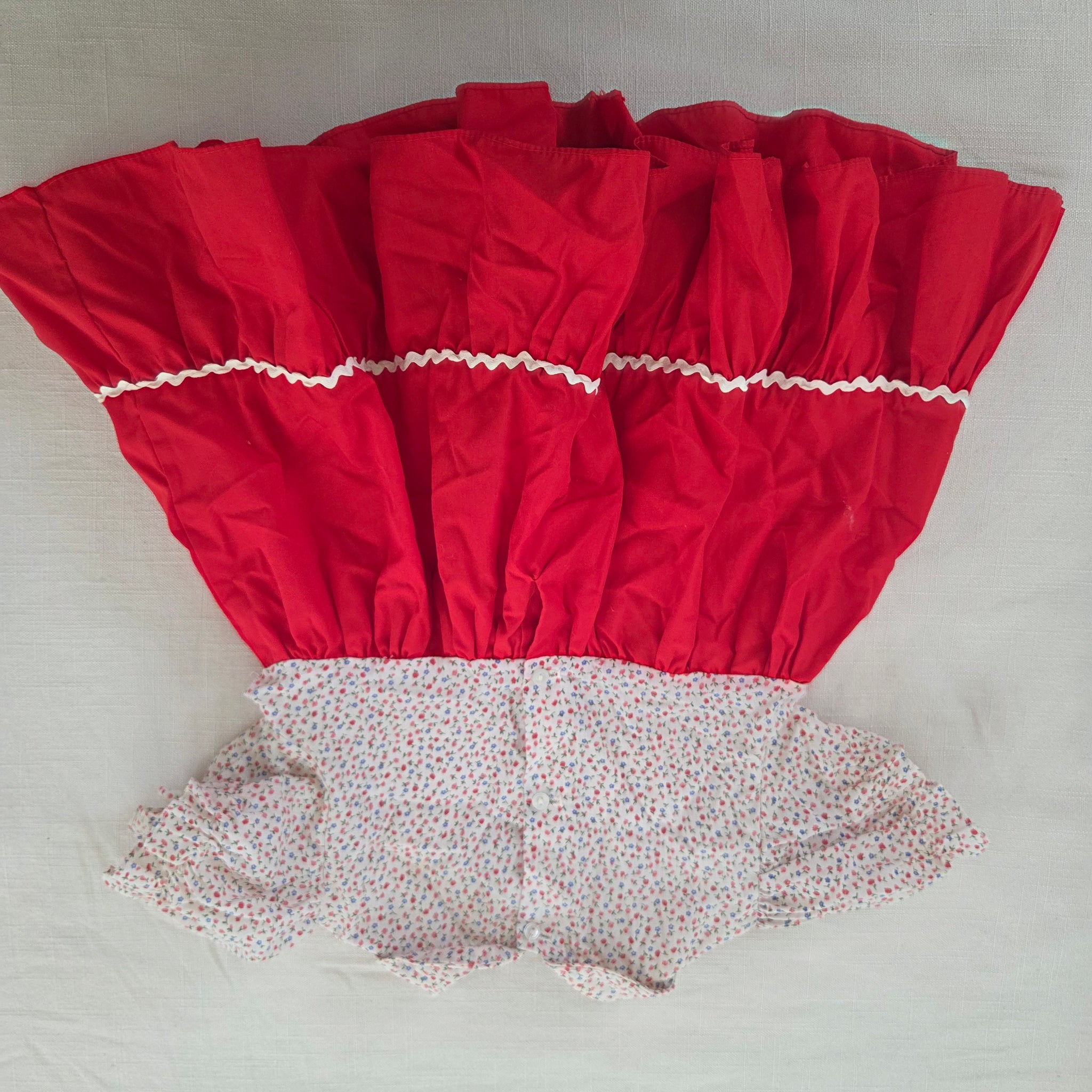 Vintage red small floral dress! Note seams undone on both sides of waist where ties at waist probably used to be, also elastic relaxed in sleeves. Please see all photos for condition and measurements