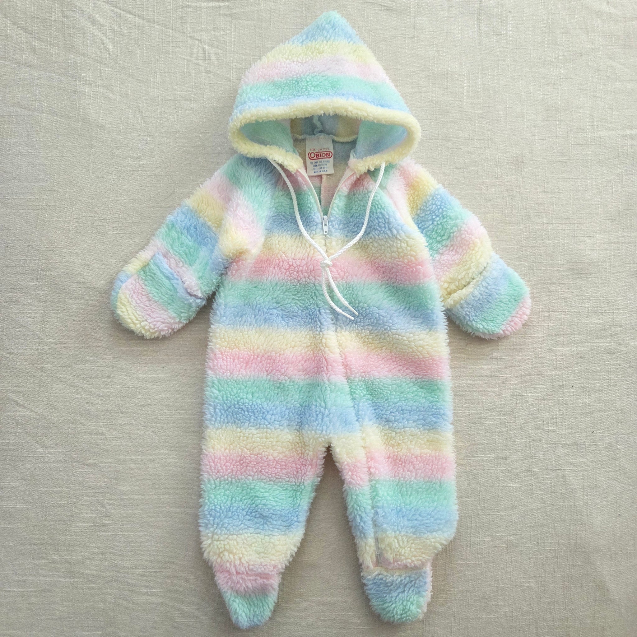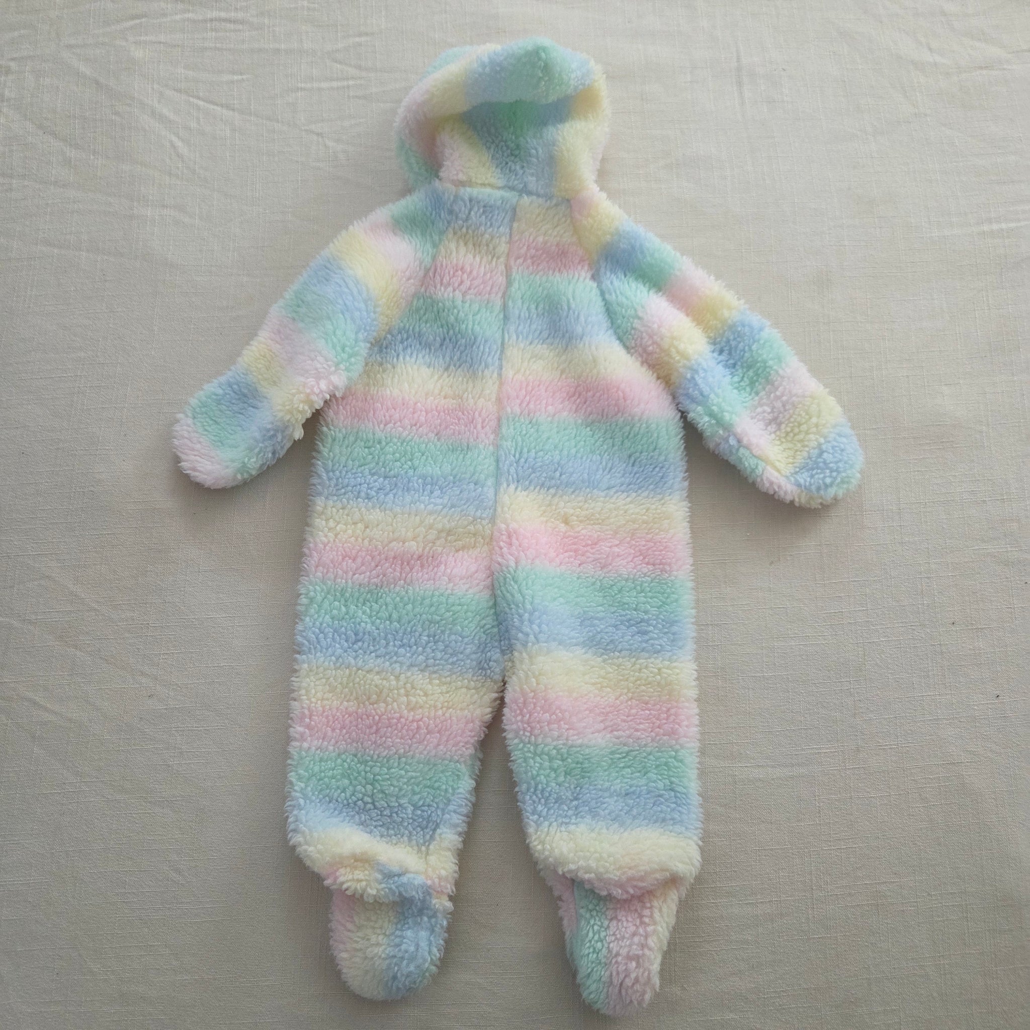 Vintage Obion brand pastel multicolored faux fur hooded and footed pajamas! Please see all photos for condition and measurements