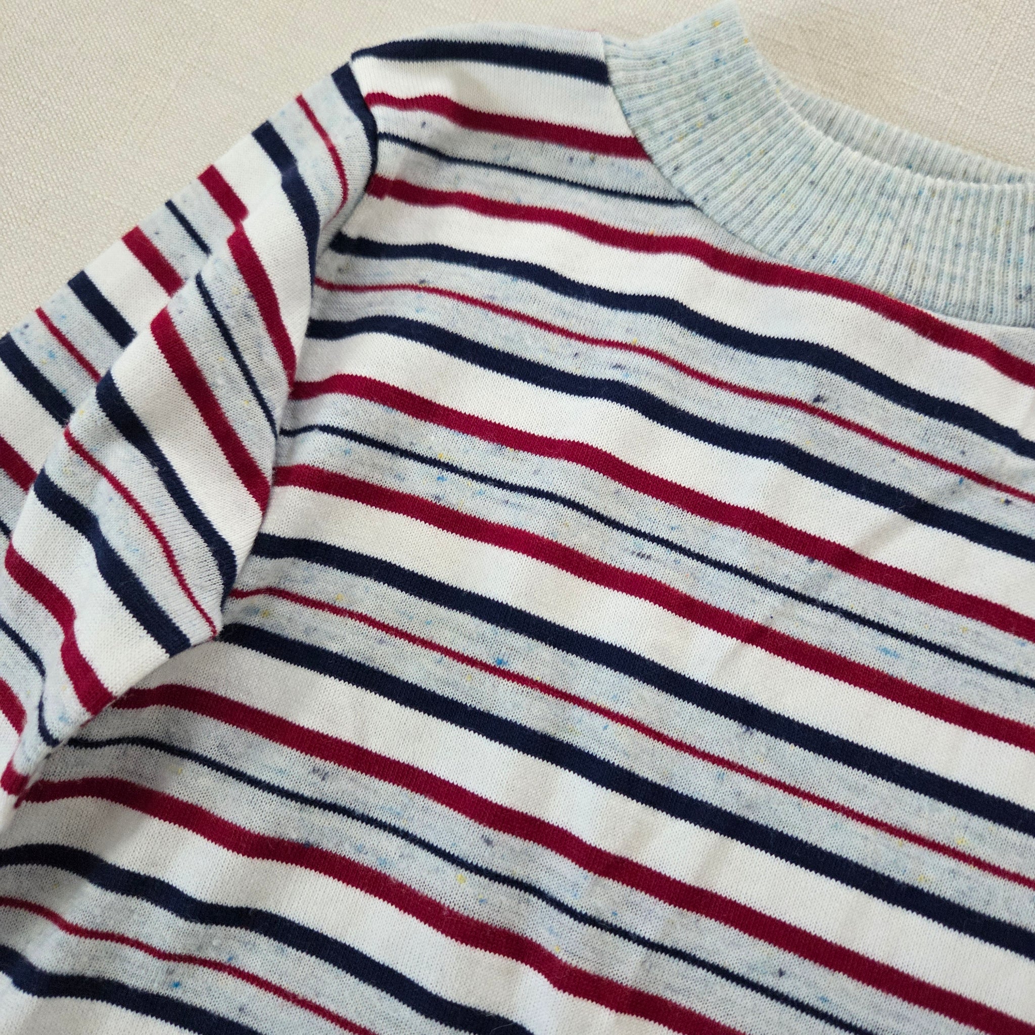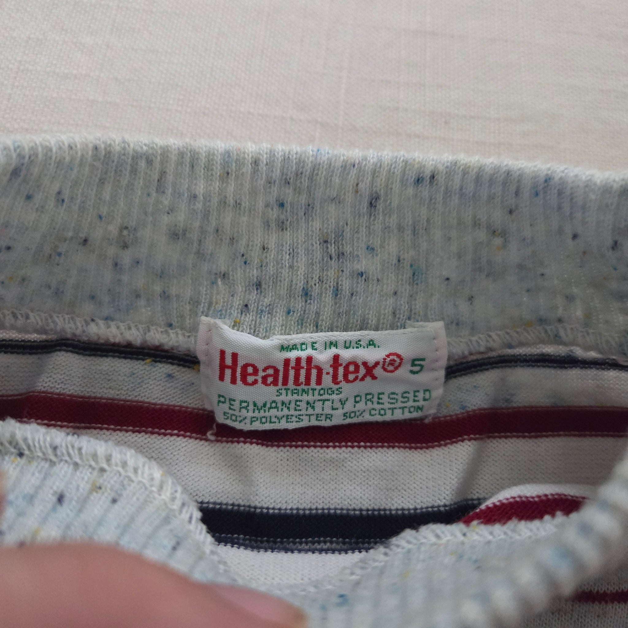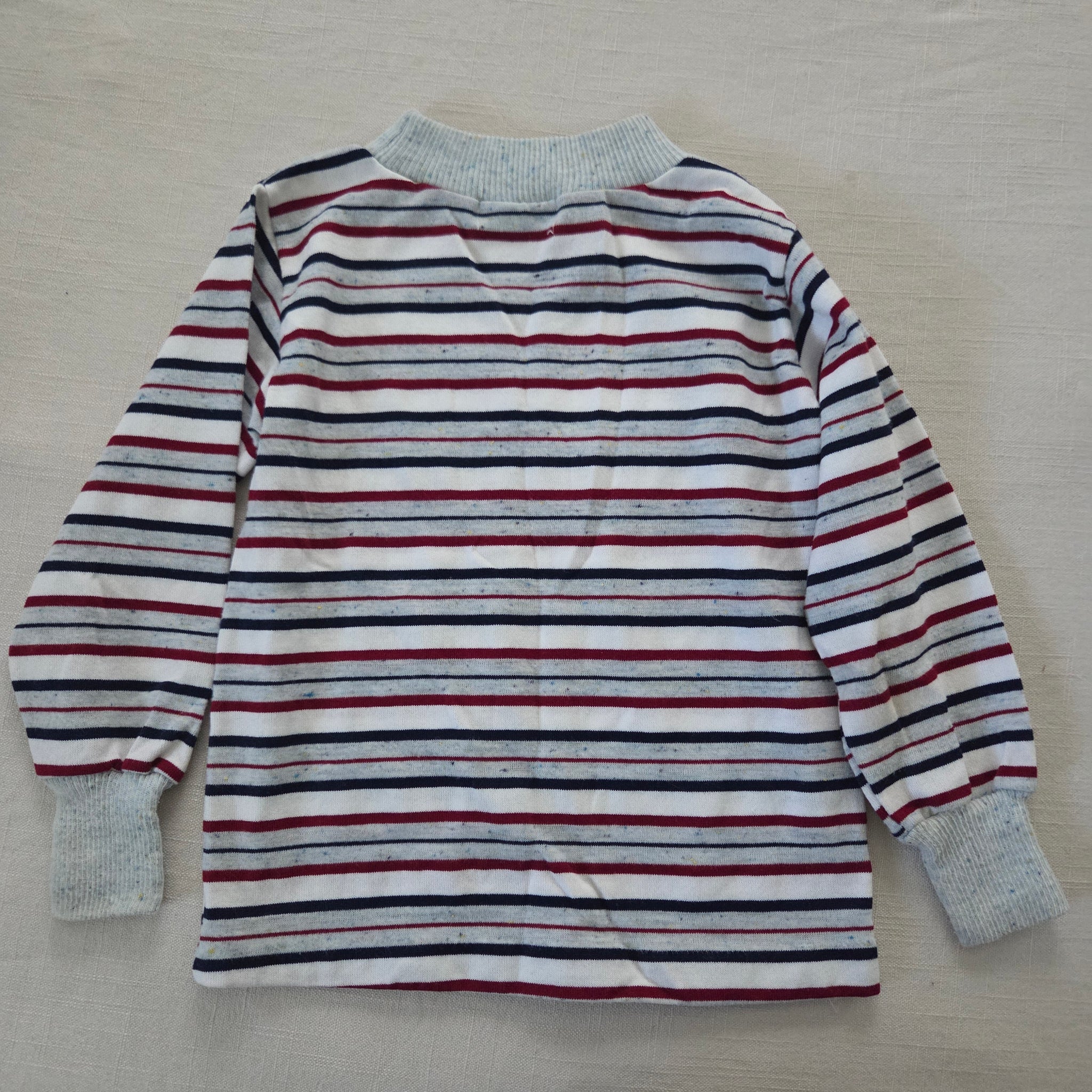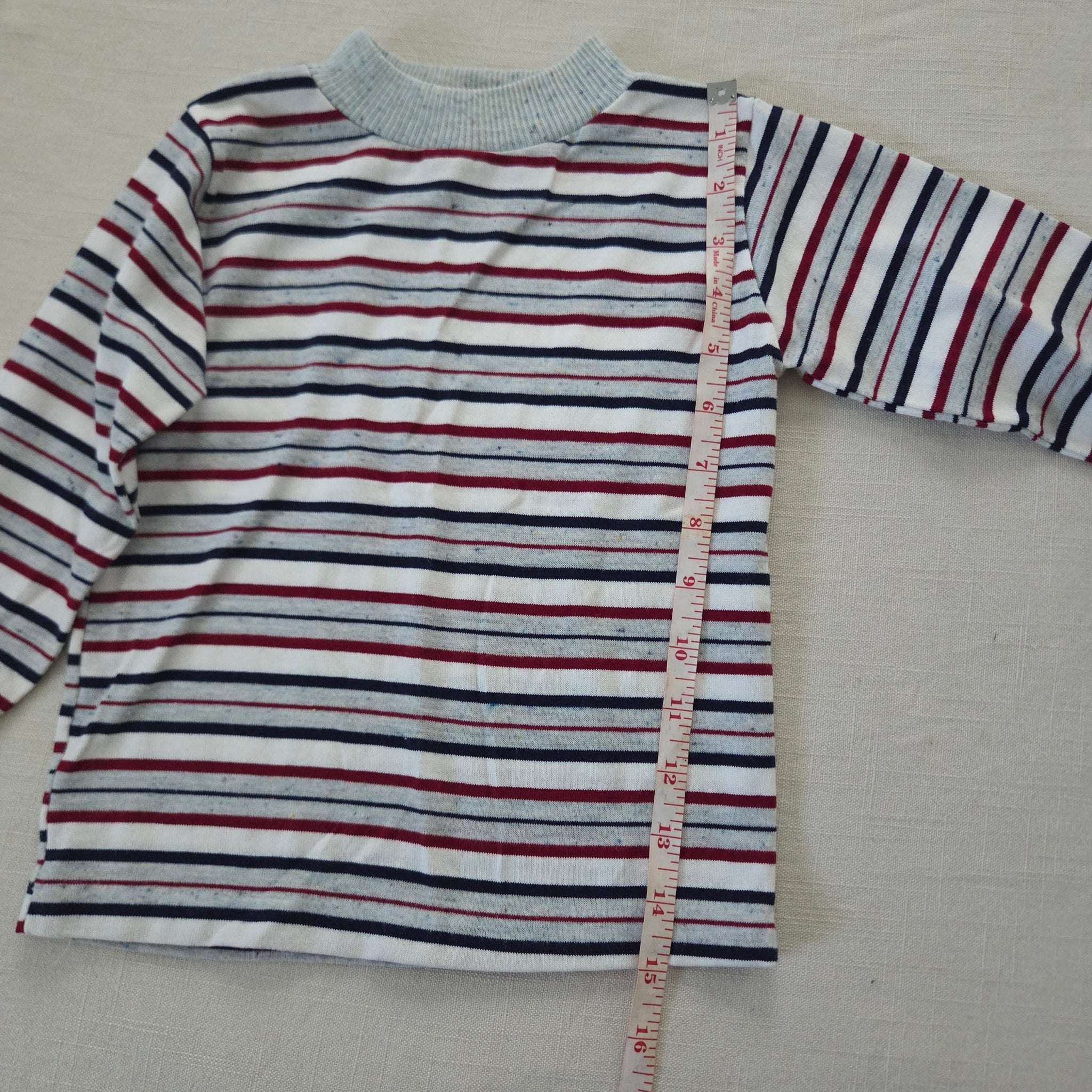 Vintage Healthtex brand gray, red, navy blue, and white striped long sleeve shirt with speckled look! Please see all photos for condition and measurements